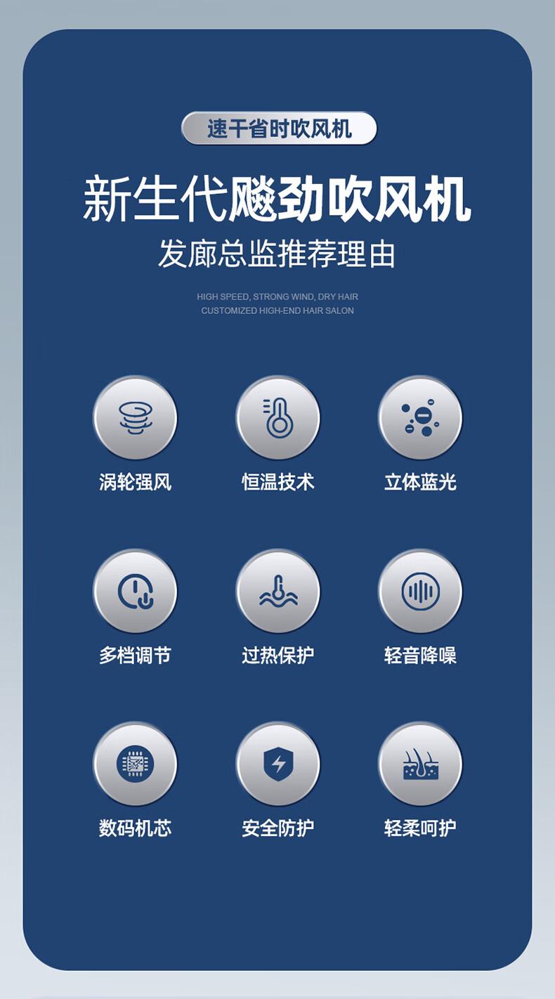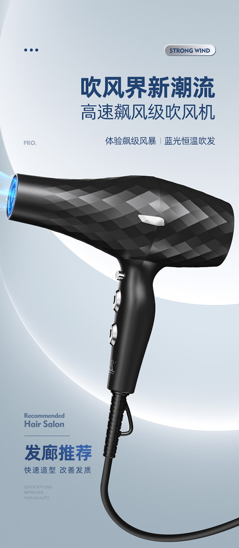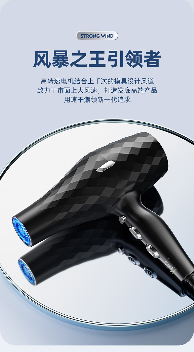 Xiaoya brand hair dryer household strong wind negative ion silent hot and cold wind hair care blue light hair salon large hair dryer diamond-shaped big blast 6 speed + rapid cooling switch + 1.5 billion ion hair care