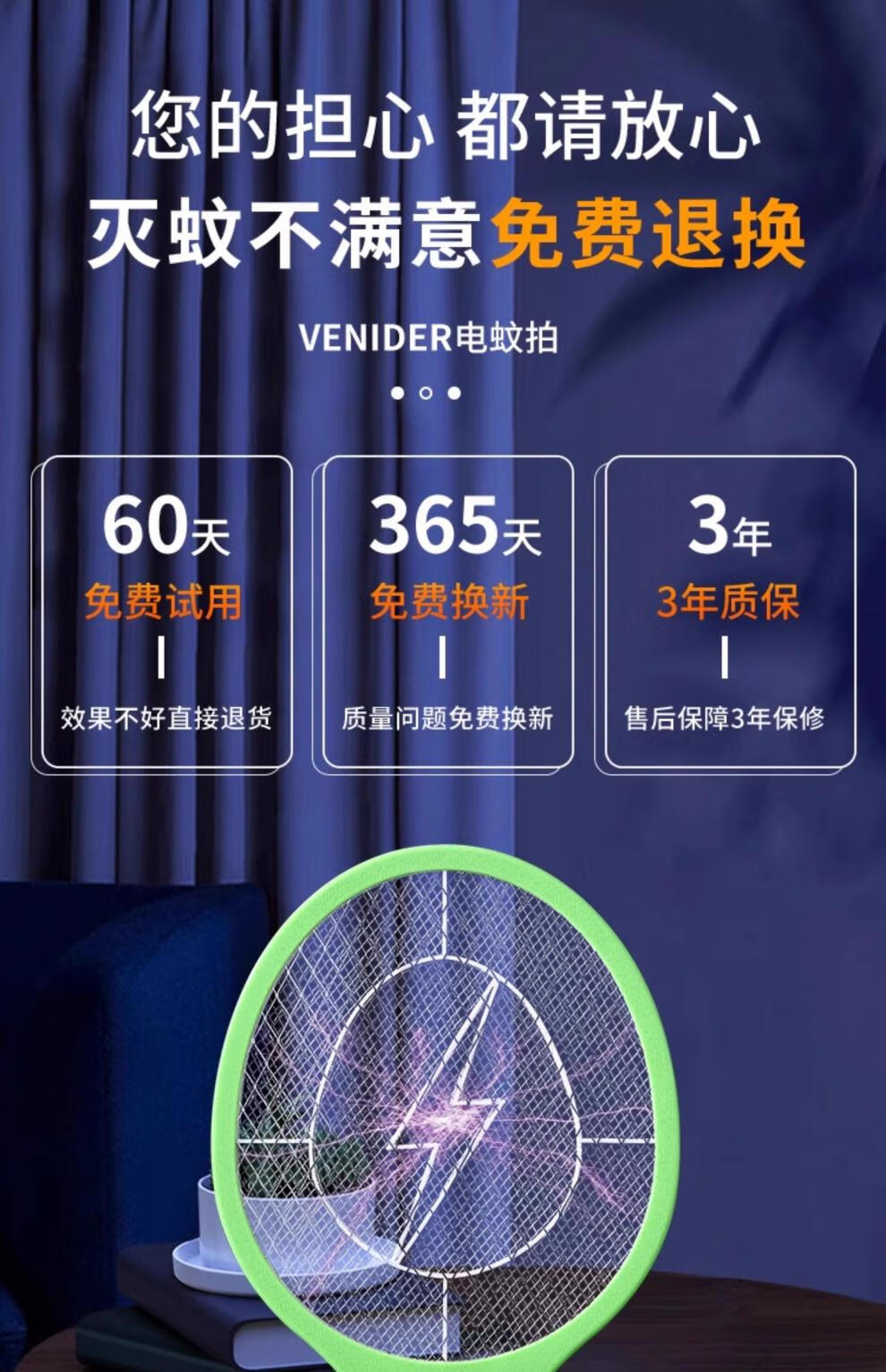 Fat Donglai's same Yangma electric mosquito swatter is rechargeable for home use, safe, durable and powerful, electric mosquito swatter, electric fly killer, lifetime warranty, upgraded rechargeable model, 3500V high voltage