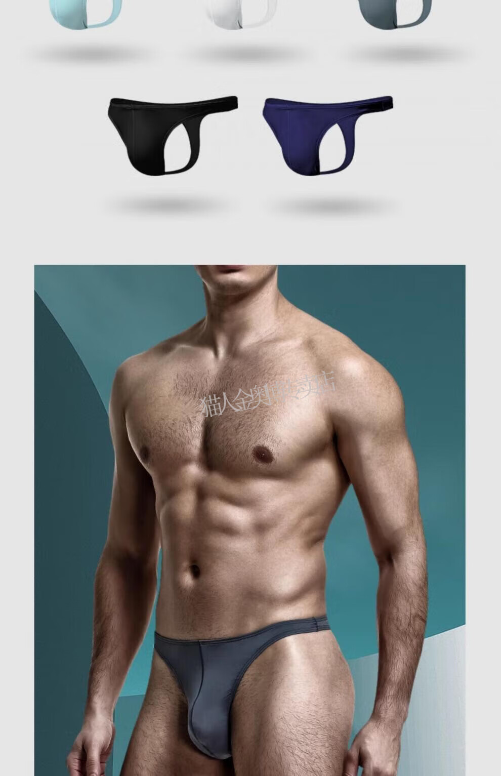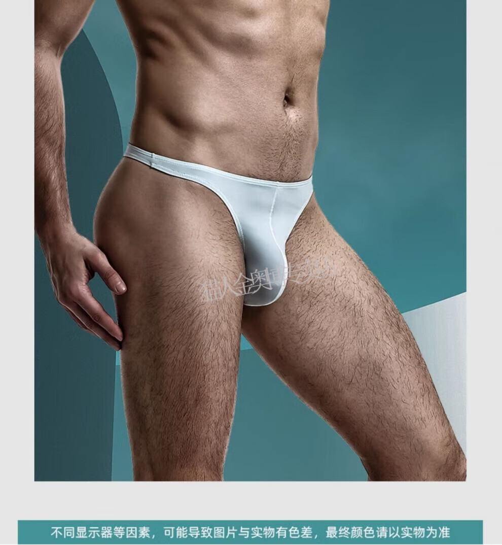 MiiOW underwear men's thong seamless sports fitness sexy new ice silk thin breathable summer low-waist briefs T-panties seamless sports black + royal blue + gray 3 pairs L (suitable for 100-120 Jin Jin equals 0.5 kg)