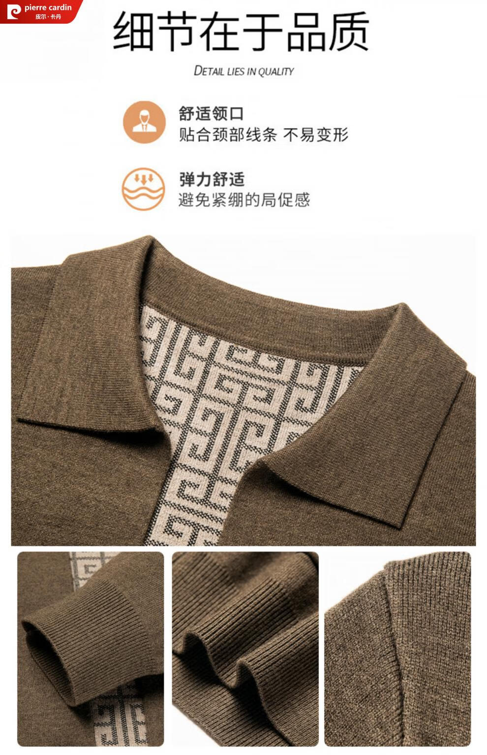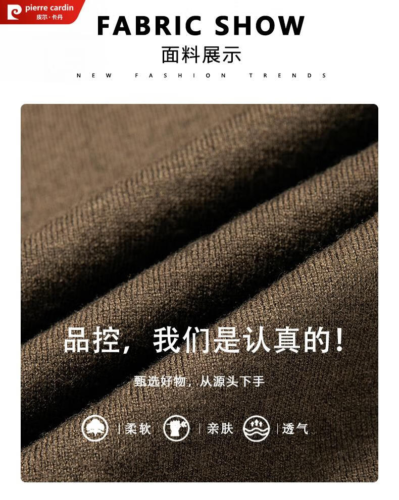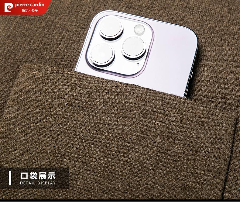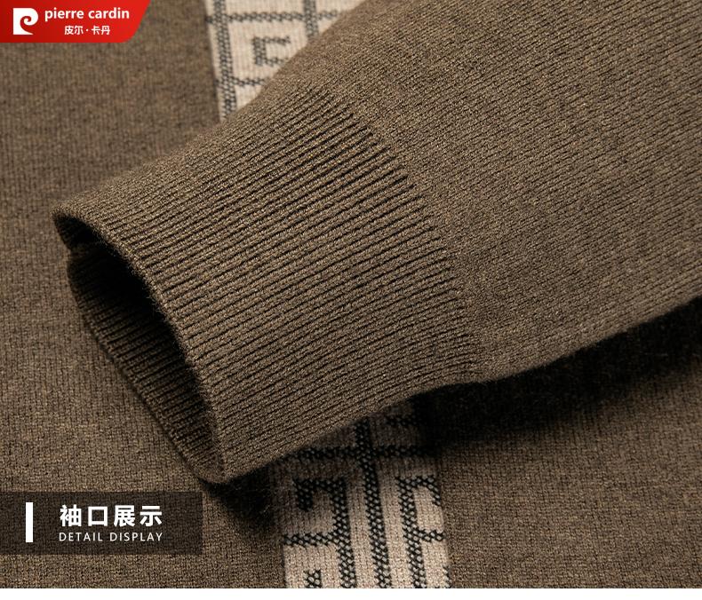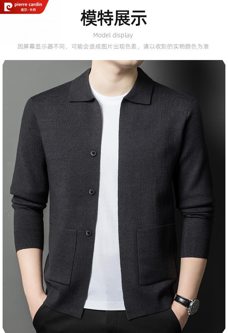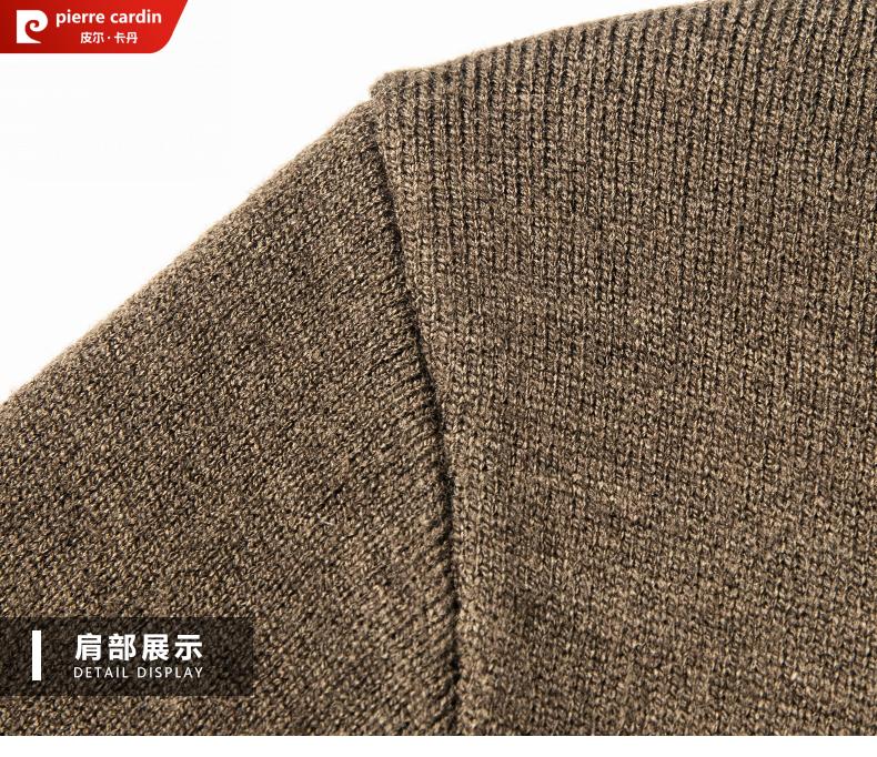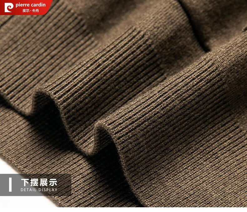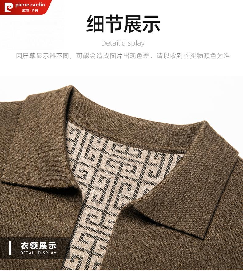 Pierre Cardin 100% pure wool cardigan men's cardigan spring and autumn thin lapel knitted sweater middle-aged pocket coat for men Brown Camel XL 175 recommended weight 135-155Jin Jin equals 0.5 kg