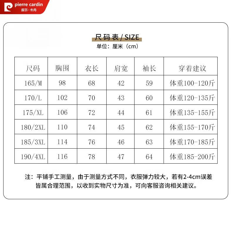 China (cm) 165 / 88-90 170 / 96-98 175 / 108-110 180 / 118-122 185 / 126-130
