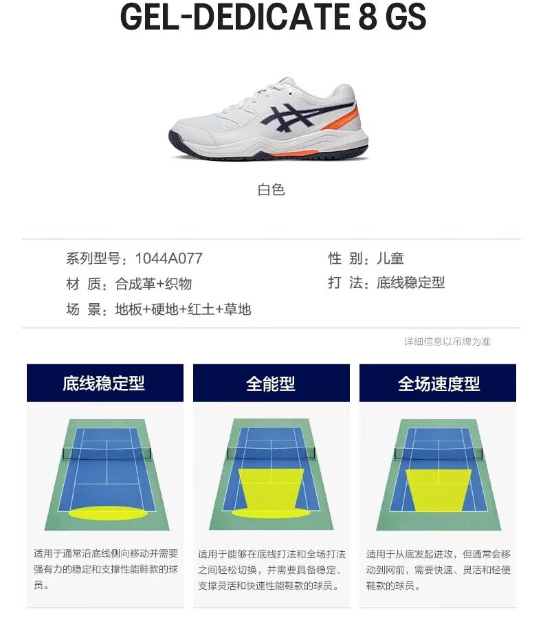 ASICS New Tennis Shoes Men's and Women's Youth Children's Indoor Sports Training Shoes Fencing Shoes 1044A077-104 White Blue Orange 32.5