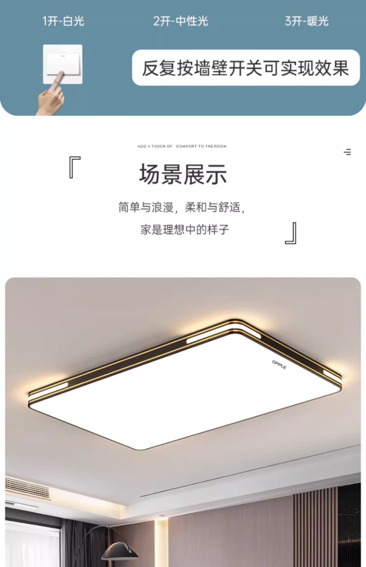 Op Lighting living room lamp led ceiling lamp simple and atmospheric headlight whole house lamp three rooms and two halls full spectrum 110*70 three colors 120W