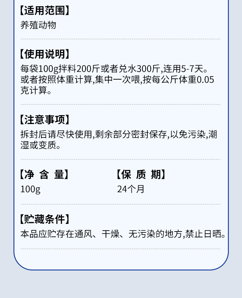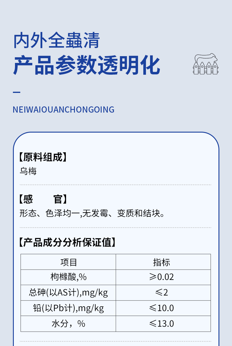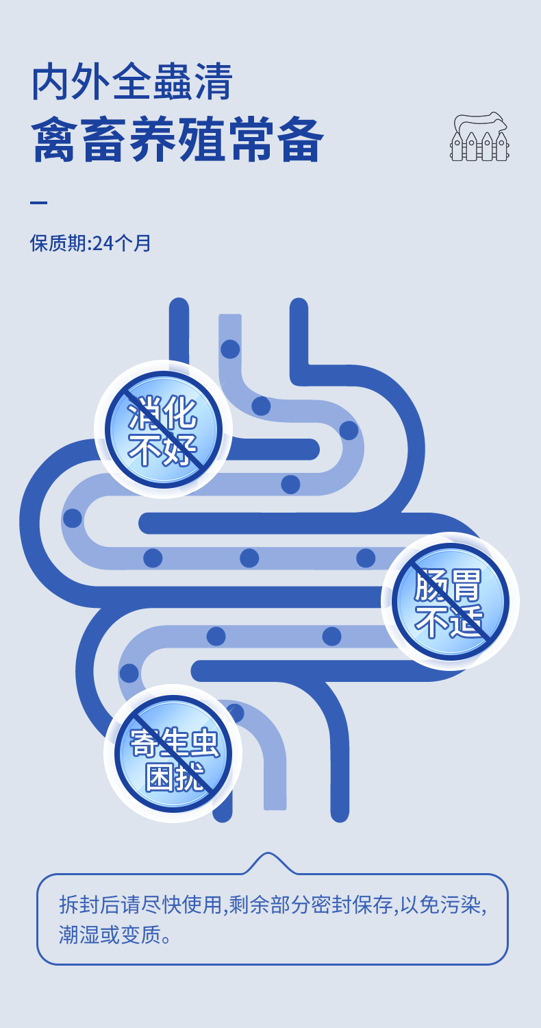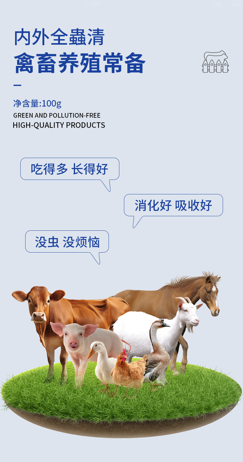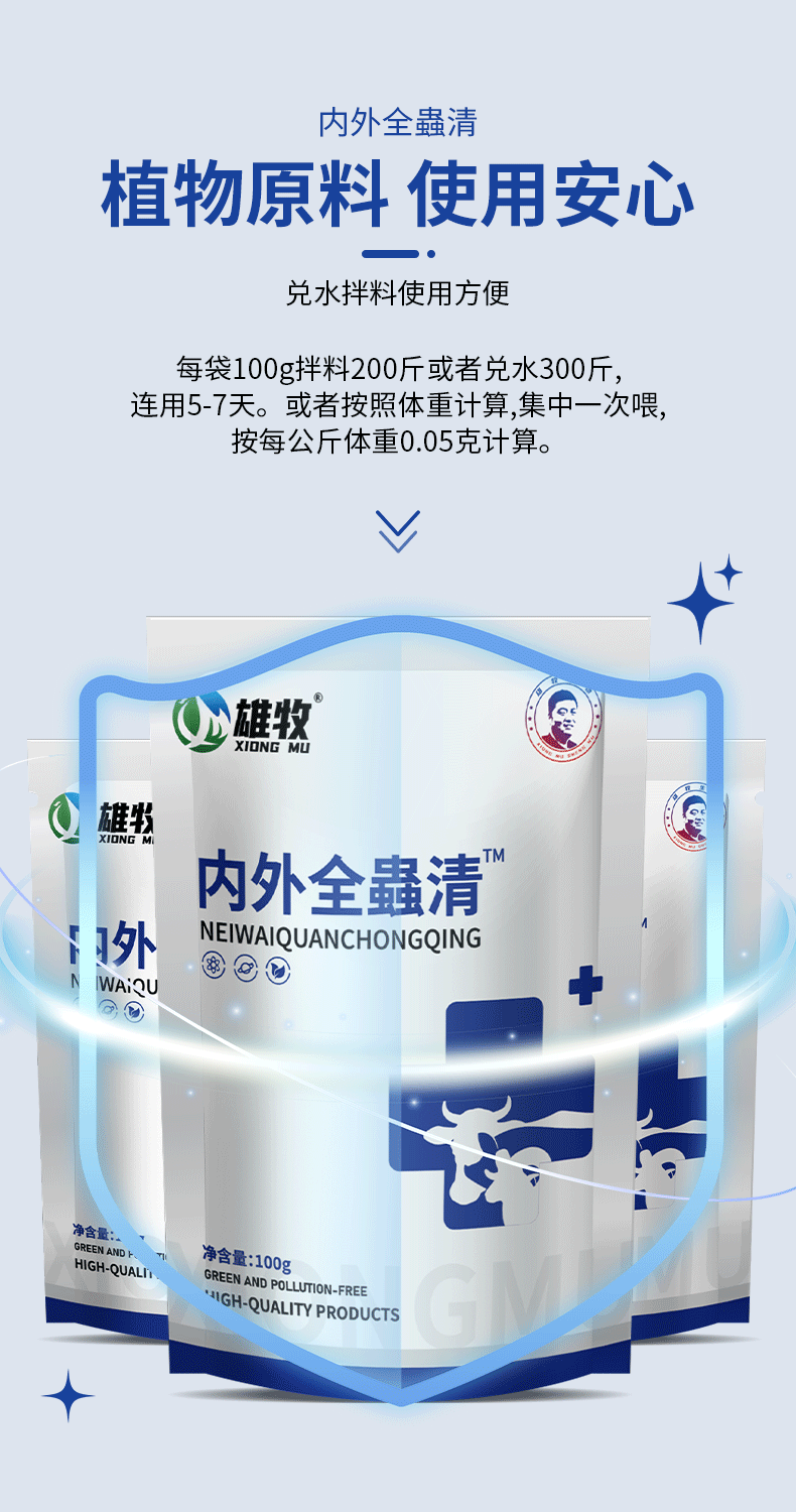 Xiongmu internal and external insecticide can be used to deworm pigs, cattle and sheep and pregnant animals can be used to exterminate internal parasites with chickens, ducks and geese. Xiongmu internal and external insecticide*20 (buy 10 and get 10 free)