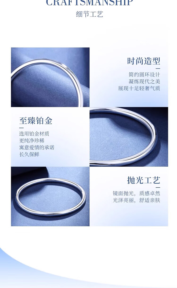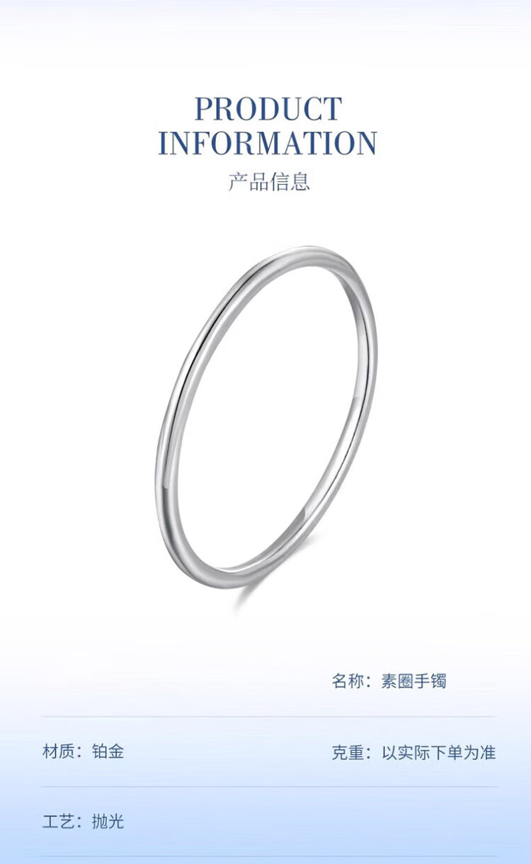 Shanmeifu platinum bracelet for women pt950 pure platinum solid platinum bracelet smooth plain ring round bracelet customized ring number 50-64 optional 100 grams 7-10 days delivery