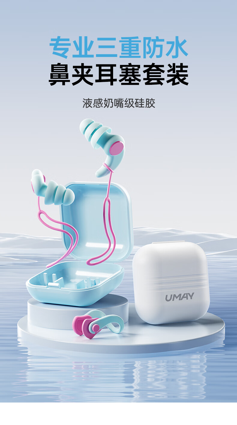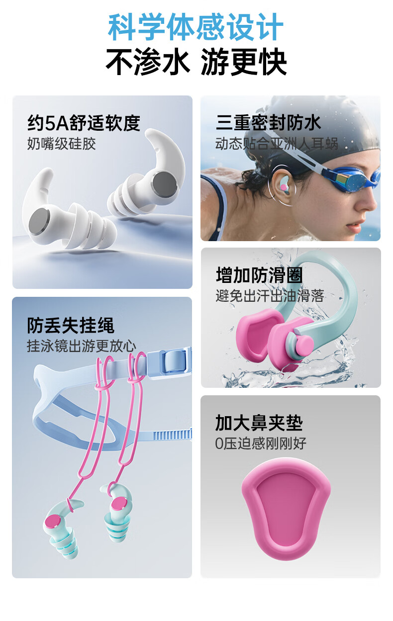 Children's earplugs for swimming, special waterproof and anti-ear water intrusion artifact, children's bath nose clip silicone, lotus seed white, nose clip + earplugs + small flower swimming cap