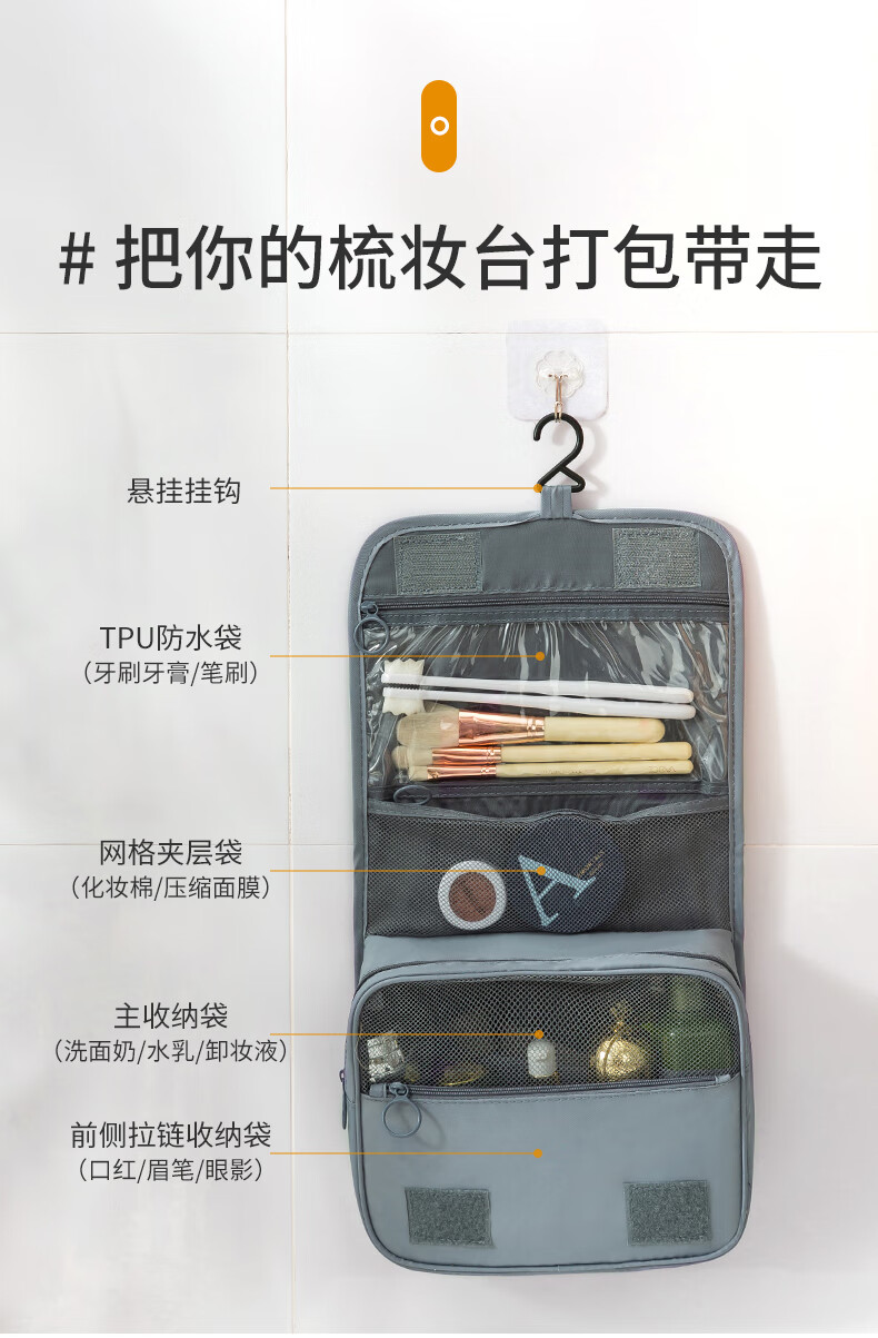 He Jiagong Washing Bag Cosmetic Bag Women's Portable Large Capacity Carry-On Organizing Bag Simple Men's Travel Waterproof Storage Bag Upgraded Navy Blue