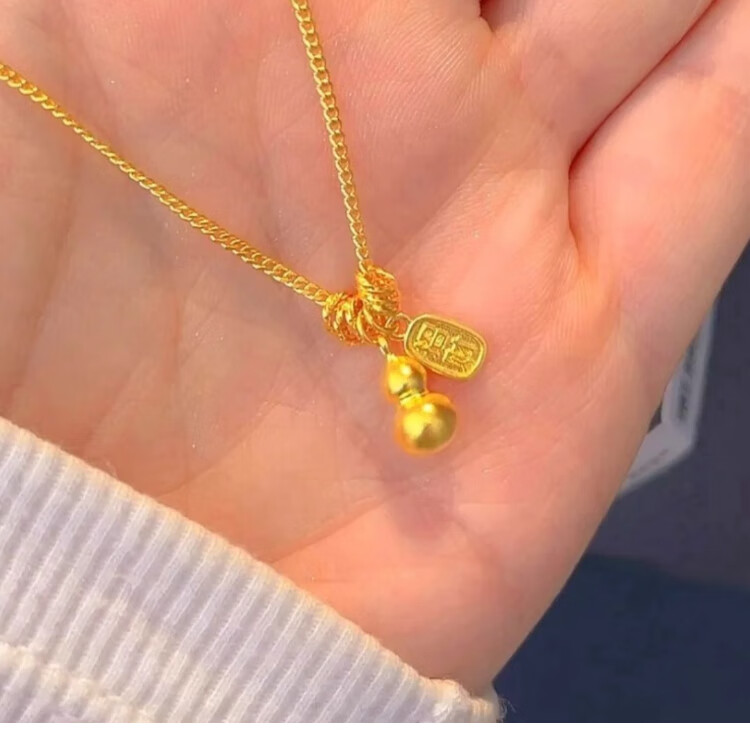 Xinshe Gold Store's same style gourd necklace for women 2025 new minimalist gold imitation sand gold long-lasting small gourd necklace to attract wealth and good fortune small gold gourd necklace