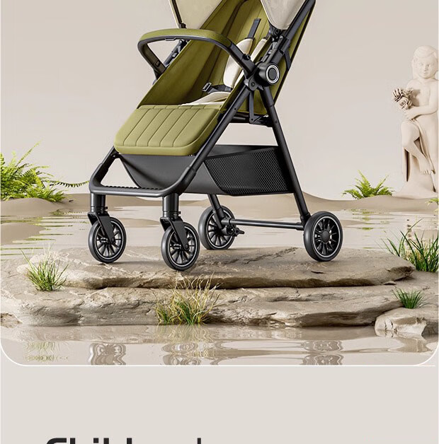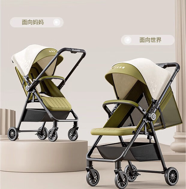 Beiduoqin baby stroller can sit and lie down for 0-1-3 years old, foldable belt shock-absorbing two-way pocket stroller, lightweight baby stroller, retro green + two-way reclining + one-click closing + mosquito net, lightweight foldable children's portable baby stroller