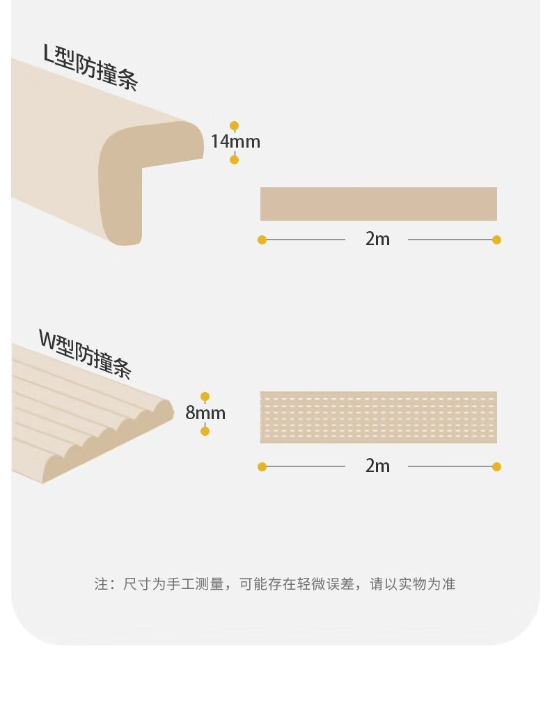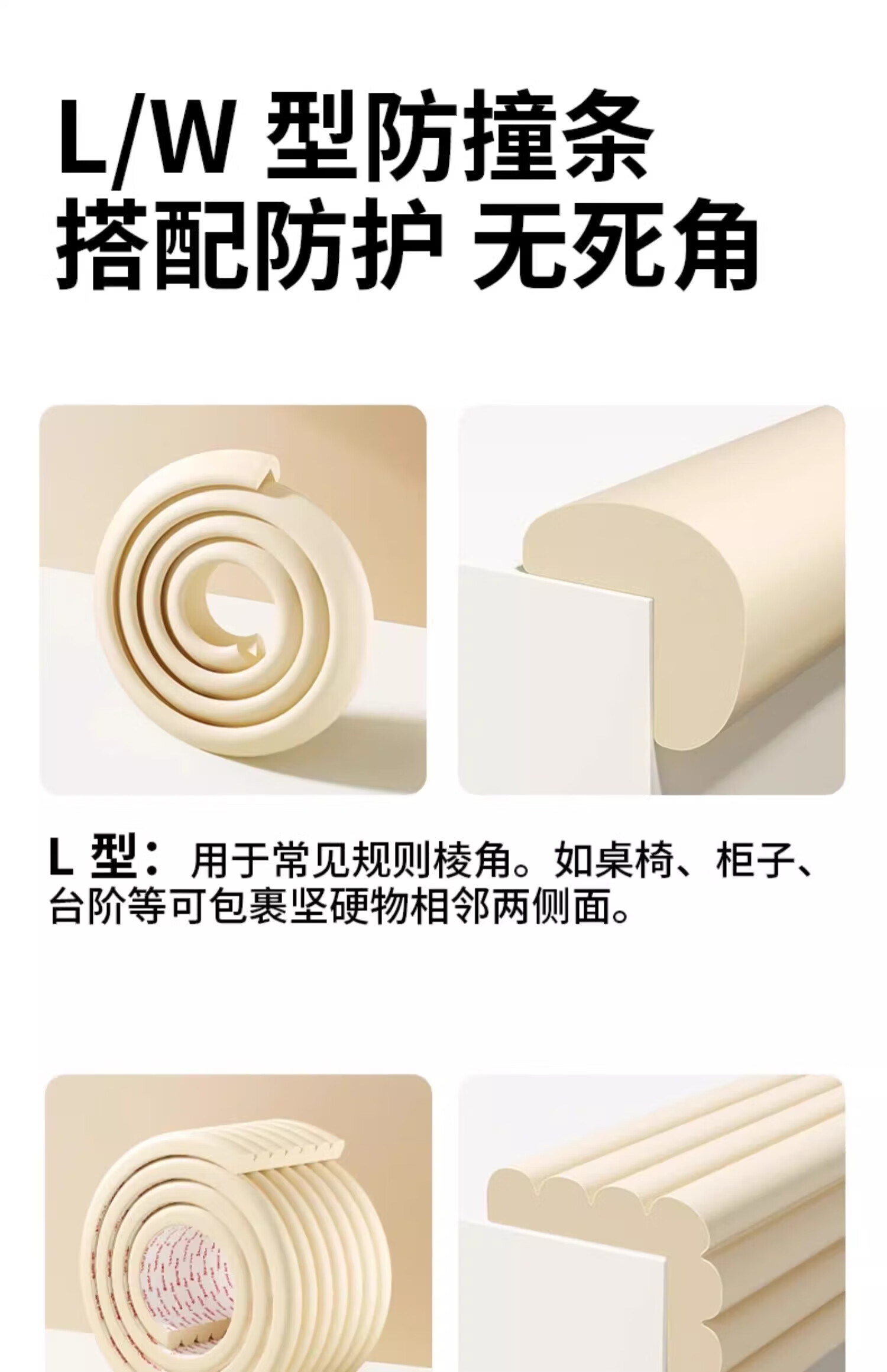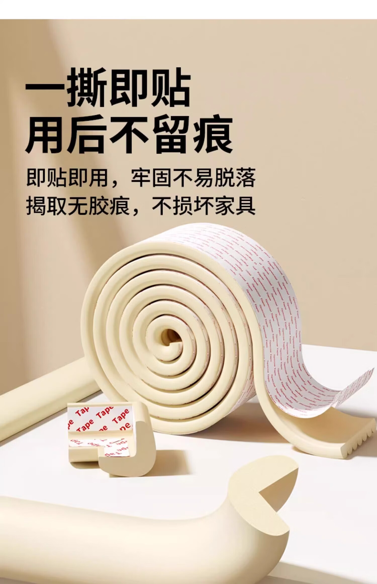 AIBEDILA anti-collision strips for children, environmentally friendly corner wrapping, soft corner protectors, baby anti-collision table stickers, protective strips, thickened L-shaped - beige, 0 meters, thickened, 2 meters packed + 4 meters of glue