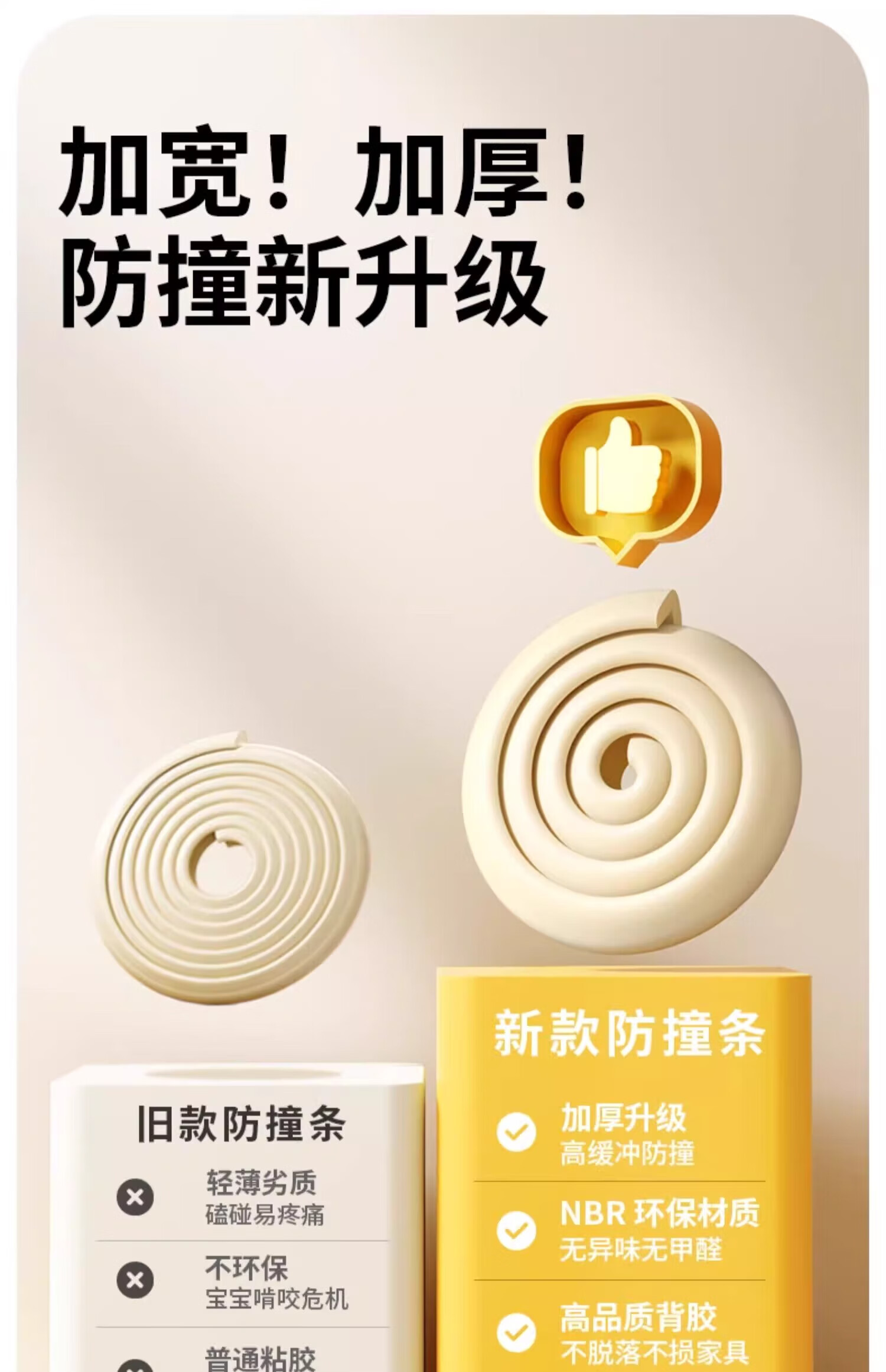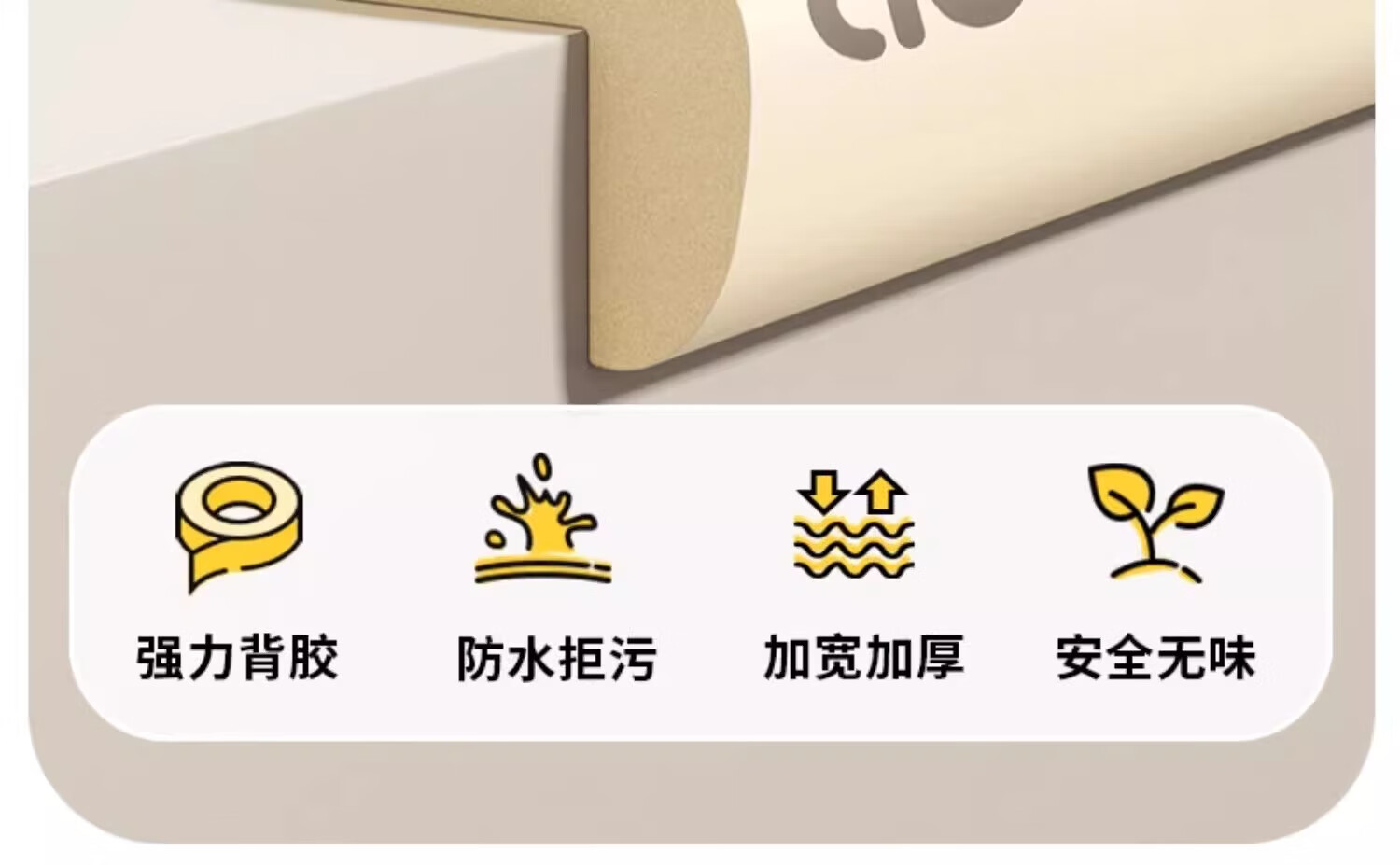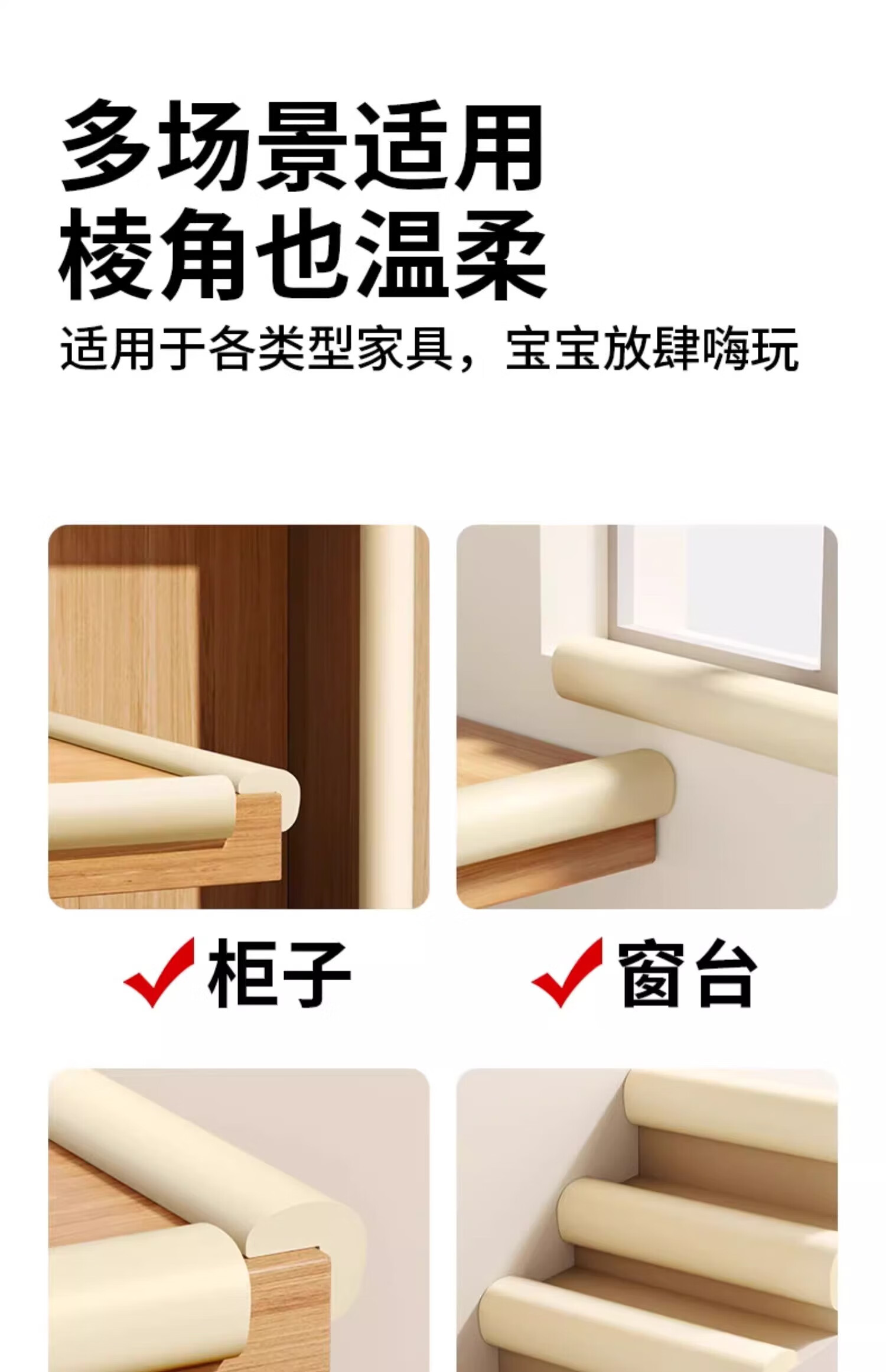 AIBEDILA anti-collision strips for children, environmentally friendly corner wrapping, soft corner protectors, baby anti-collision table stickers, protective strips, thickened L-shaped - beige, 0 meters, thickened, 2 meters packed + 4 meters of glue