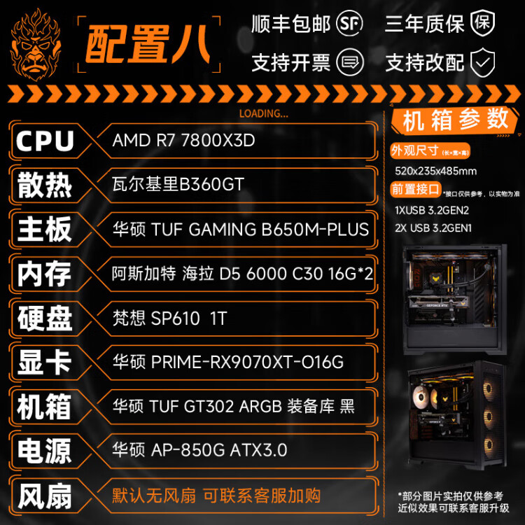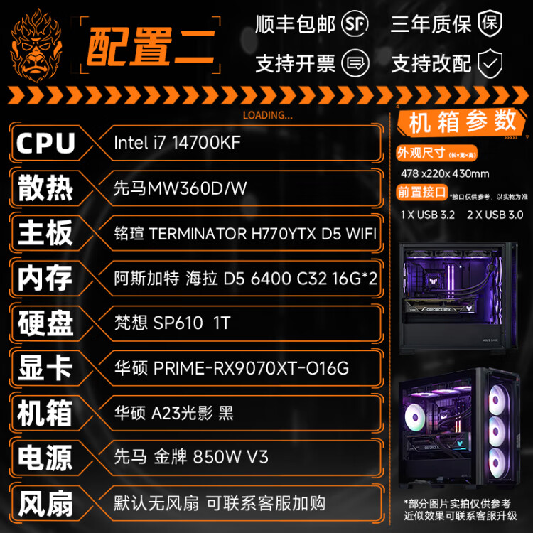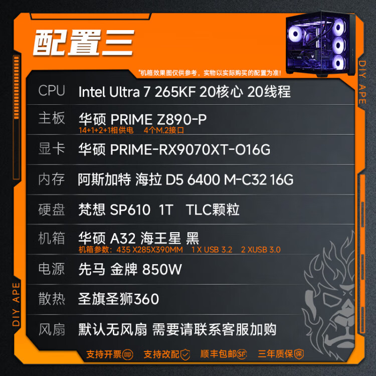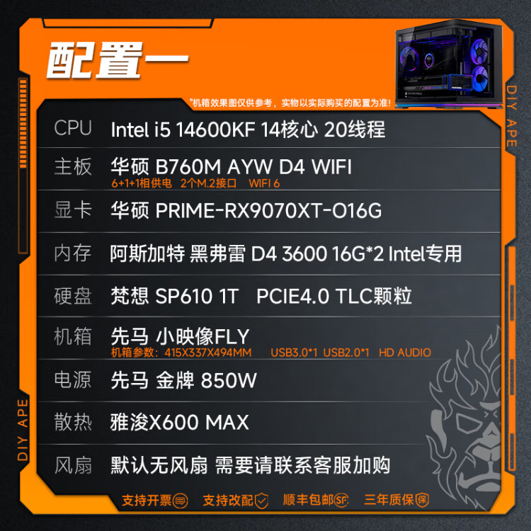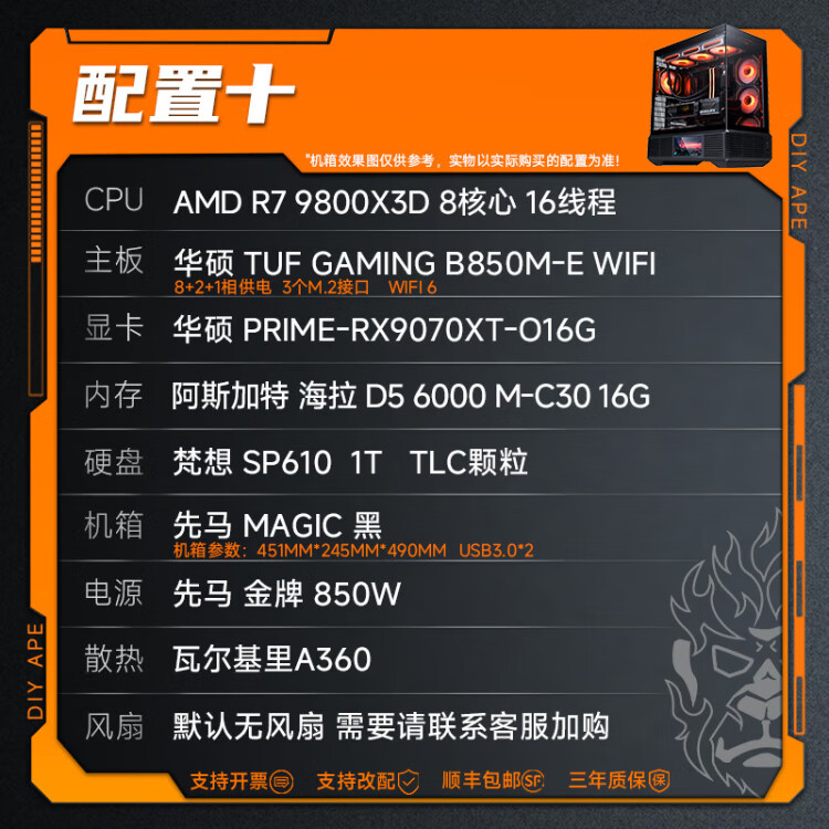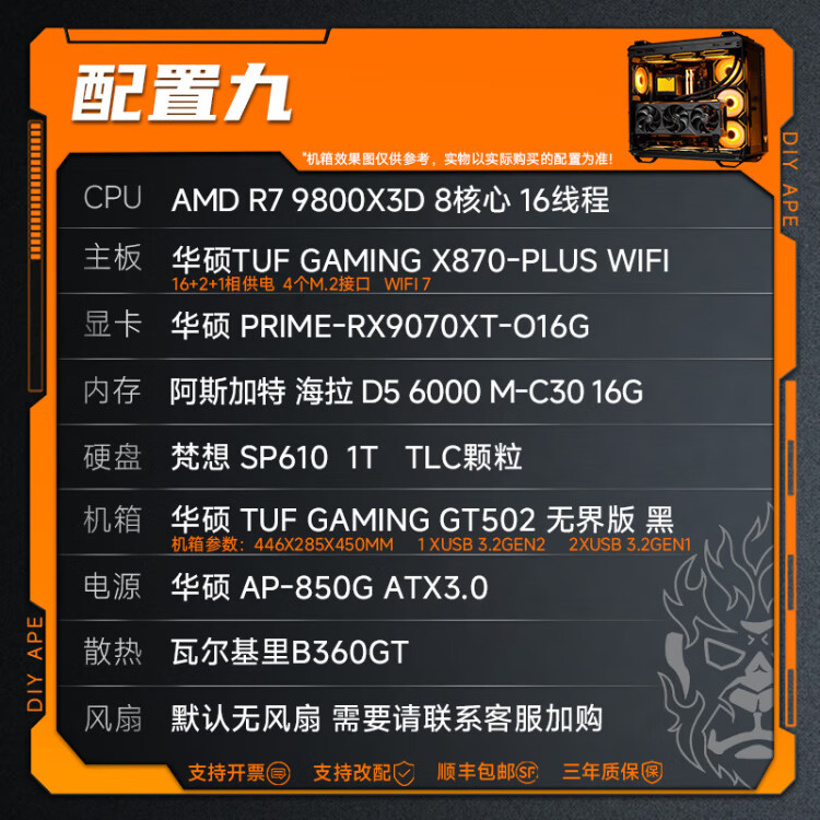 DIY APE installation ape shop ASUS 9070XT host 9800X3D/14600KF Computer desktop host game live broadcast design rendering video editing assembly machine four 7500F+9070XT| D5