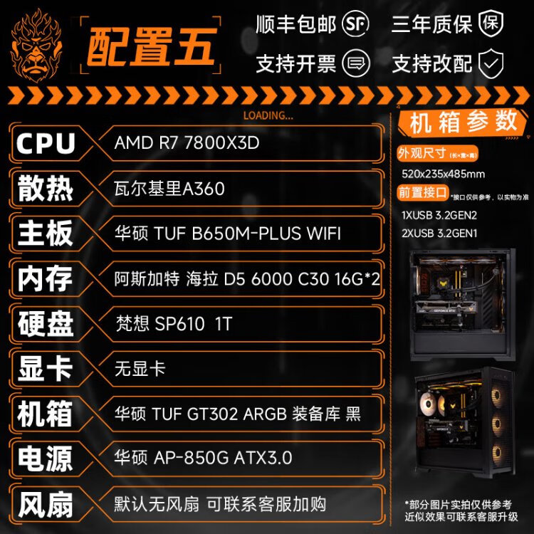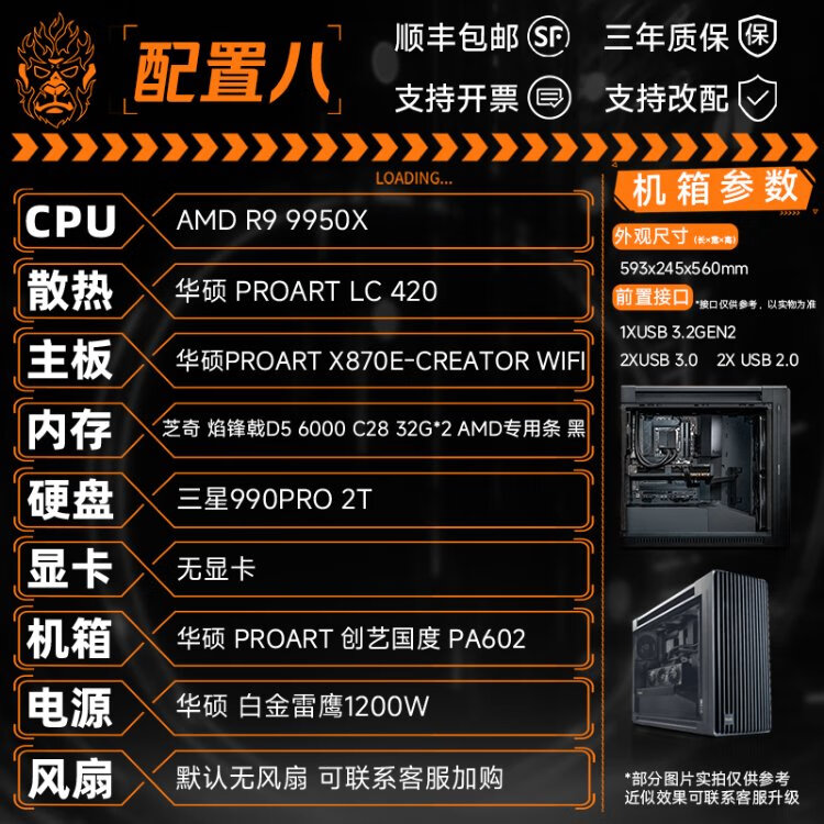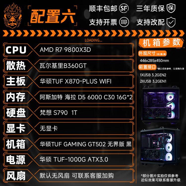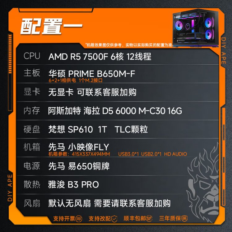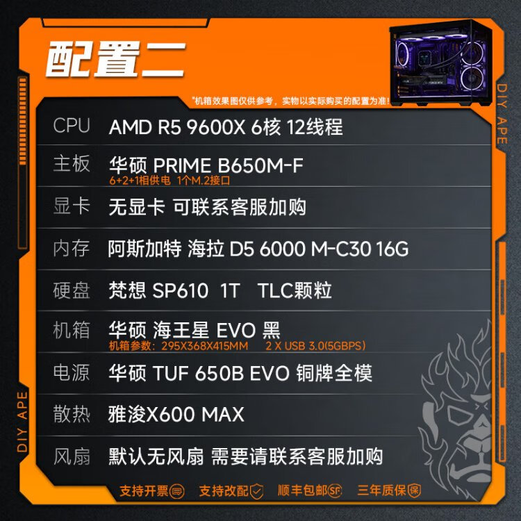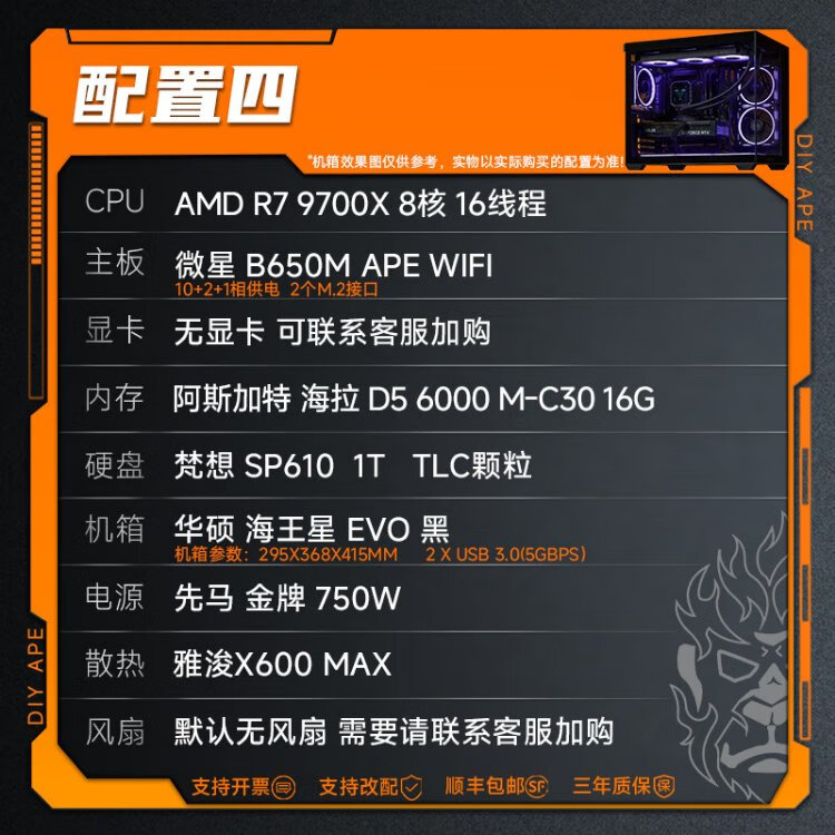 DIY APE ancient era installation ape without graphics card host AMD 9800X3D/9600X game live broadcast assembly machine design and rendering computer desktop DIY deep learning machine four 9700X|16g D5|1t back plug without graphics card host (need to purchase your own graphics card)