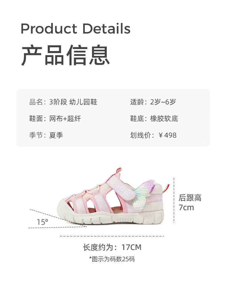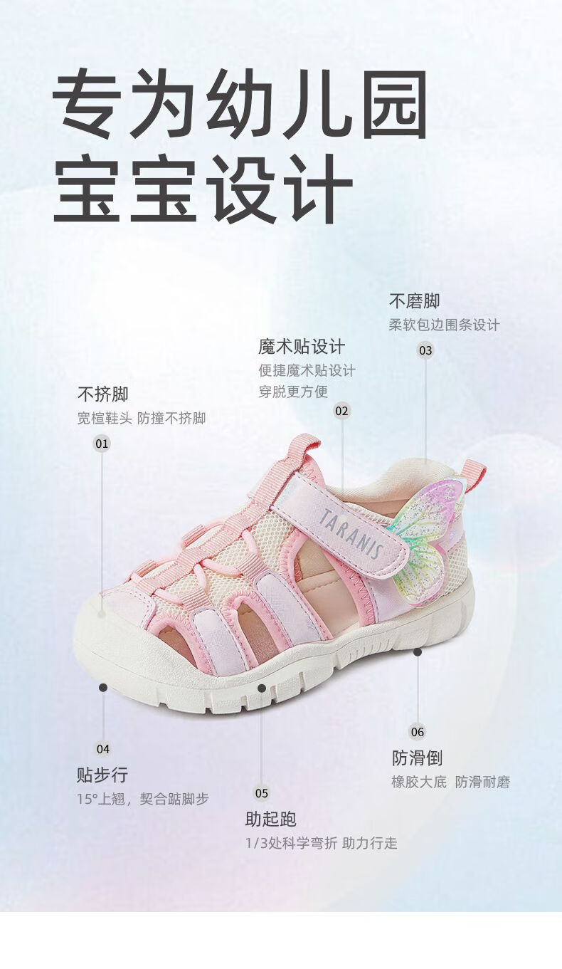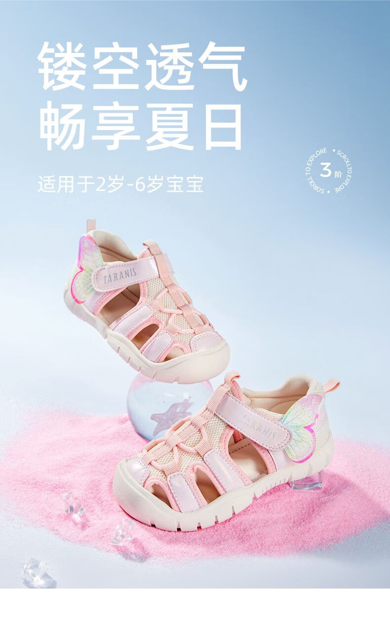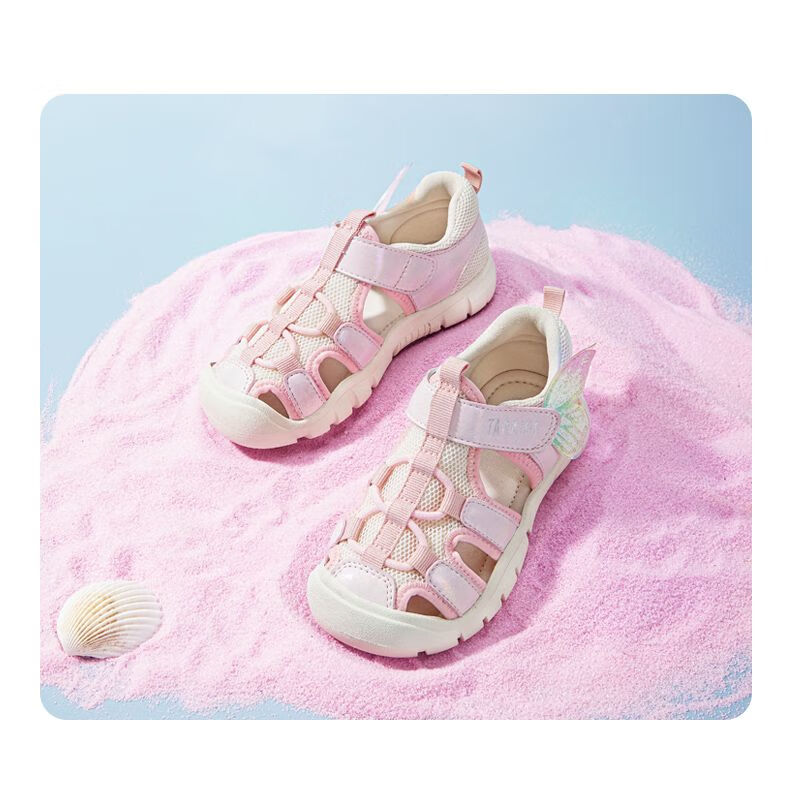Terranis Sandals Summer New Girls' Non-Slip Soft Soled Beach Shoes Baotou Anti-Kick Casual Shoes Children's Shoes Pink_Purple 24_Inner Length 16.0cm Suitable for Feet Length 15.0cm