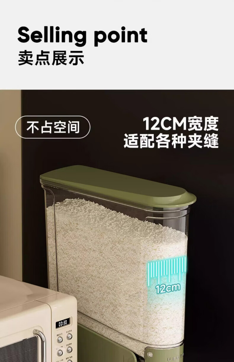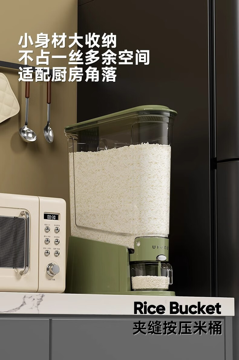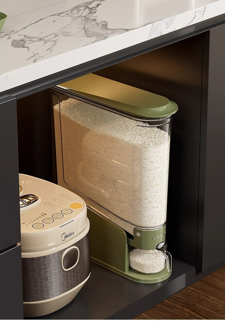 Skingcond Japanese rice bucket household insect-proof and moisture-proof sealed food-grade rice box noodle bucket rice noodle storage container press small size 12Jin Jin equal to 0.5 kg medieval green press out rice/2025 new rice barrel
