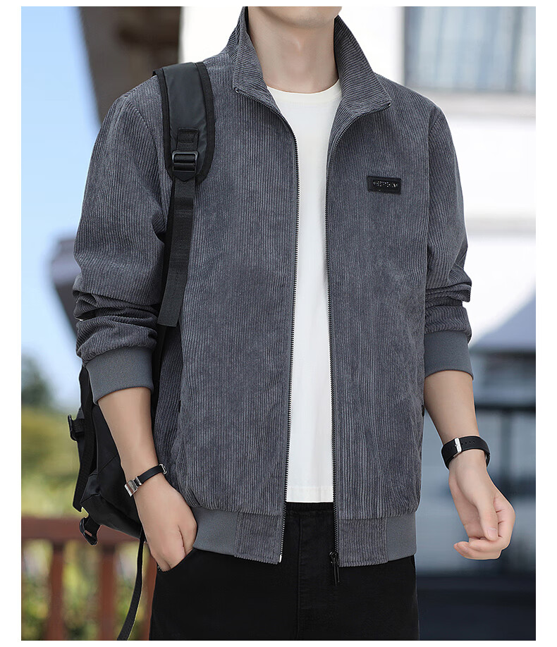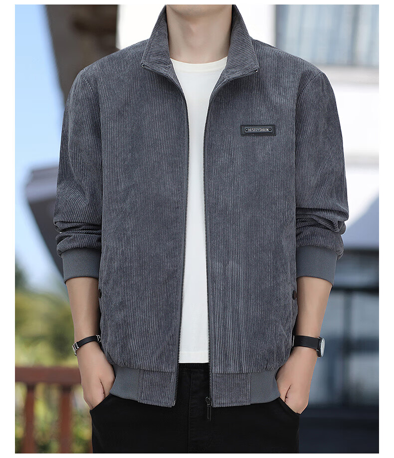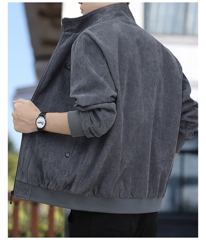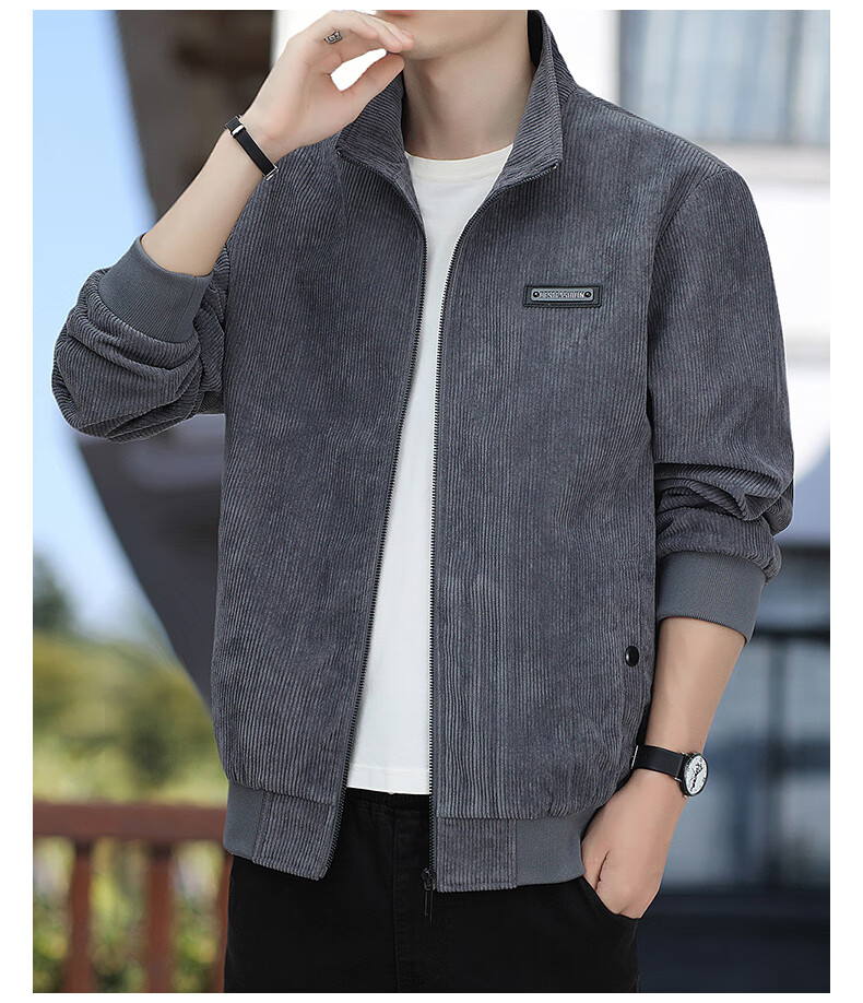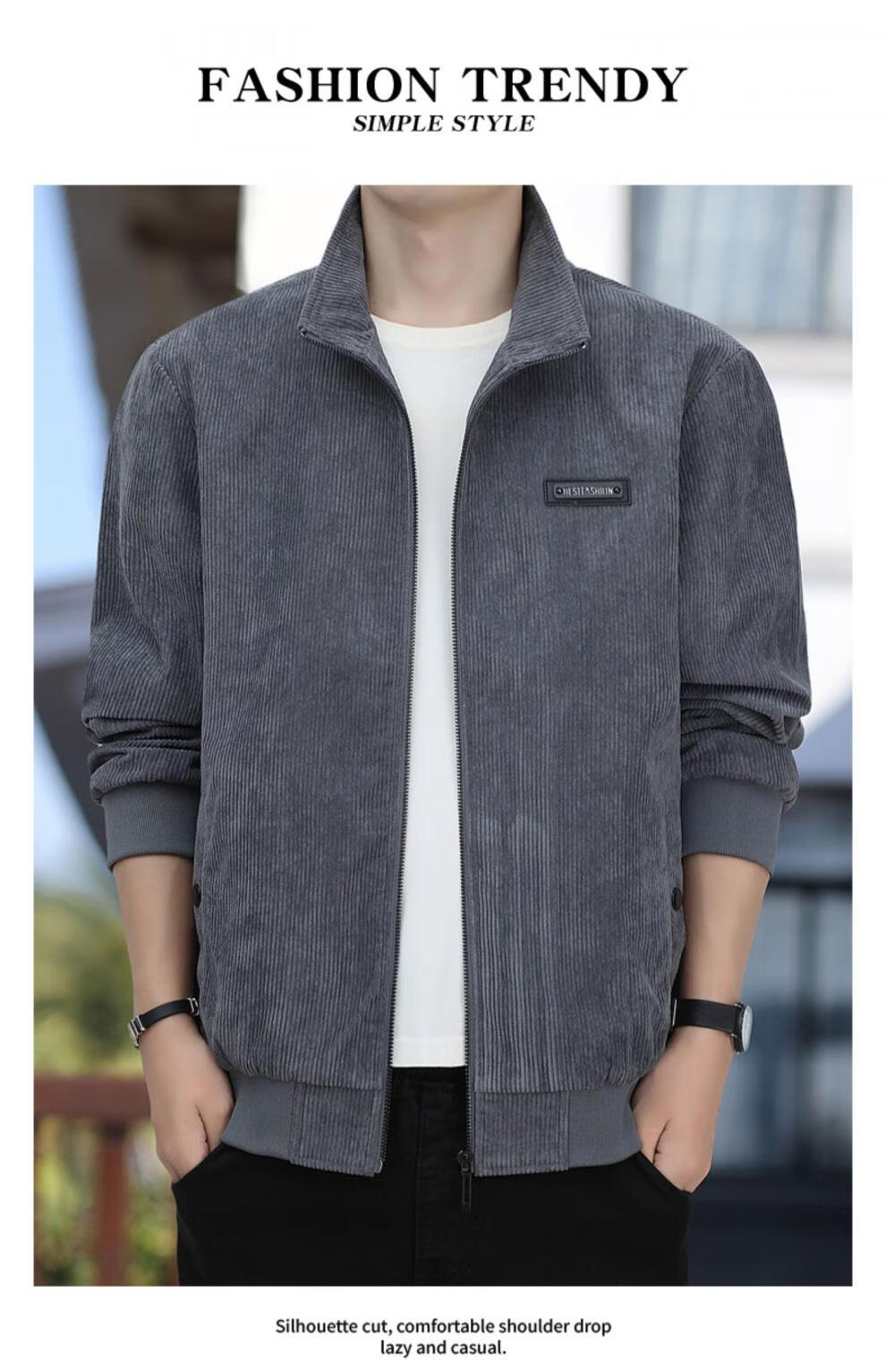 Semir men's jacket trendy brand loose lapel casual clothes autumn and winter thin section 2025 new corduroy plus velvet jacket M883 dark gray. Regular 2XL