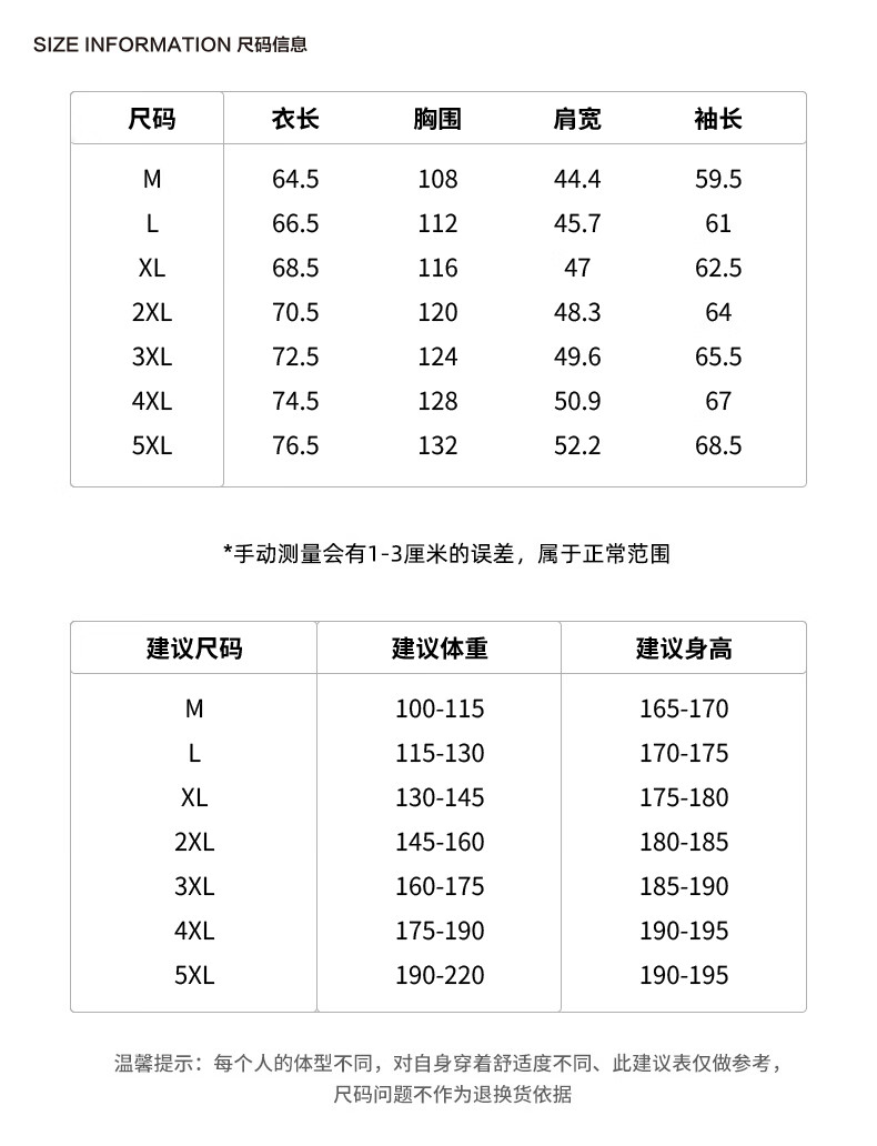 China (cm) 165 / 88-90 170 / 96-98 175 / 108-110 180 / 118-122 185 / 126-130