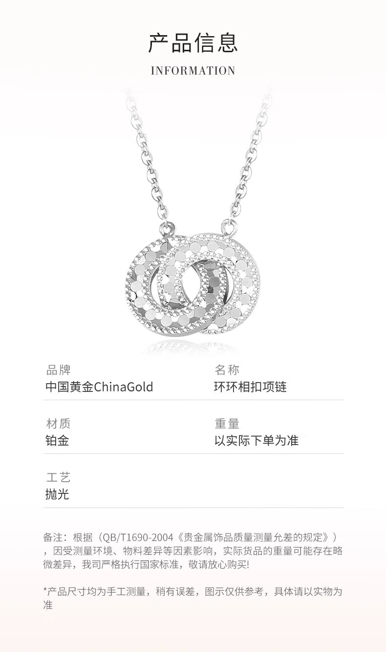 China Gold (CHINA GOLD) PT950 Platinum Interlocking Pendant Women's New Crushed Ice Valentine's Day Birthday Gift for Girlfriend and Wife Jingsuda* Platinum Interlocking Necklace About 4.9g Zhongjin Gift Box