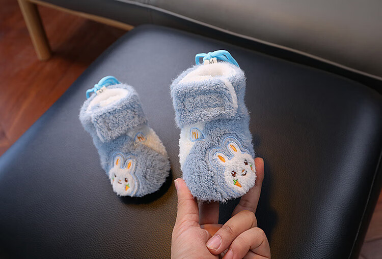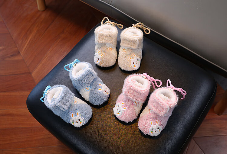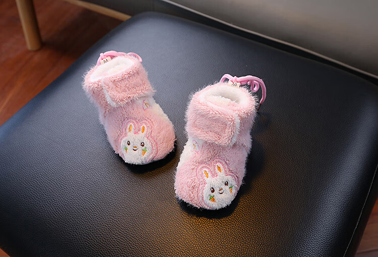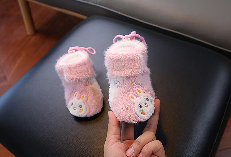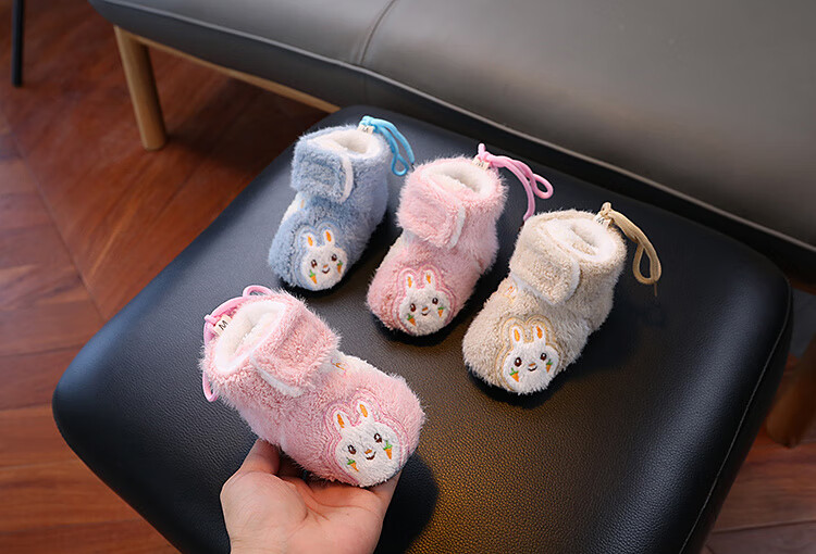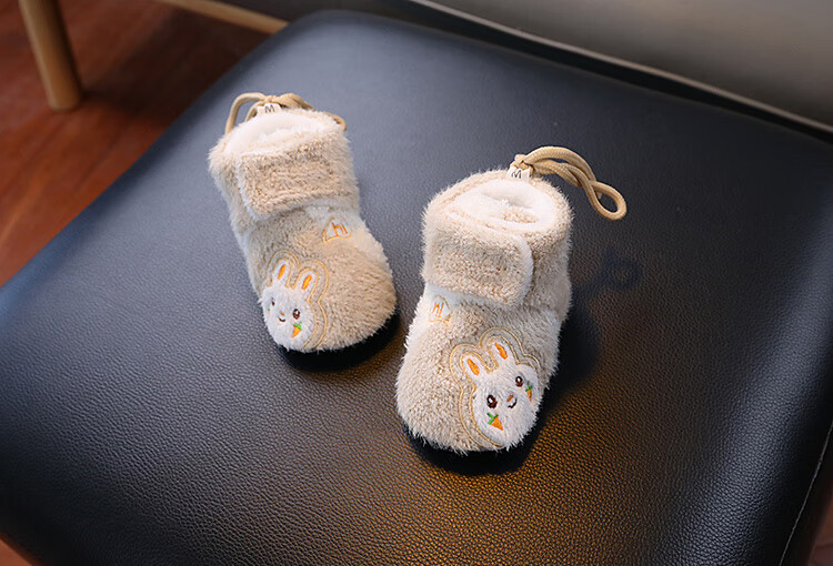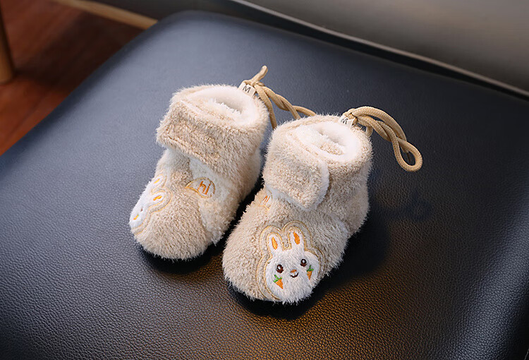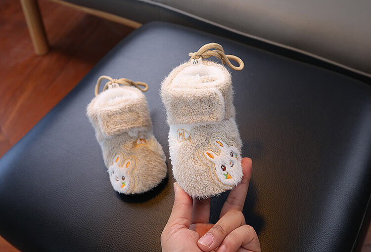 G.duck little yellow duck autumn and winter baby cotton boots plus velvet thick toddler shoes soft sole anti-falling anti-slip outer wear warm furry foot muffs khaki carrot rabbit autumn and winter plus velvet thickened magic 0-6 months inner length 11cm (recommended 0-4 months)