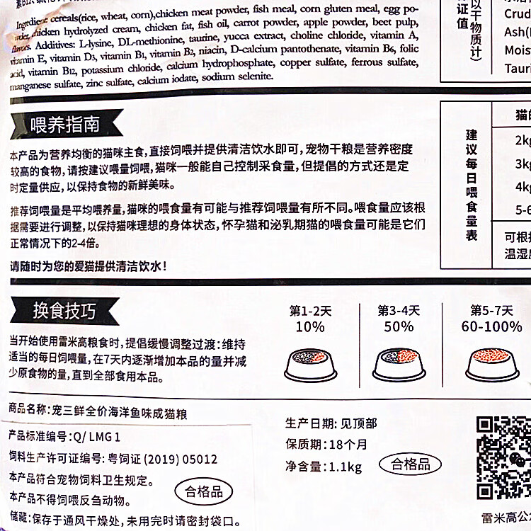 OIMG spot Remy high pet three fresh full price marine fish flavor adult cat food 1.1kg general cat food with good nutrition and palatability pet three fresh 4kg full price full period cat food full variety 4kg bag