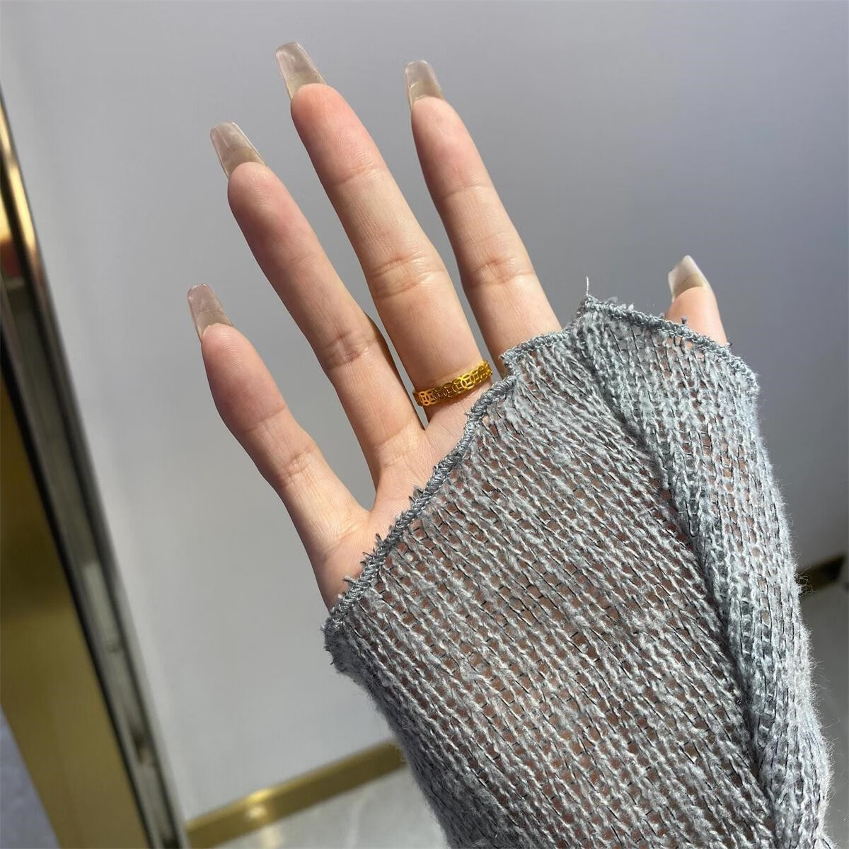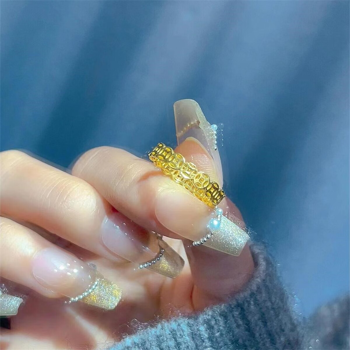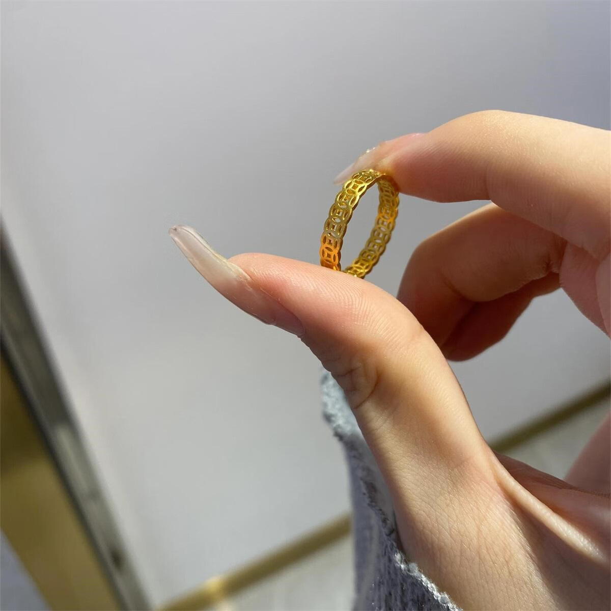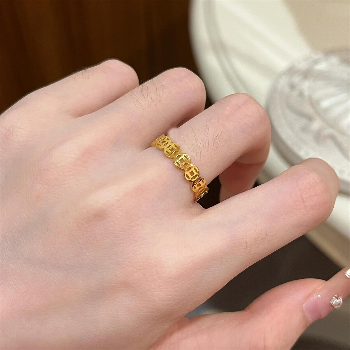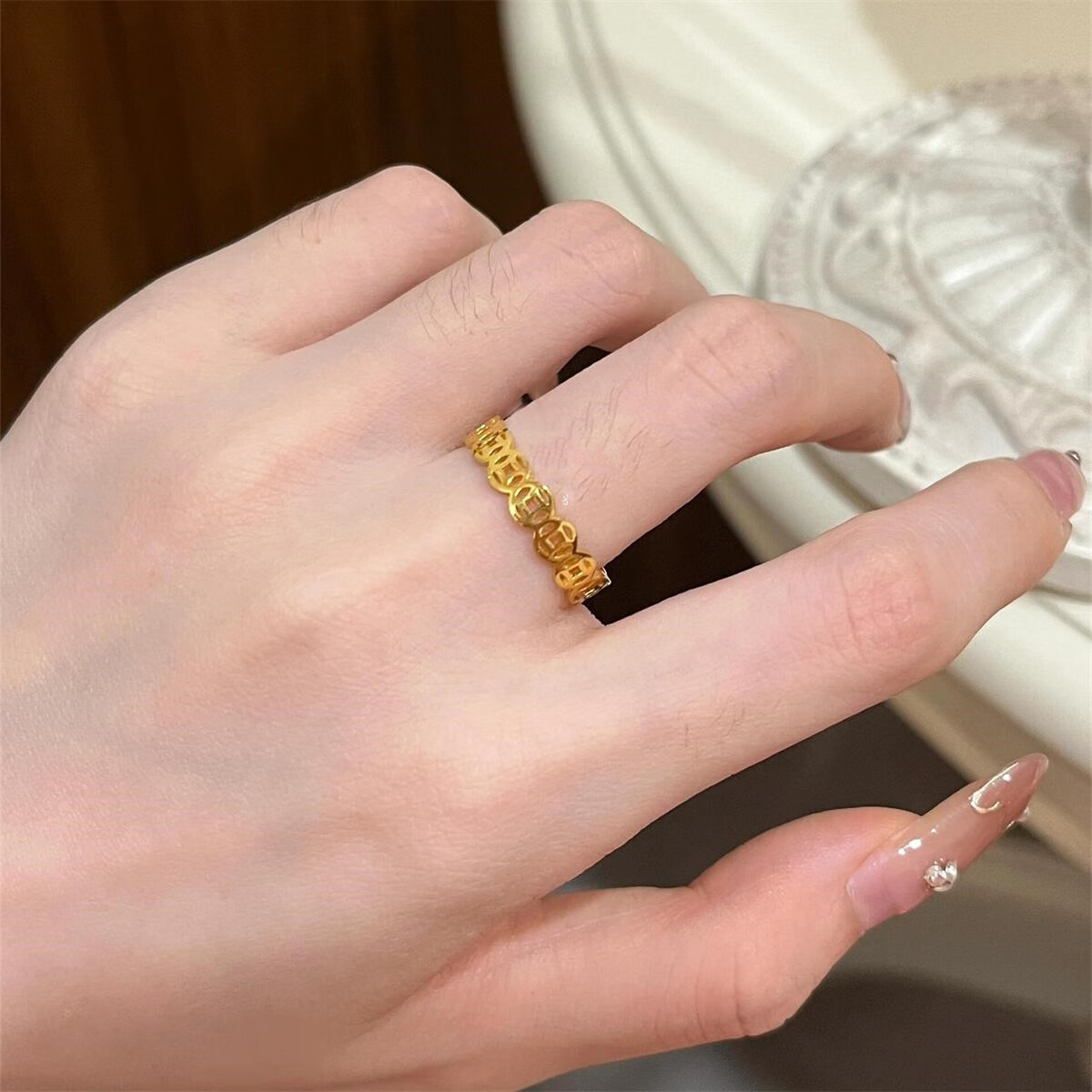 MHFDO Vietnam Sand Gold Hollow Copper Coin Ring Women's Fashion Personalized Index Finger Ring Temperament Internet Celebrity Plain Ring Gold Ring Copper Coin Ring US Size 8