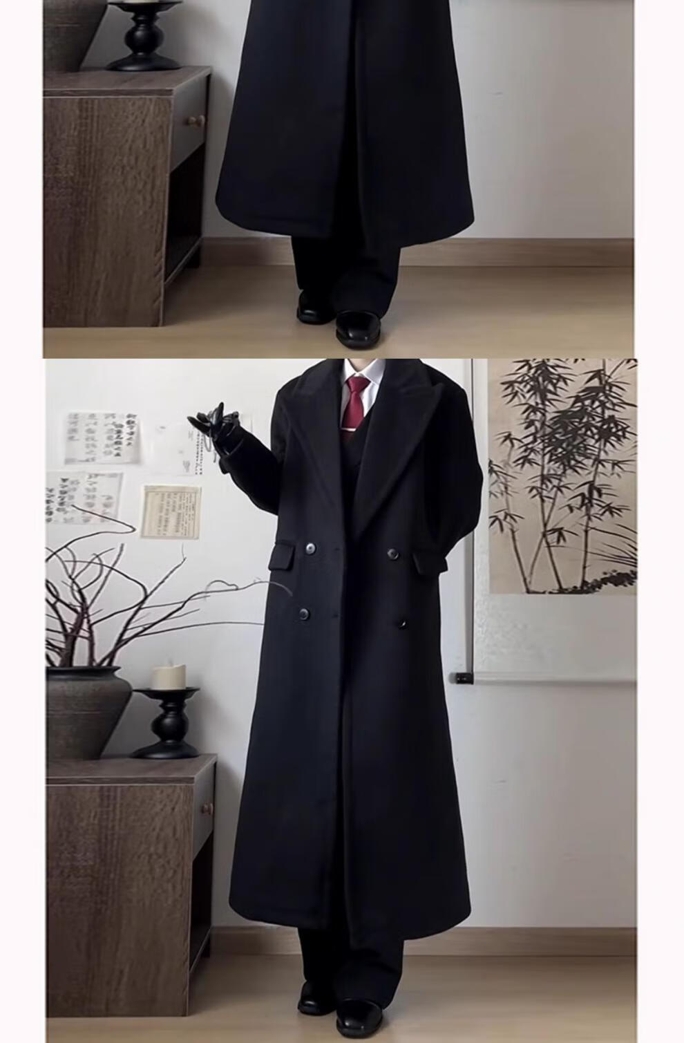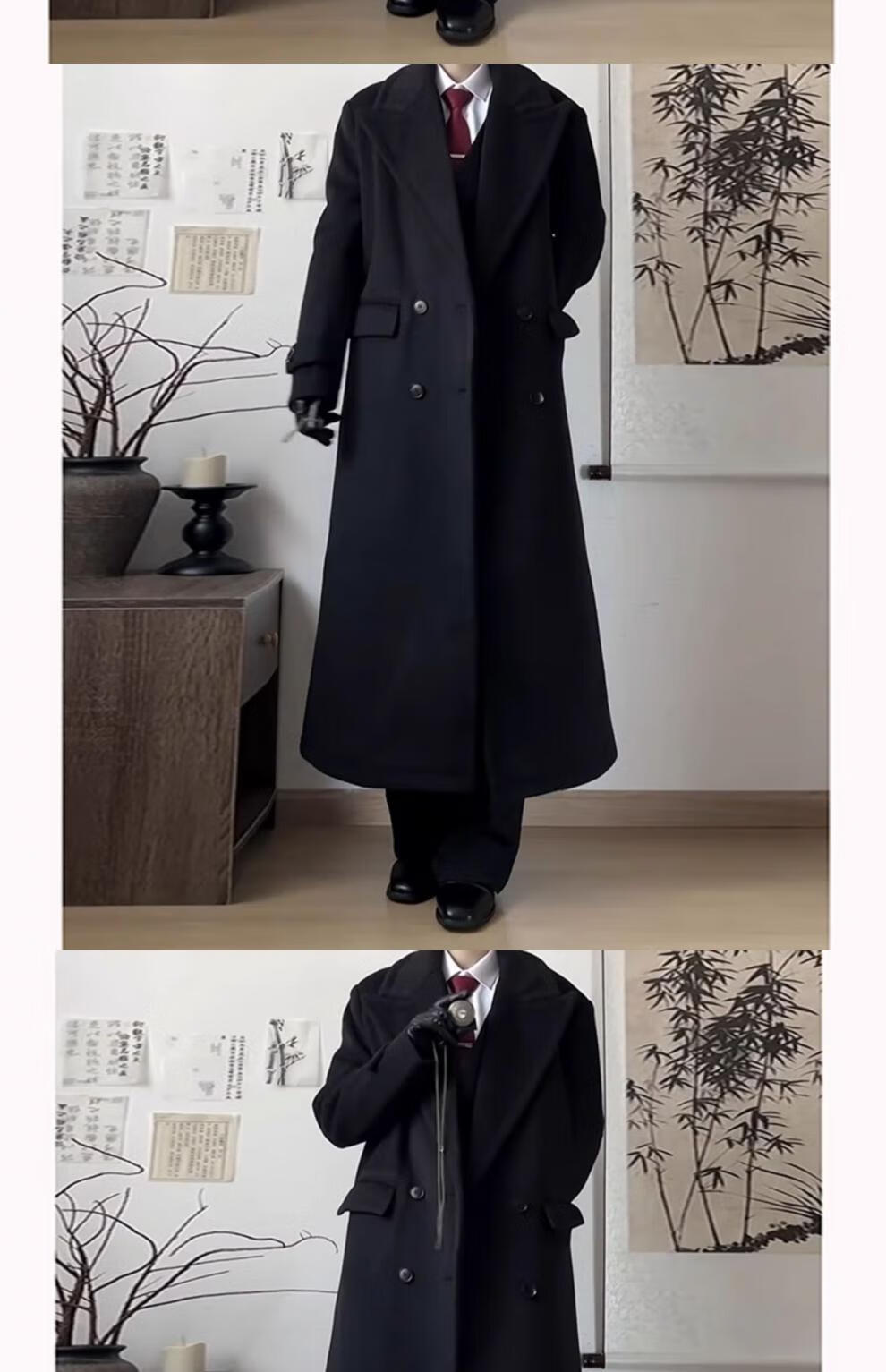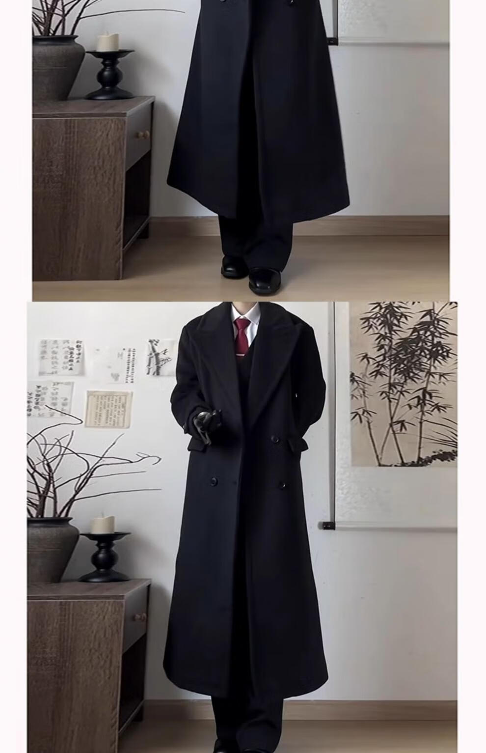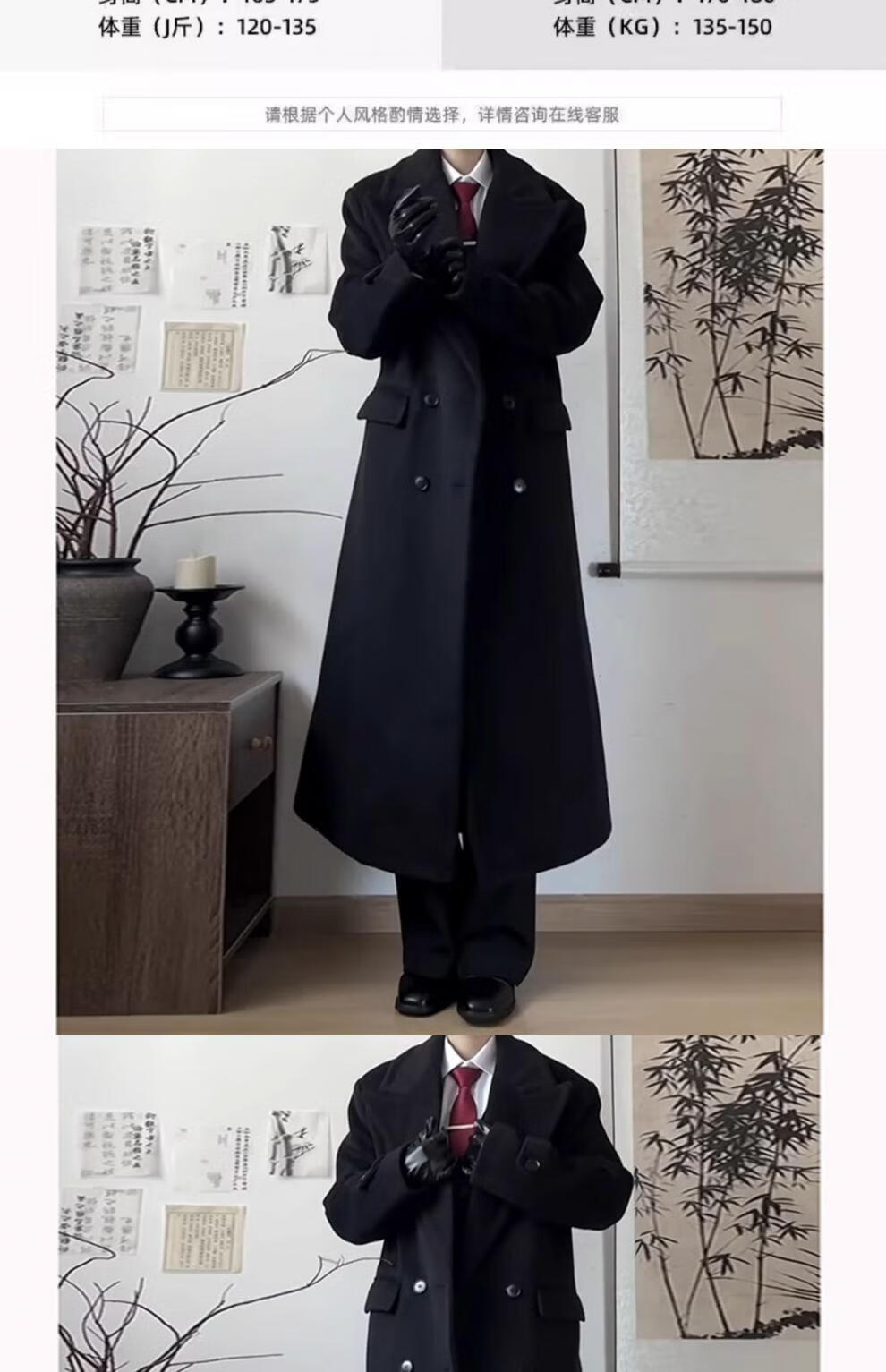 Playboy (PLAYBOY) black shoulder woolen coat for men and women in autumn and winter. Cotton and thickened long British style knee-length windbreaker woolen coat. Black cotton and thickened. XL 145 to 160Jin Jin is equal to 0.5 kg. Can be worn