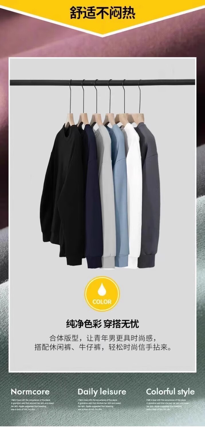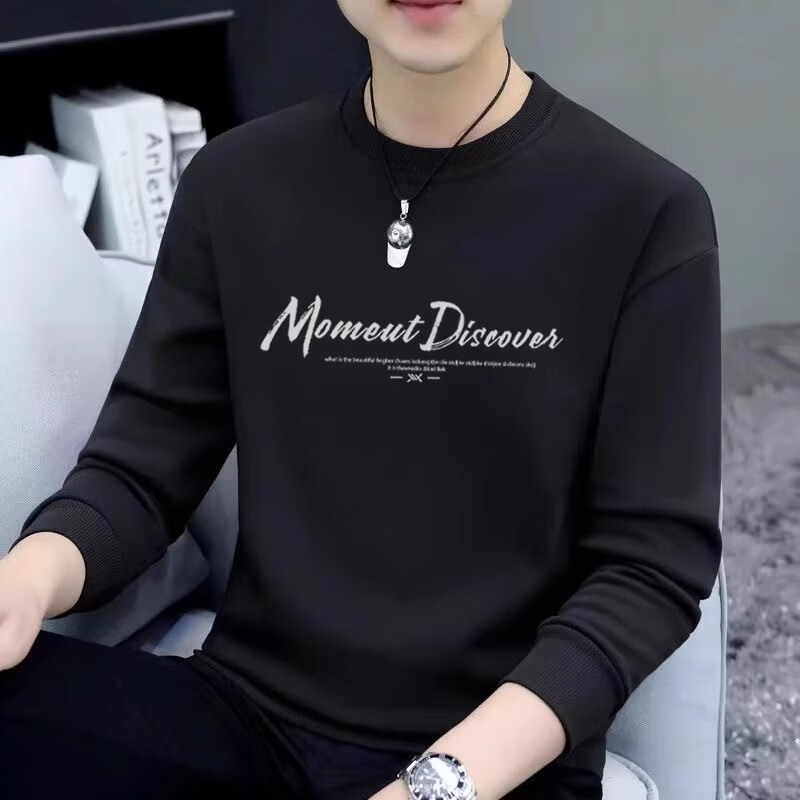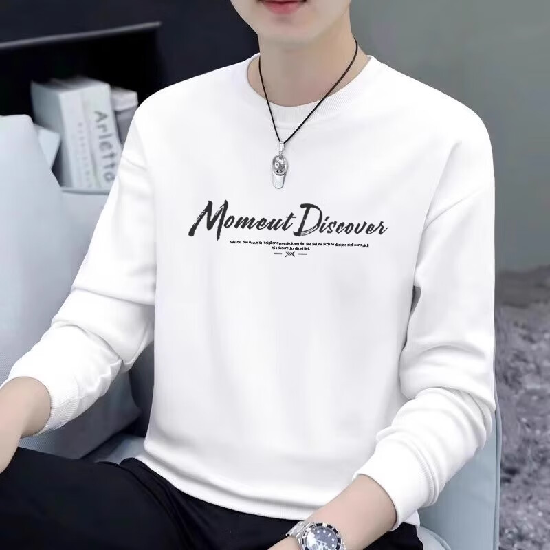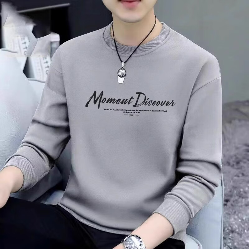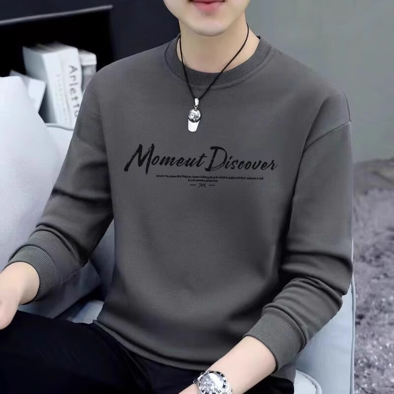 Woodpecker pure cotton sweatshirt men's 2026 spring and autumn round neck pullover casual bottoming shirt top men's trendy AM carbon gray + MD light gray spring and autumn style 2 pieces XL recommended 130-145Jin Jin equals 0.5 kg