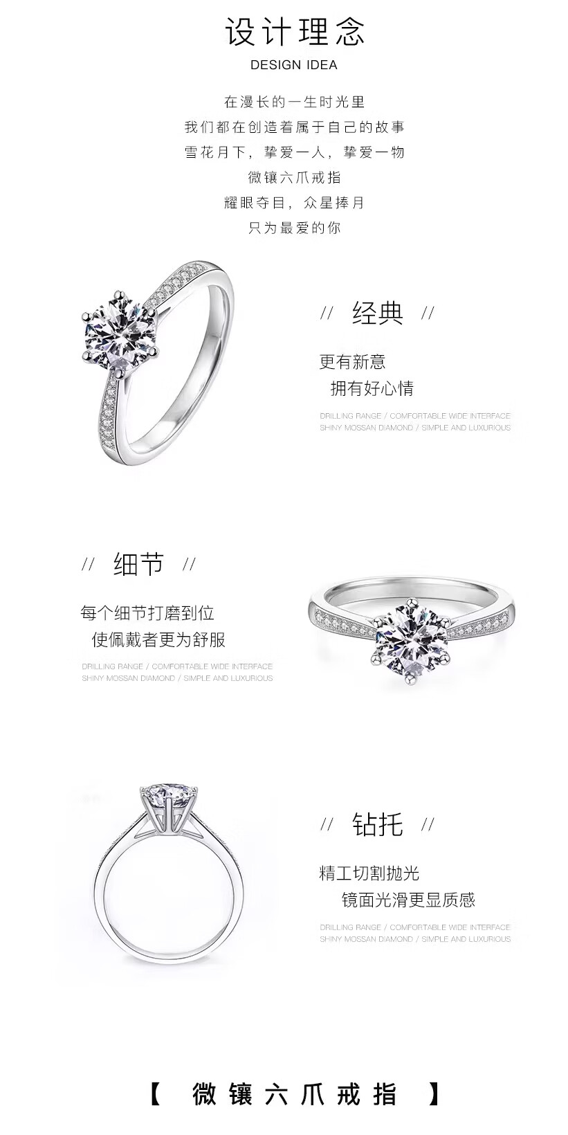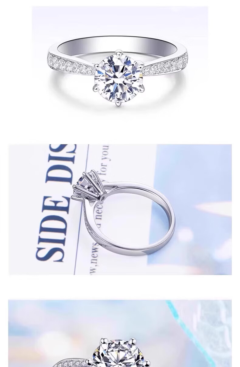 Genuine PT950 platinum diamond ring with six prongs and micro-set 18K gold ring for proposal and engagement as a Valentine's Day gift for girlfriend. The main diamond is 1 carat (light luxury model). Default opening (can be adjusted)
