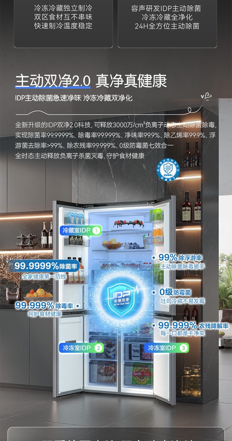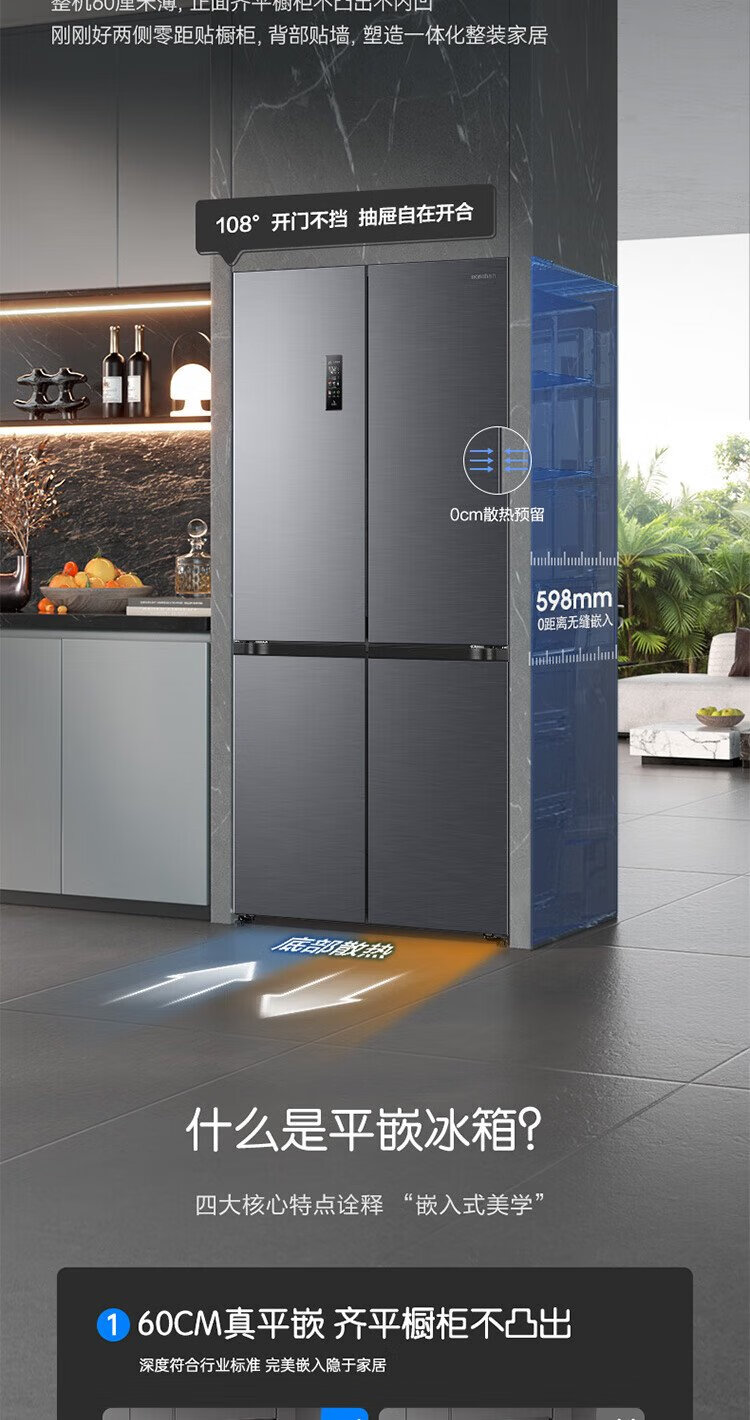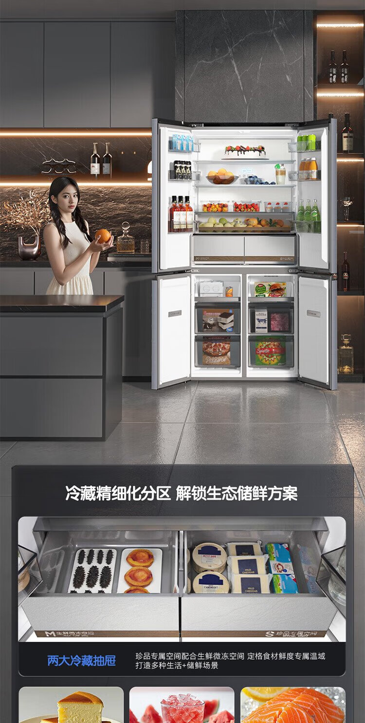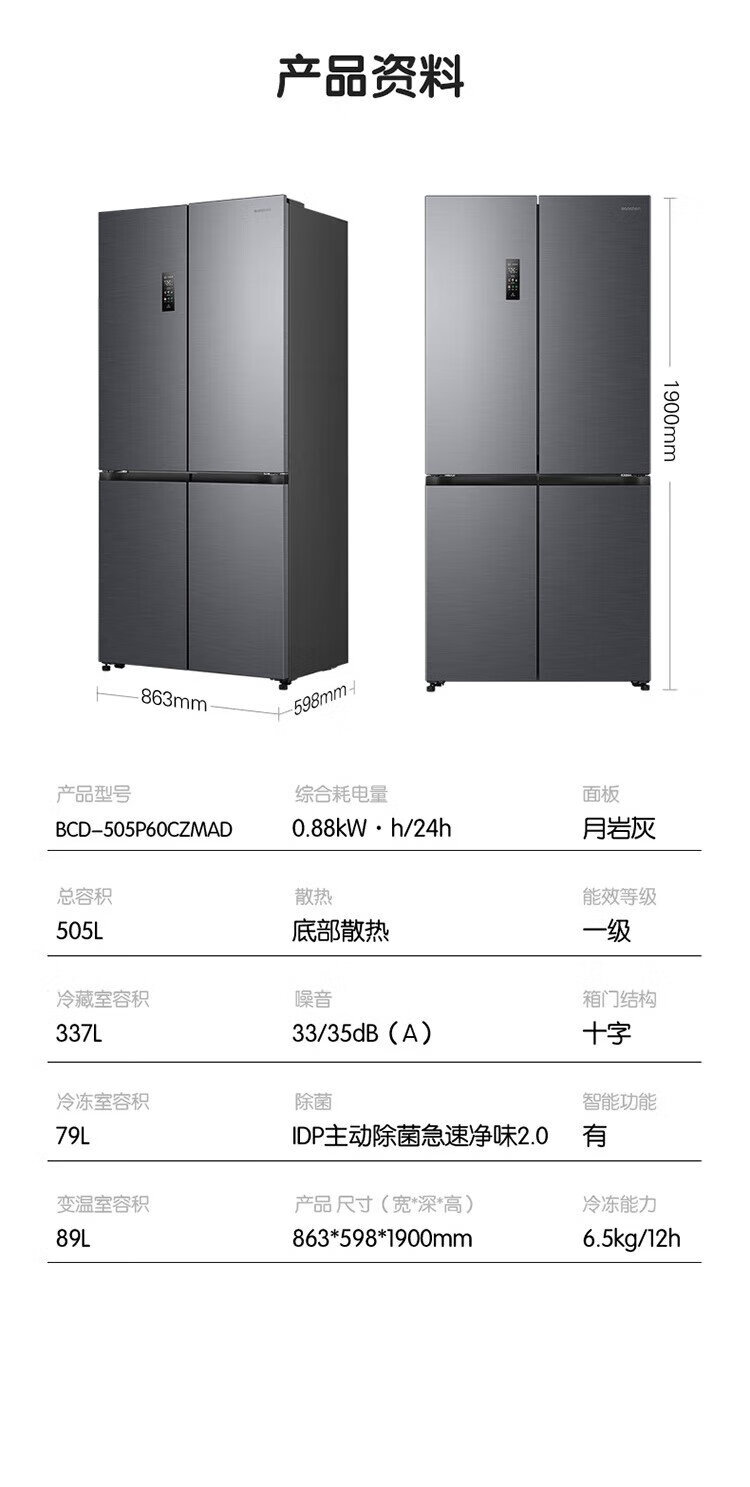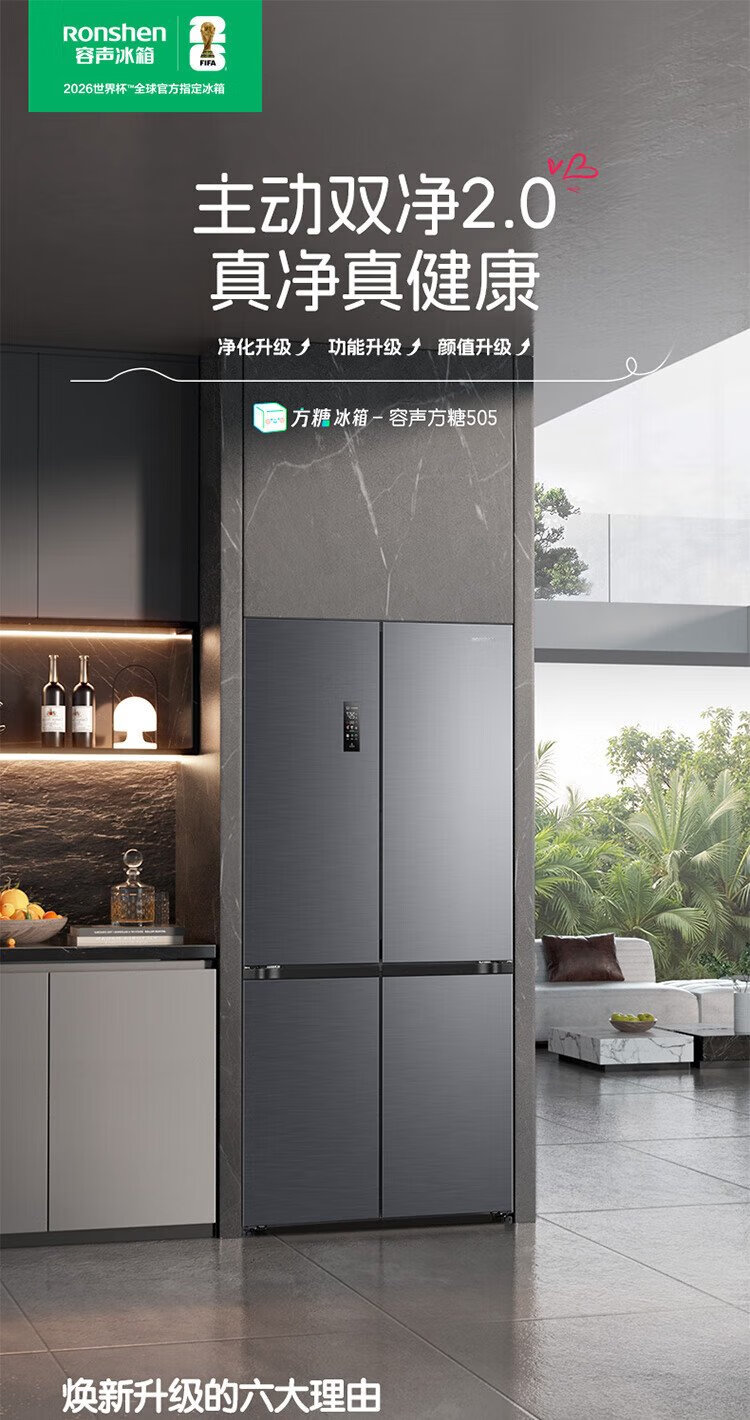 Rongsheng Cube Sugar 505 Active Dual Purification Dual System Cross Ultra-Thin Embedded Sterilization Refrigerator Class One Energy Saving Frost-Free World Cup BCD-505P60CZMAD Gray National Subsidy Rongsheng Cube Sugar | 505 Dual System Embedded Active Sterilization