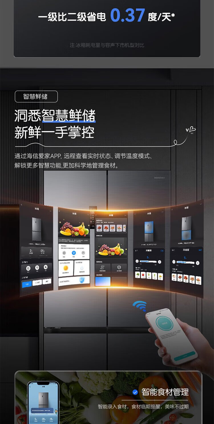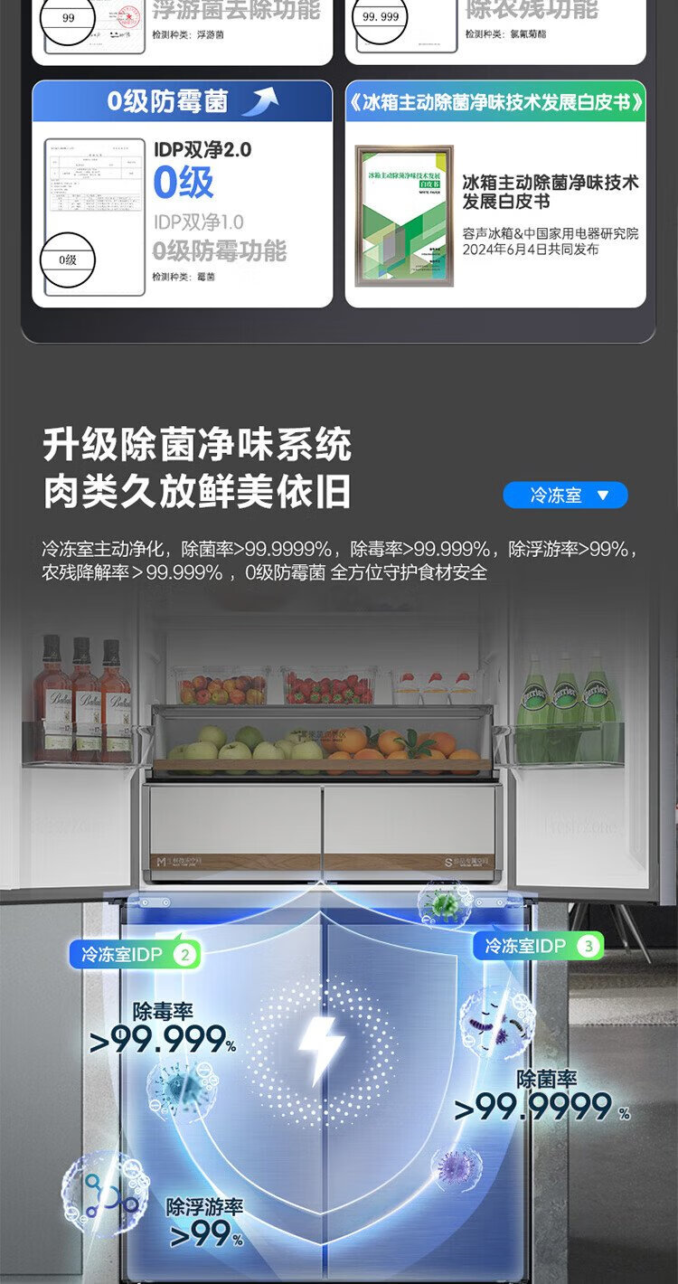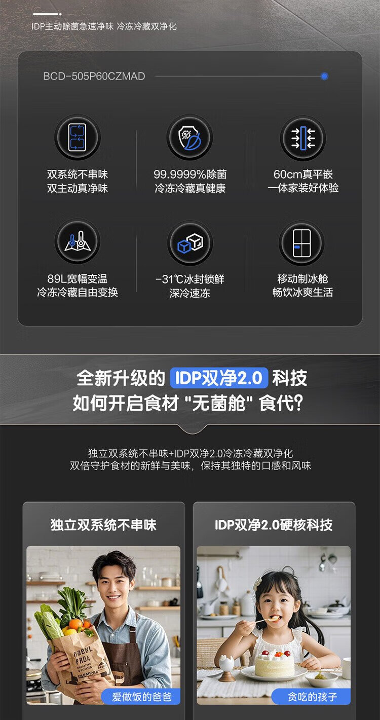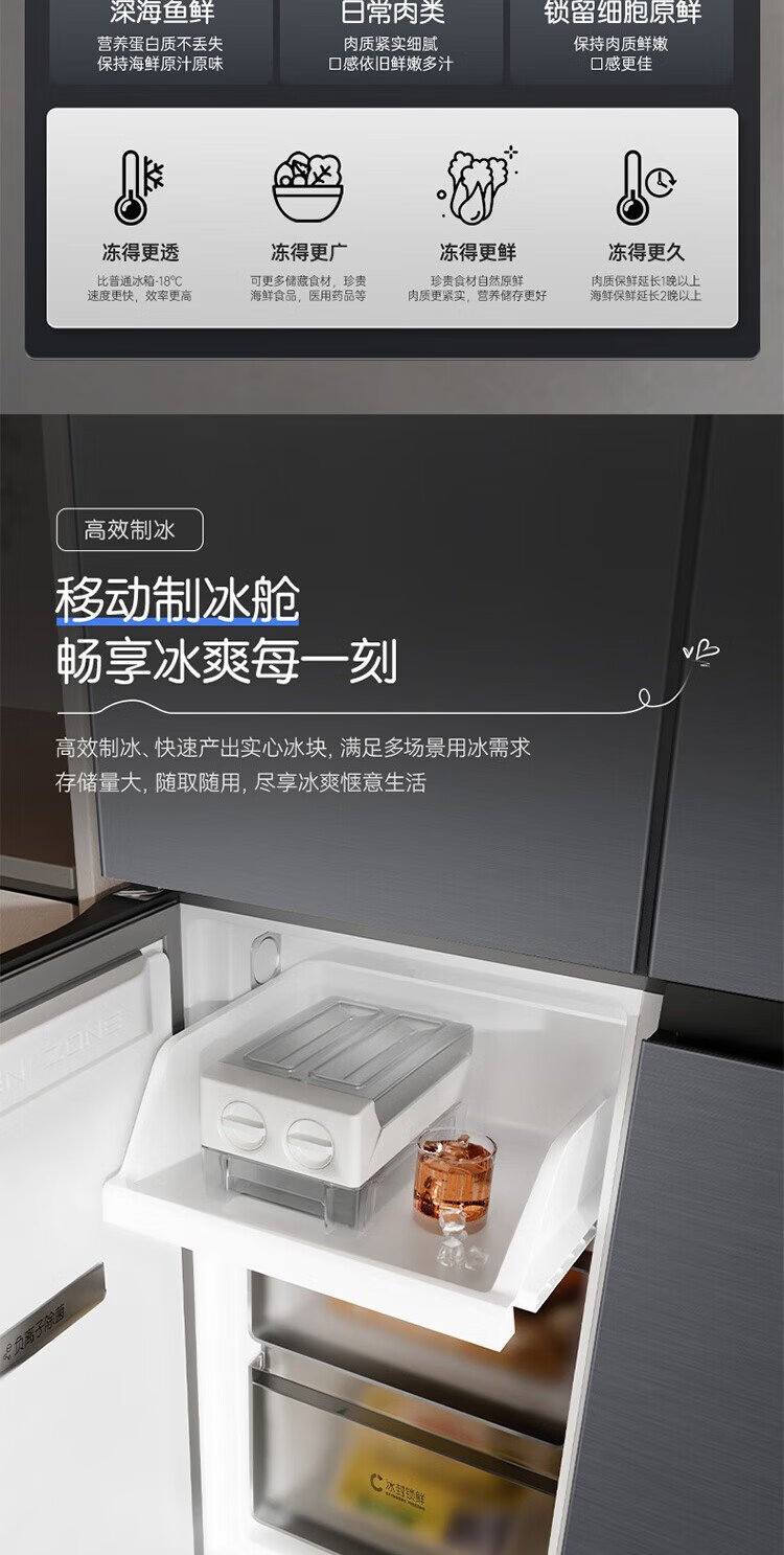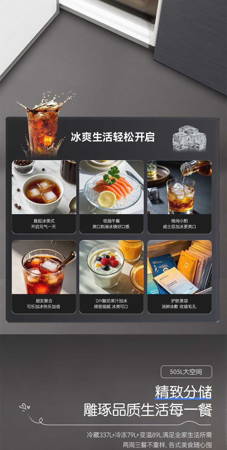 Rongsheng Cube Sugar 505 Active Dual Purification Dual System Cross Ultra-Thin Embedded Sterilization Refrigerator Class One Energy Saving Frost-Free World Cup BCD-505P60CZMAD Gray National Subsidy Rongsheng Cube Sugar | 505 Dual System Embedded Active Sterilization