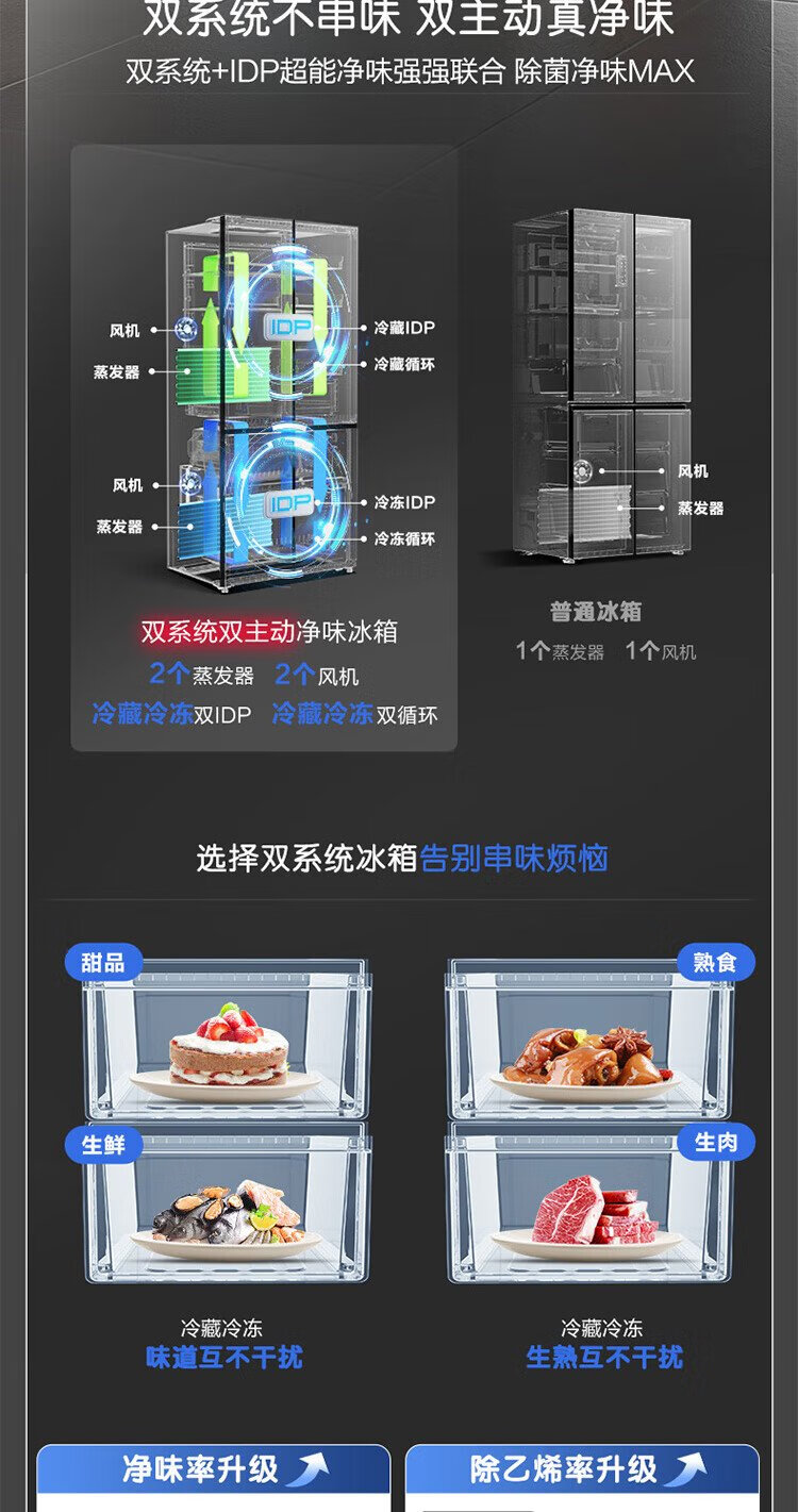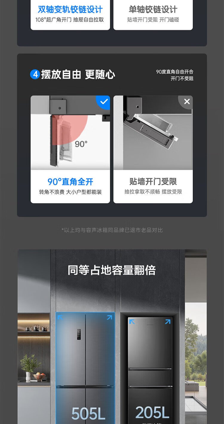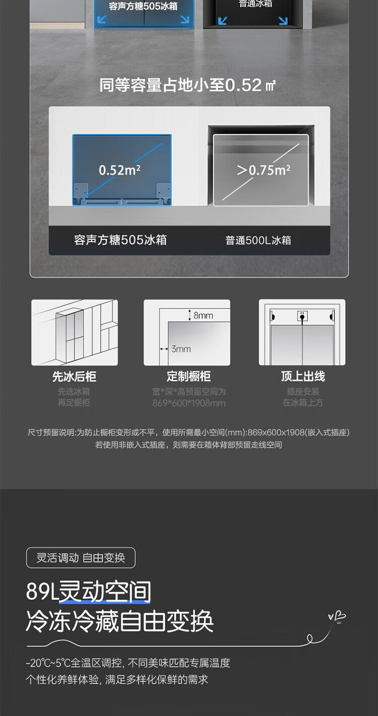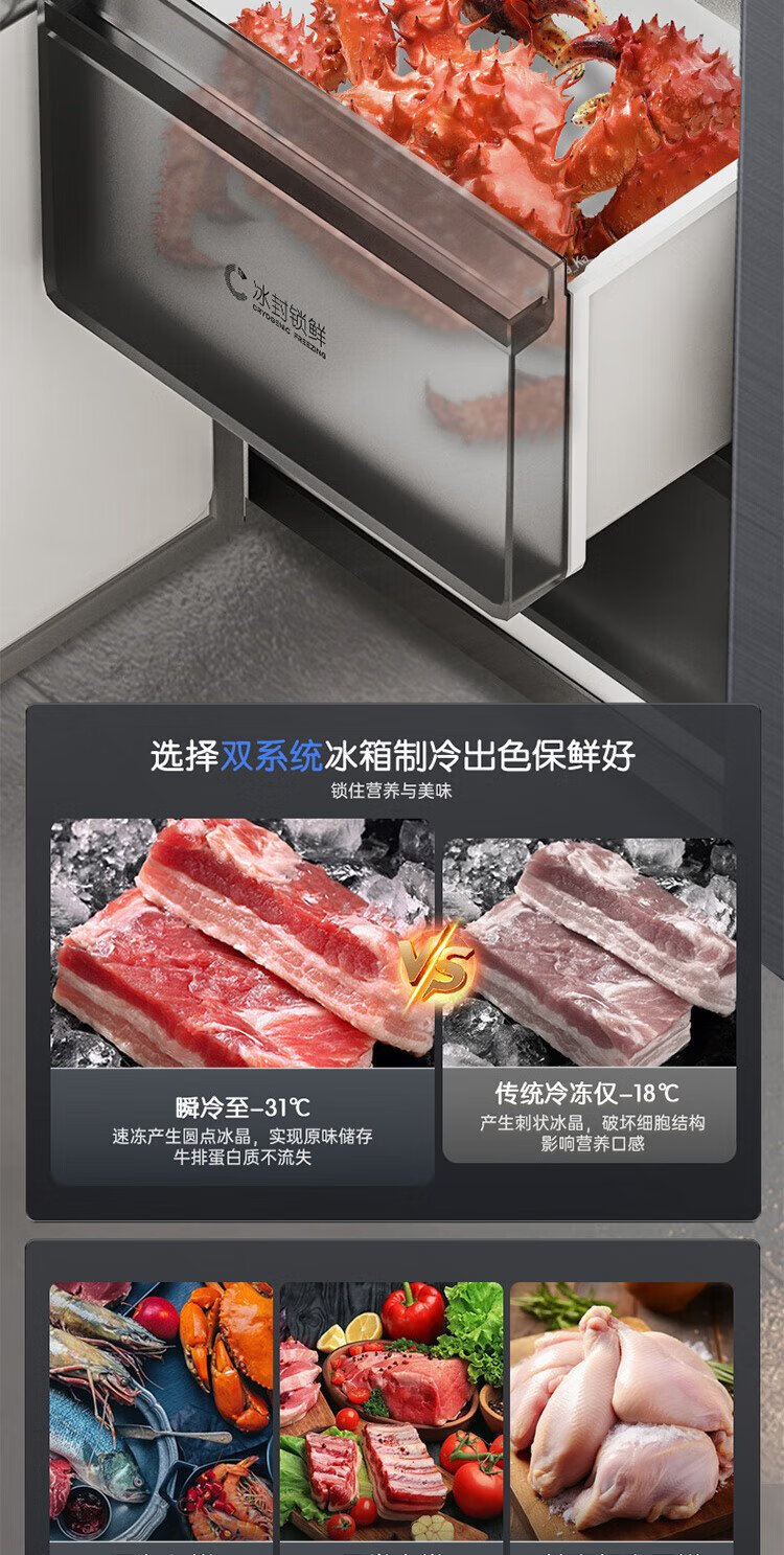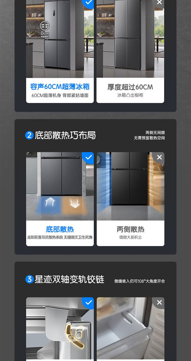 Rongsheng Cube Sugar 505 Active Dual Purification Dual System Cross Ultra-Thin Embedded Sterilization Refrigerator Class One Energy Saving Frost-Free World Cup BCD-505P60CZMAD Gray National Subsidy Rongsheng Cube Sugar | 505 Dual System Embedded Active Sterilization