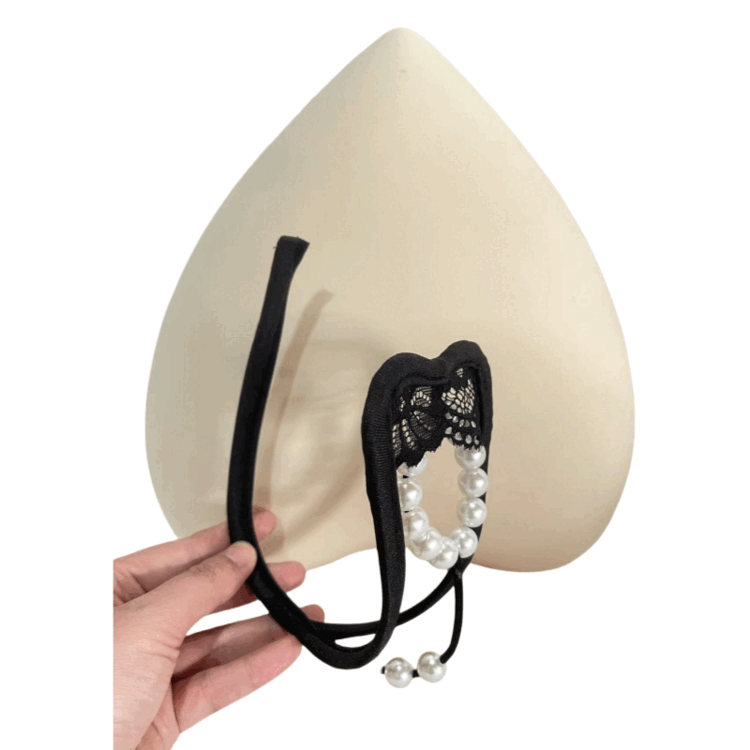 Renduo Men's C-string Pants Lace Pearl Decorated Hollow Invisible Flirting U-Shaped T-Pants One Size Black One Size (80-180Jin Jin is equal to 0.5kg)