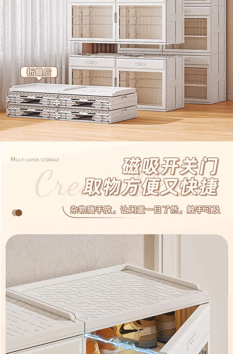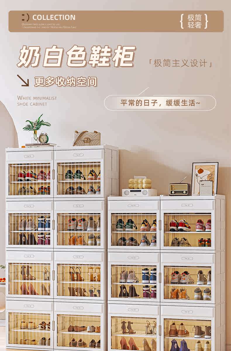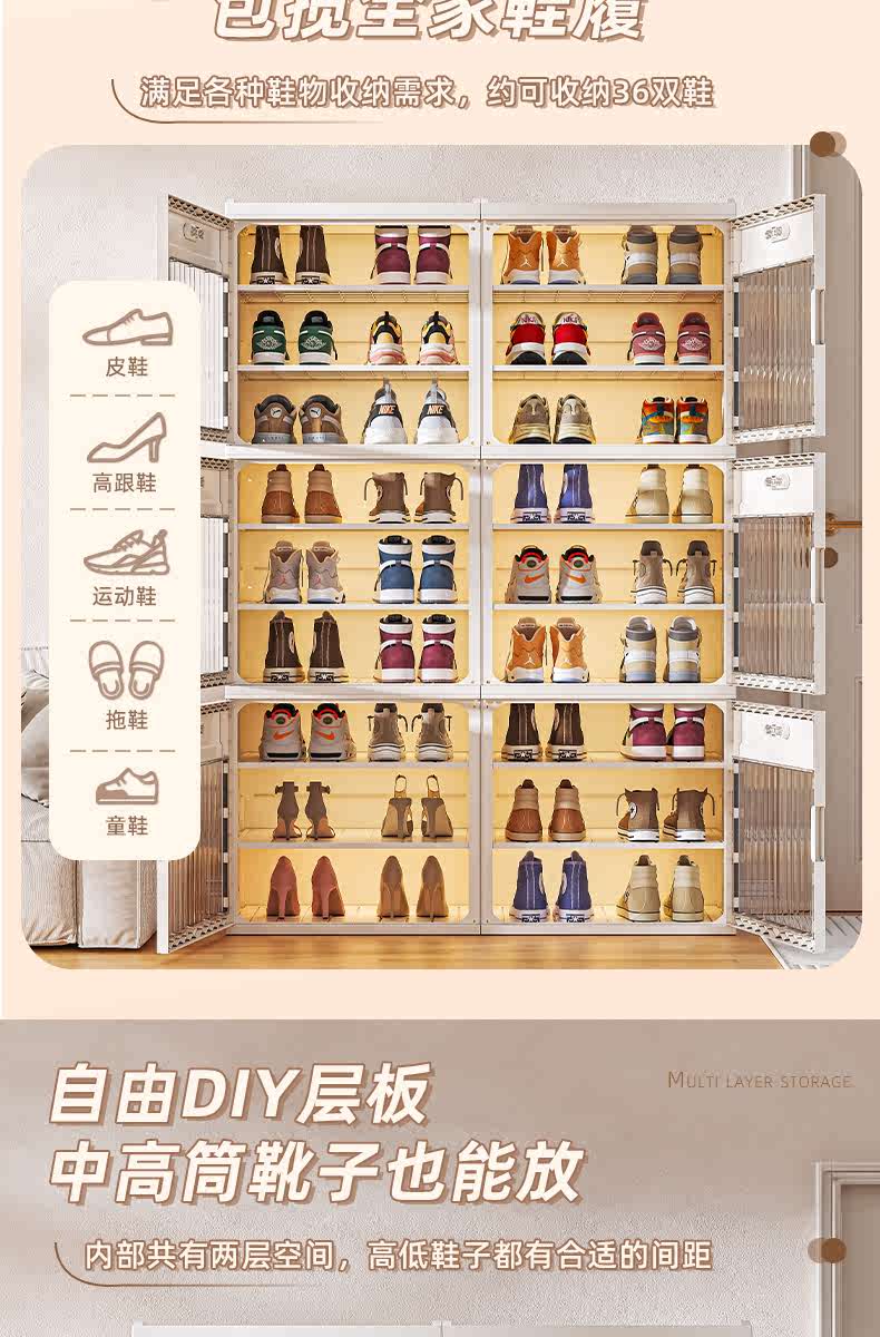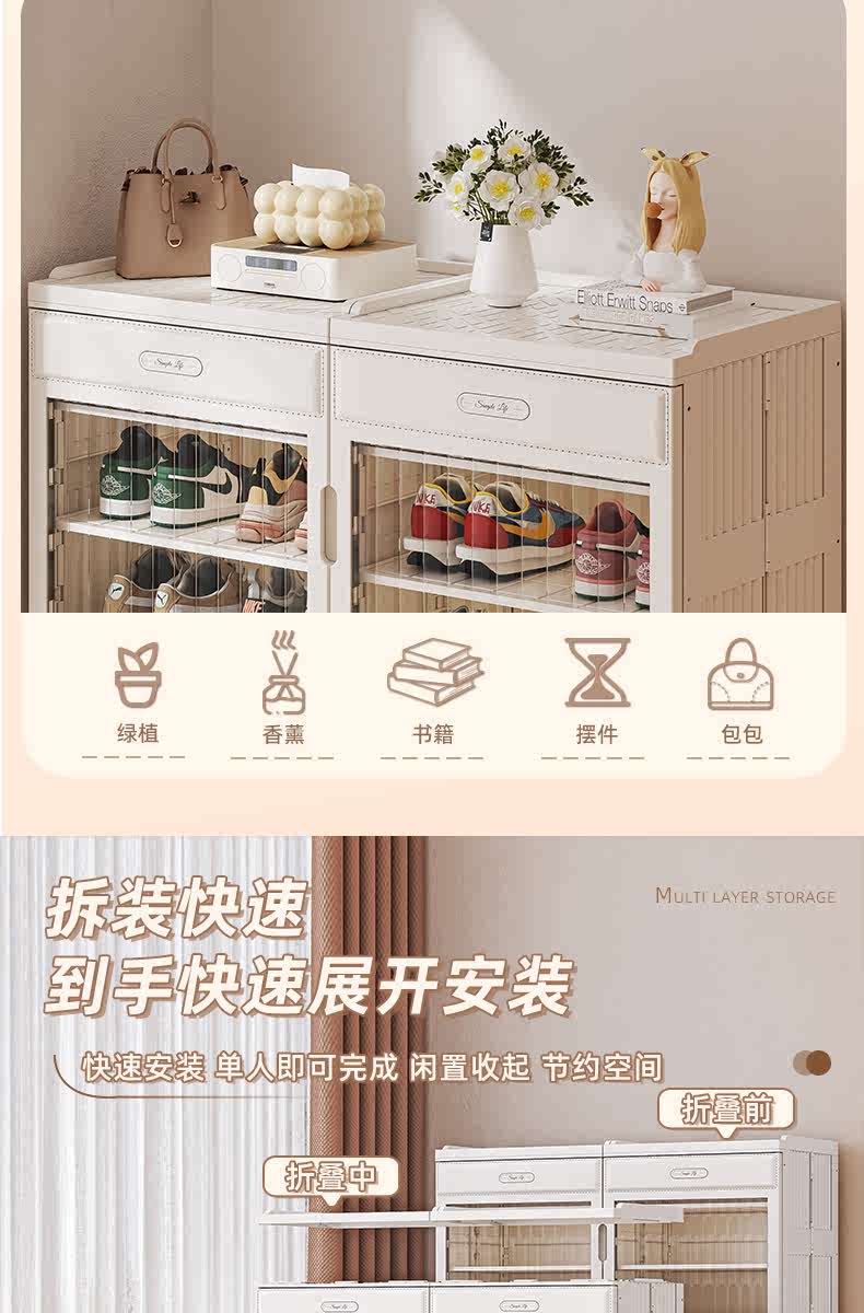 Kezitu installation-free shoe cabinet at home door simple shoe box storage box folding shoe rack multi-layer dust-proof shoe storage artifact 1 column 6 layers 6 compartments (can hold 12 pairs of shoes) - transparent door