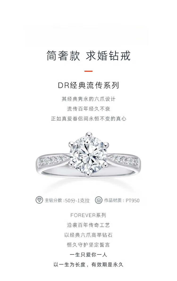 DR Proposal Diamond Ring K Gold/Platinum PT950 Simple Luxury Six-Prong Moissanite Diamond Ring Gift Valentine's Day Birthday Gift 1 Carat D-E Color/Extreme White Gift Box + Certificate PT950 Closed (Remark Number)