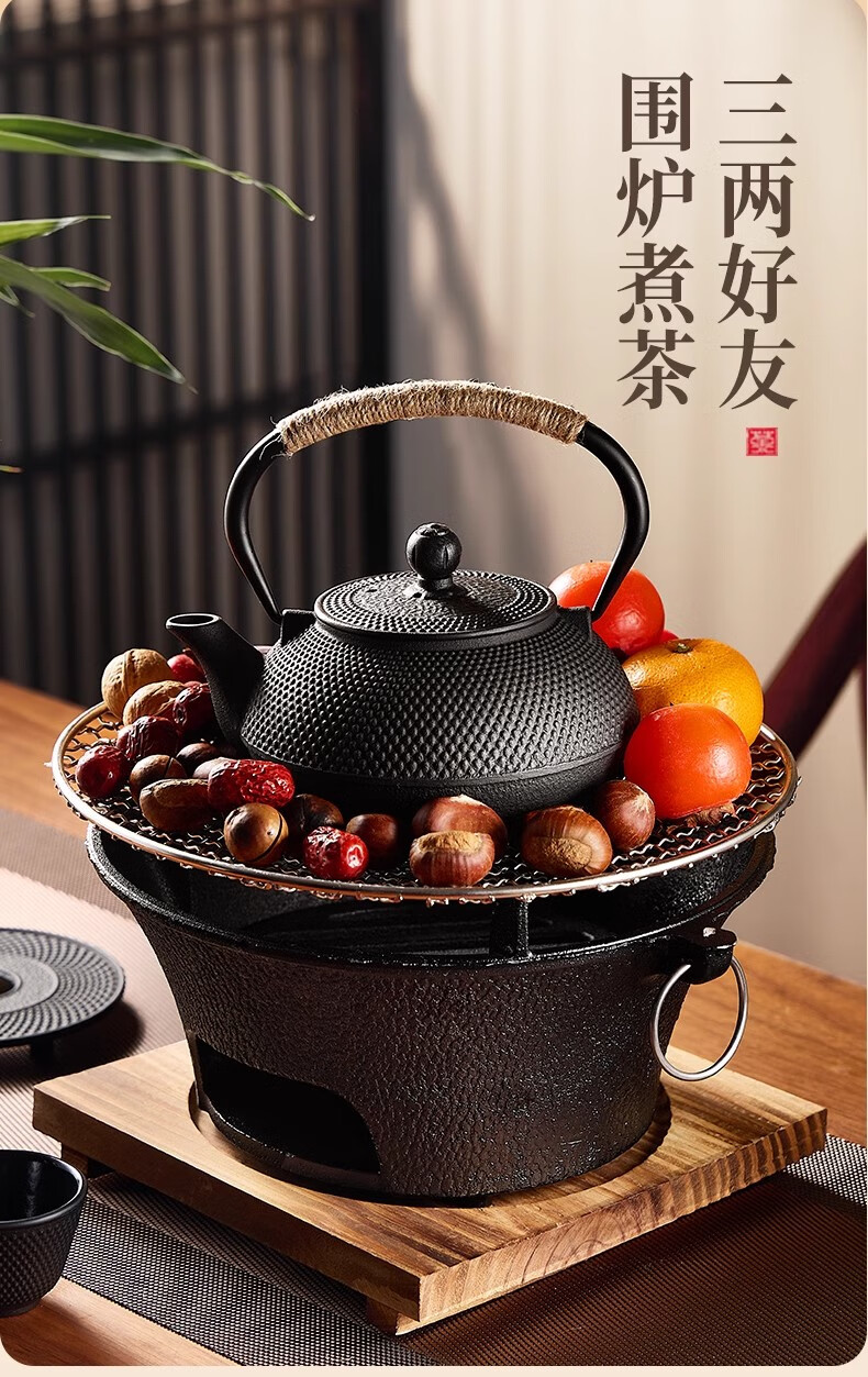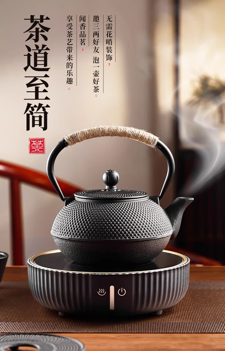 Japanese MUJU iron kettle tea kettle kettle tea carbon stove electric ceramic stove outdoor cast iron stove for tea making cast iron teapot + 800W electric ceramic stove - with tea 900ml with tea fork + tea drain