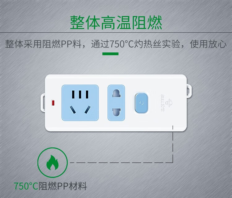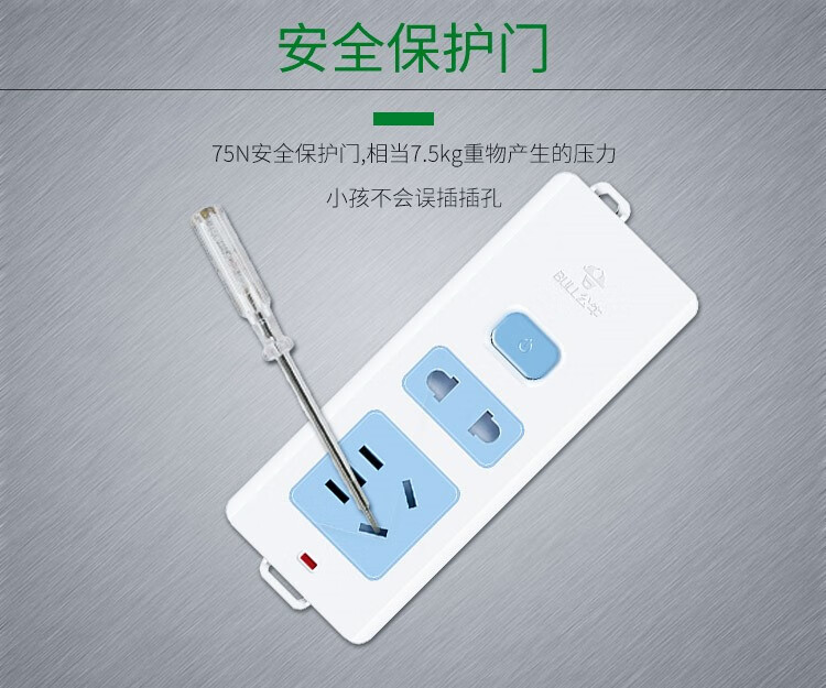 Bull Bull two-term plug plug board two-hole 2-pin plug socket plug-in board with line 1235 meters drag line board full length 1 meter B09 two sockets with switch