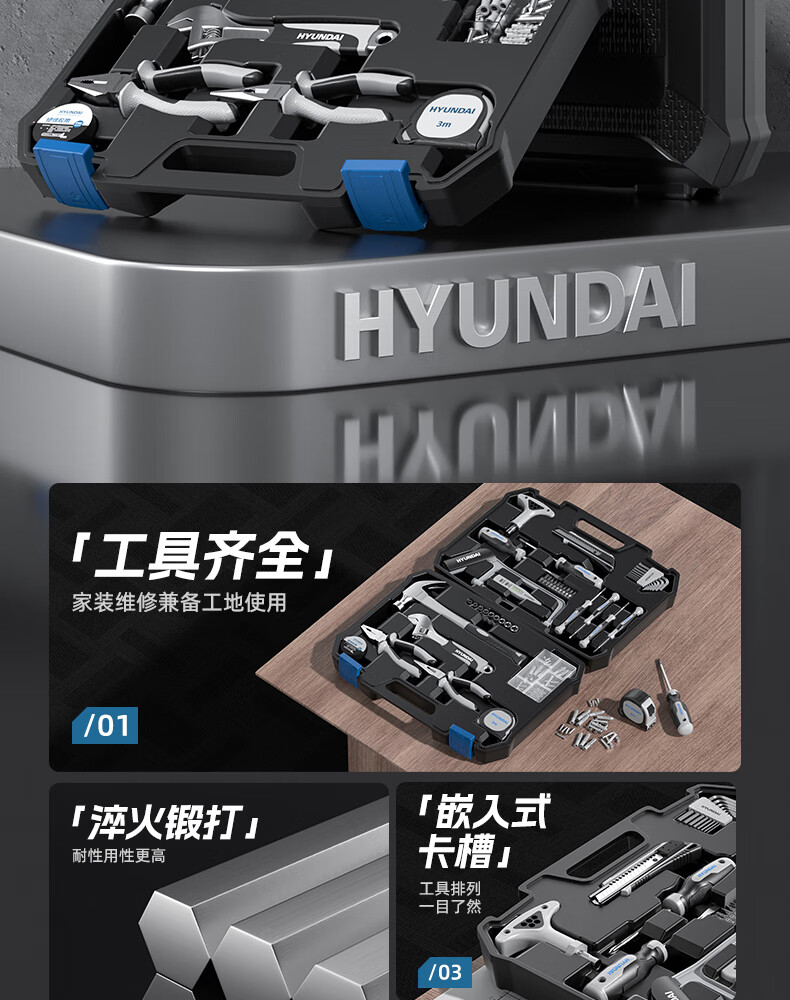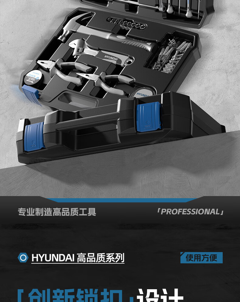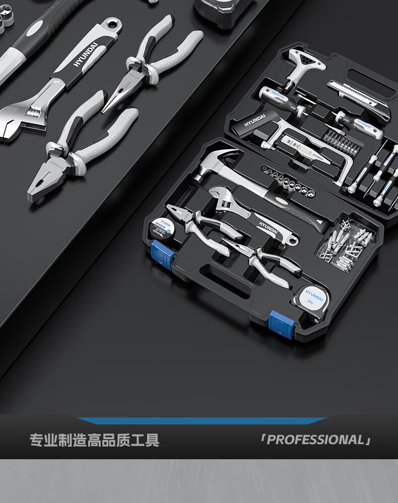 HYUNDAI Tool Set Home Tool Box Multi-Function Hardware Repair Complete Home Electrician Complete Combination Car Mount Korean Hyundai - 41-piece set commonly used at home