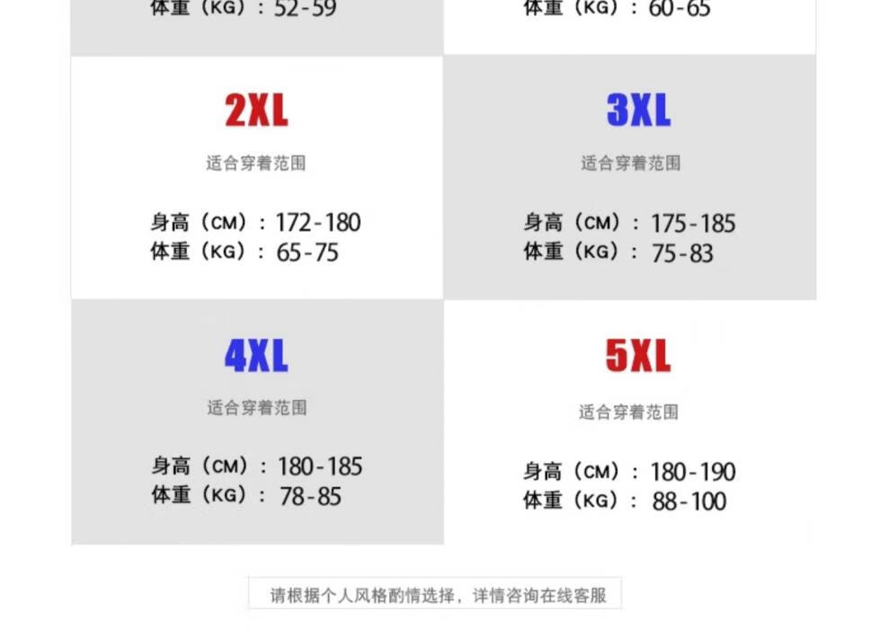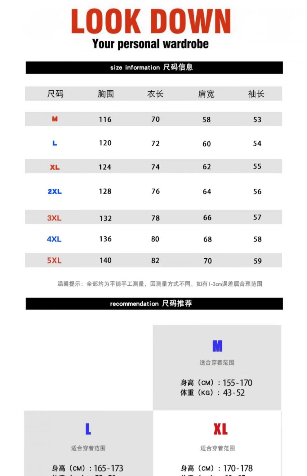 China (cm) 165 / 88-90 170 / 96-98 175 / 108-110 180 / 118-122 185 / 126-130