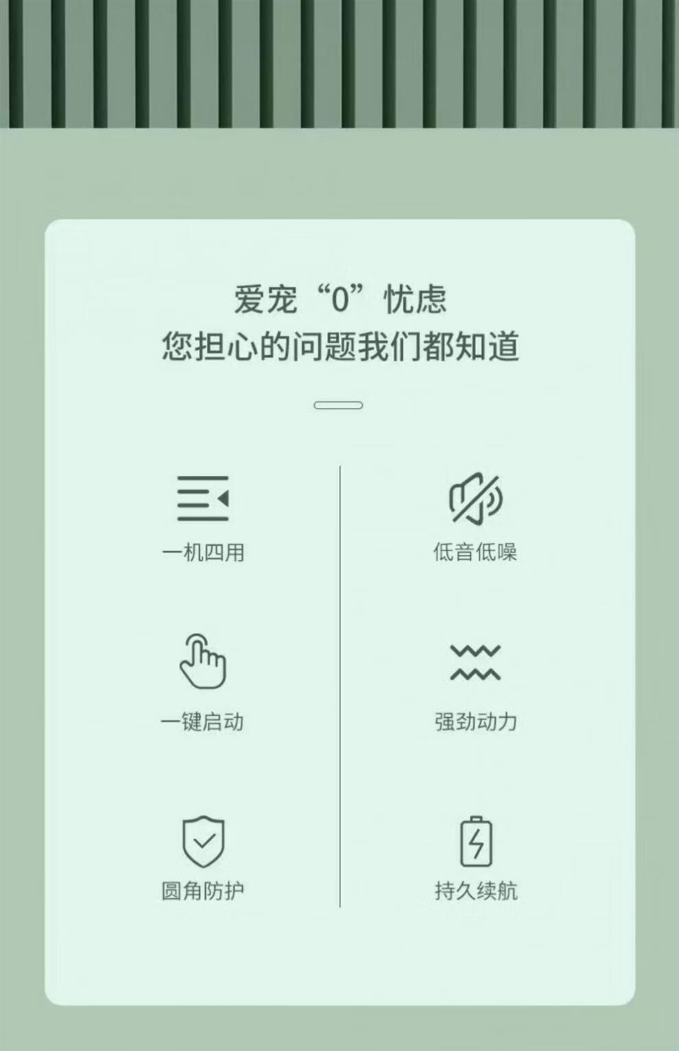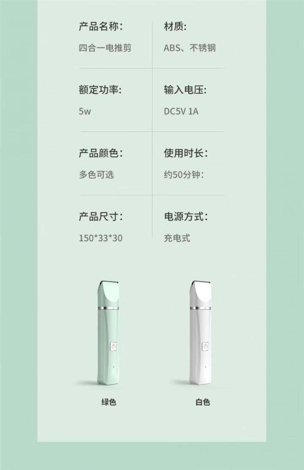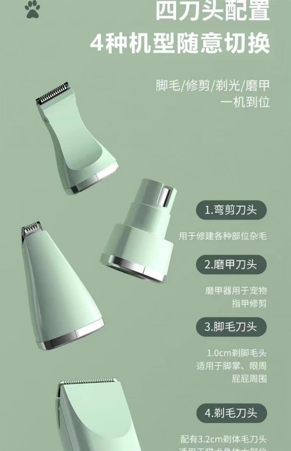 German quality pet shaver, electric clipper for cats and dogs, special electric clipper for shaving feet and polishing nails, dog hair and cat hair trimmer, mint green, all-round trimming, four-in-one