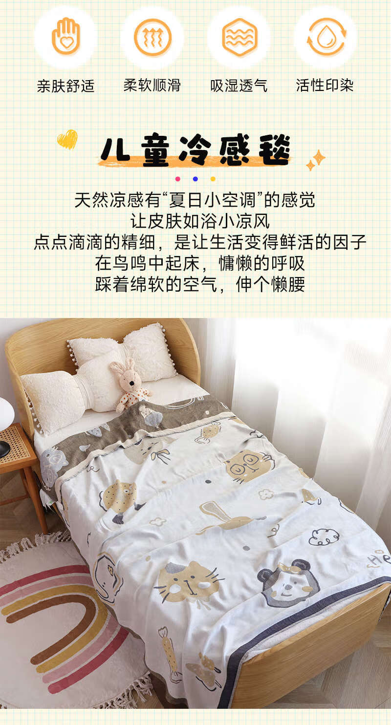 Wen Yijia Newborn Children's Gauze Bamboo Fiber Cooling Blanket Thin Baby Cover Blanket Ice Silk Cooling Baby Towel Quilt Kindergarten (Class A Cold Blanket) 120*150cm (Children's Bamboo Fiber)