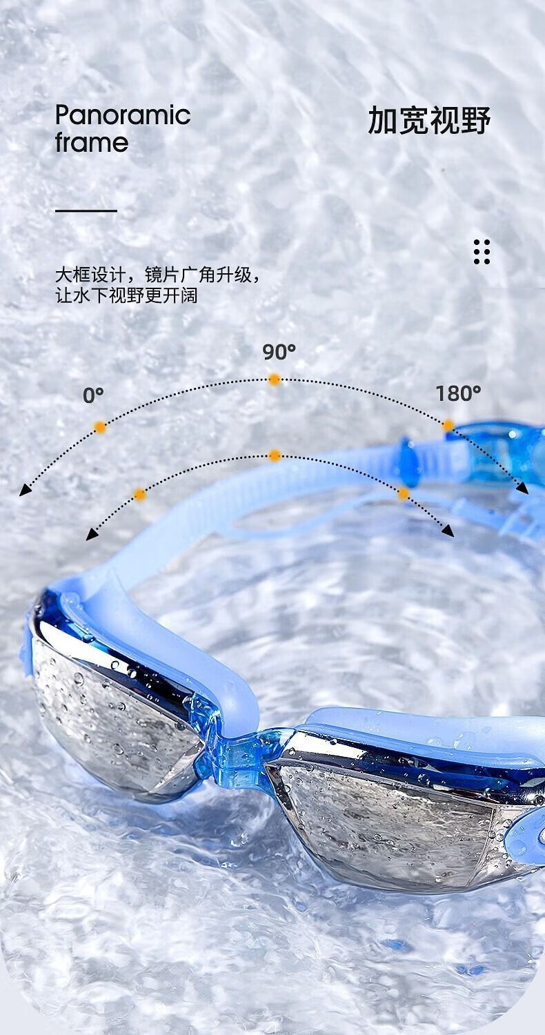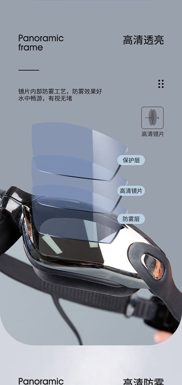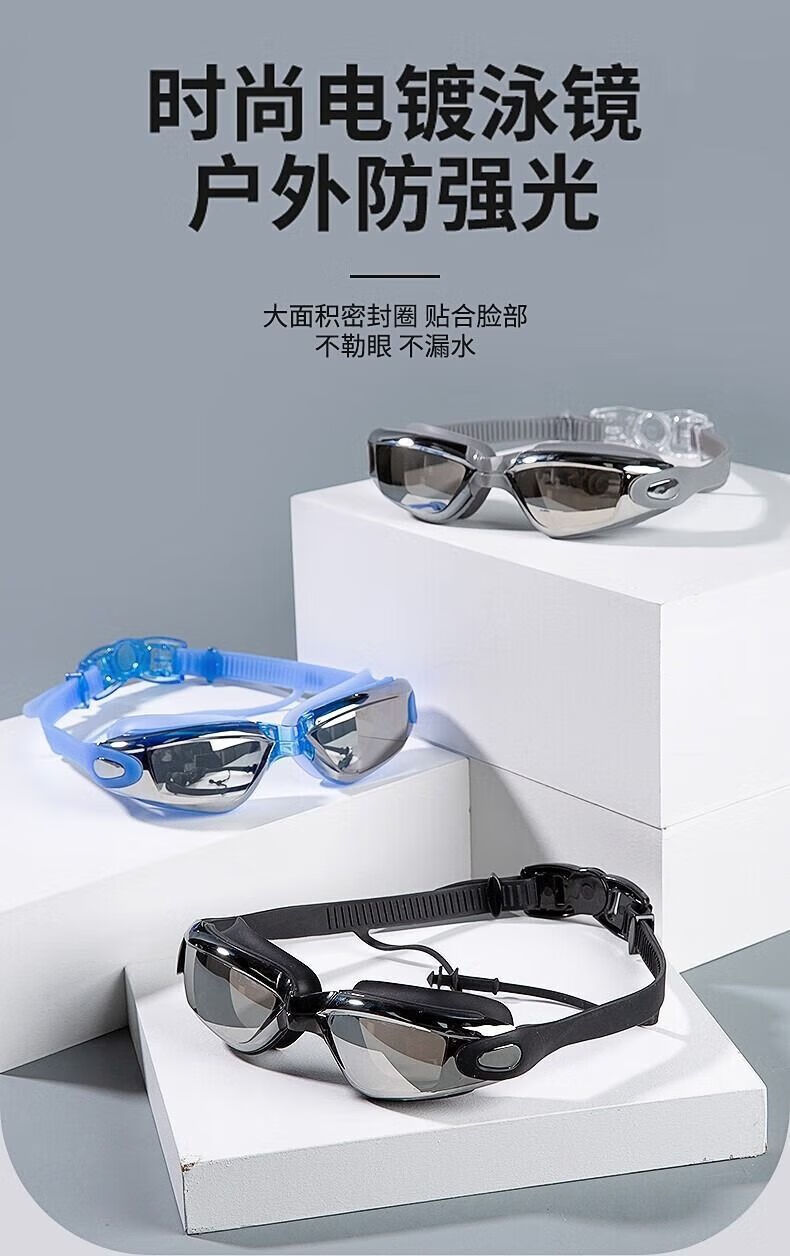 Wen Yijia swimming goggles for men and women, plano myopia glasses, large-frame waterproof swimming goggle cap, swimming goggles, myopia, high-definition, anti-fog, black electroplating, non-myopia - boxed, four-piece set - nose clip + earplugs + swimming cap