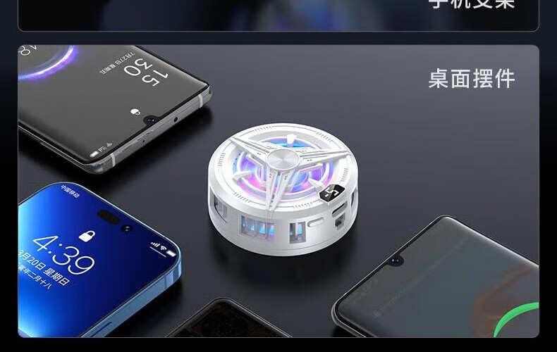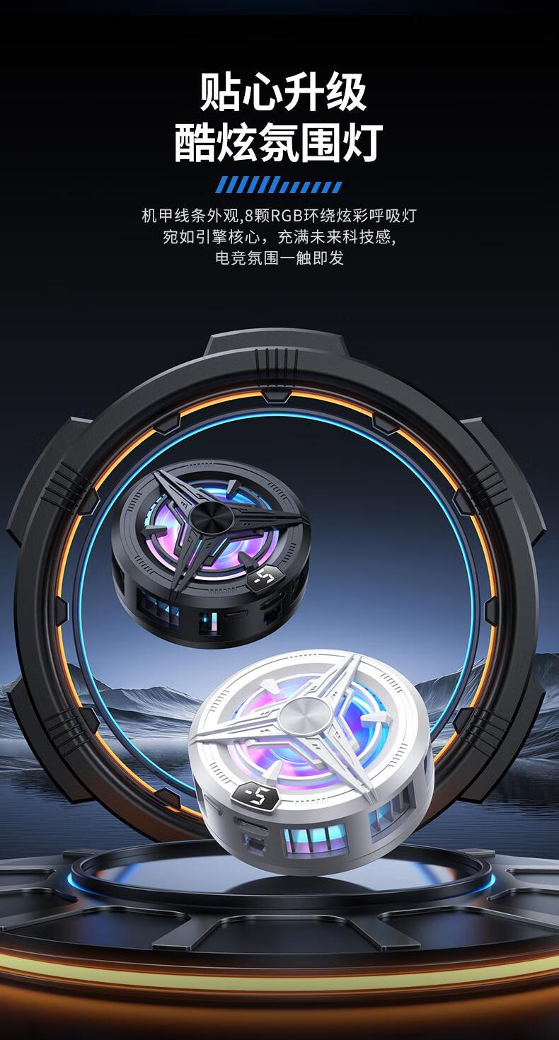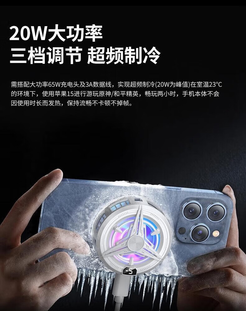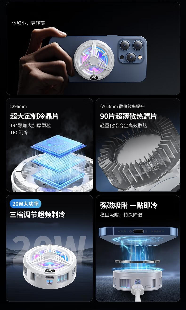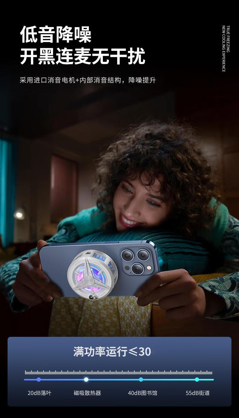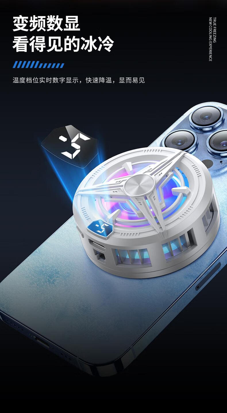 Yandio Mobile Phone Radiator Magnetic Silent Radiator Magnetic Back Clip Mobile Game King Chicken Game Live Broadcast Cooling Smart Semiconductor Can Be Freeze Suitable for Apple 16 One Plus Icing Starlight White * Colorful Lights * Three-level Digital Display * Magnetic Back Clip * Strong Magnetic Refrigeration