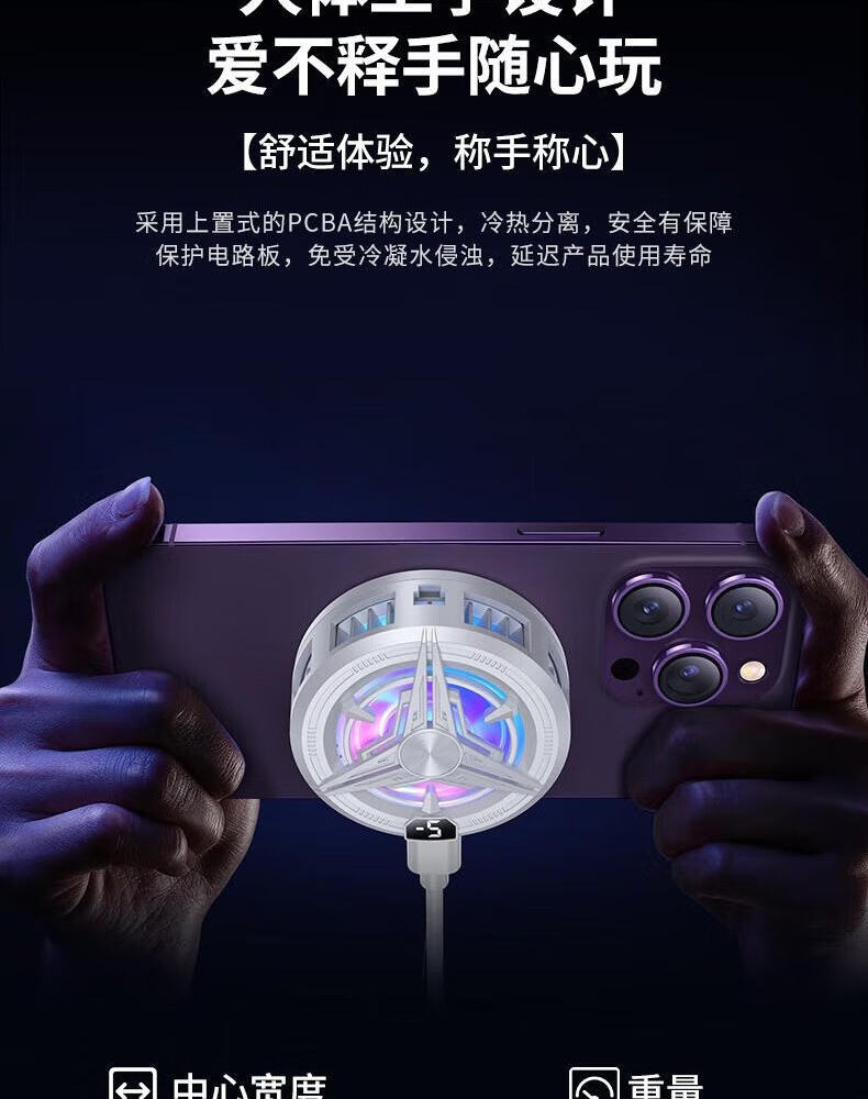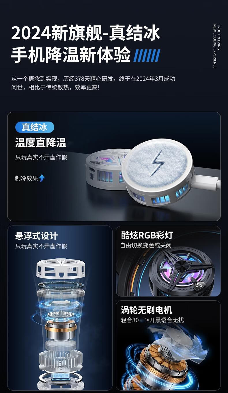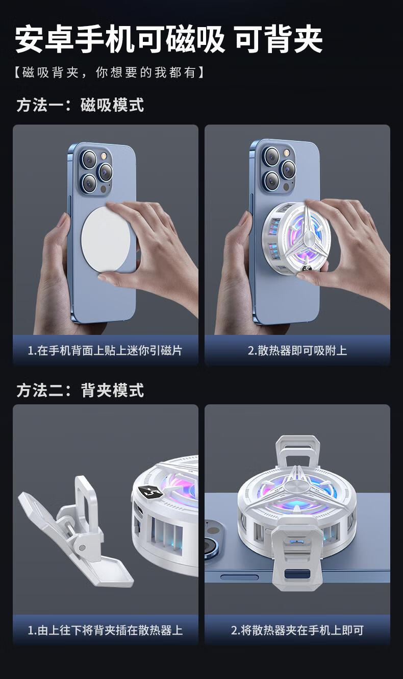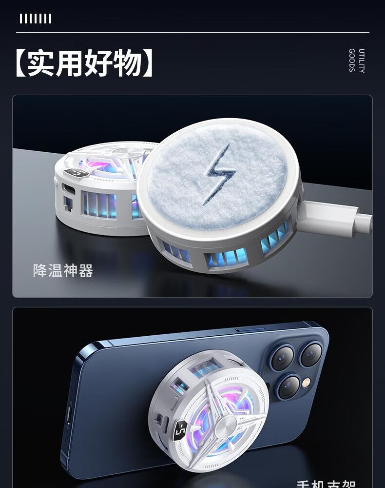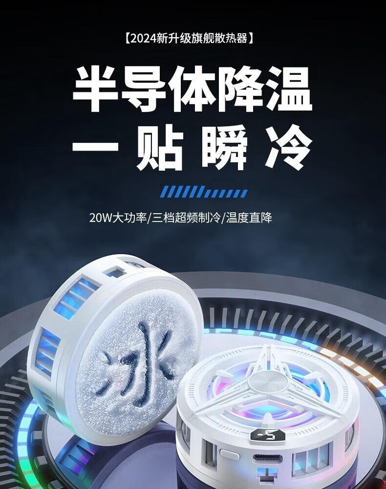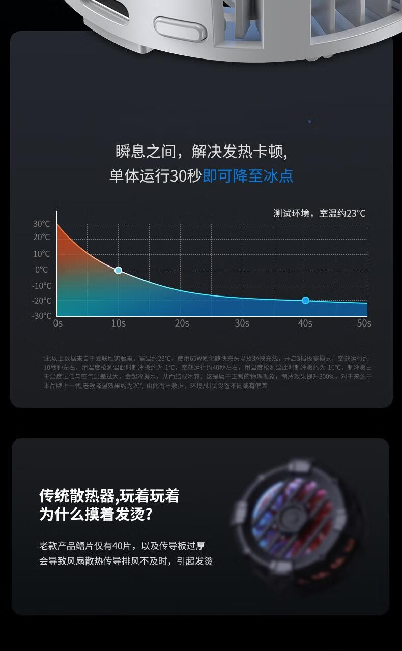 Yandio Mobile Phone Radiator Magnetic Silent Radiator Magnetic Back Clip Mobile Game King Chicken Game Live Broadcast Cooling Smart Semiconductor Can Be Freeze Suitable for Apple 16 One Plus Icing Starlight White * Colorful Lights * Three-level Digital Display * Magnetic Back Clip * Strong Magnetic Refrigeration