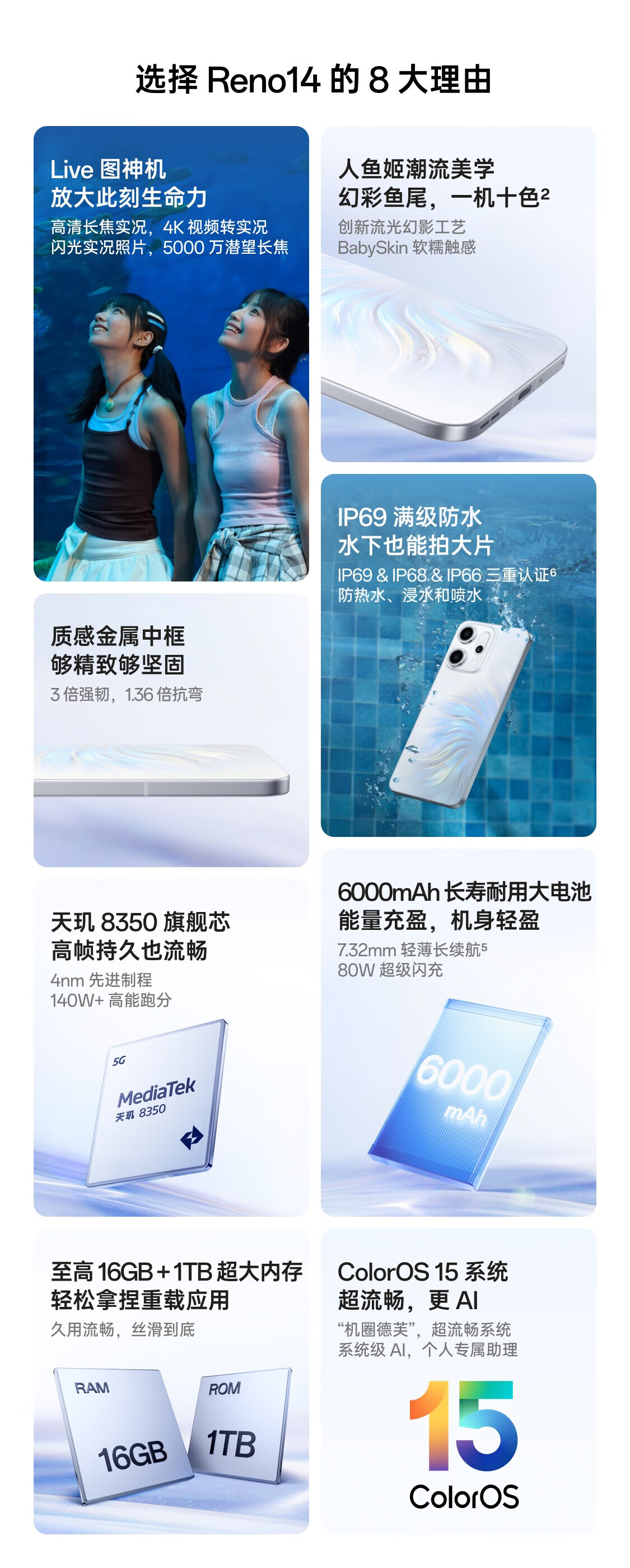 OPPO interest-free installments Reno14 HD telephoto live broadcast New small direct screen Live picture 5G full network Reno14 Mermaid 16GB+256GB standalone + electronic warranty card registered + nationwide joint warranty