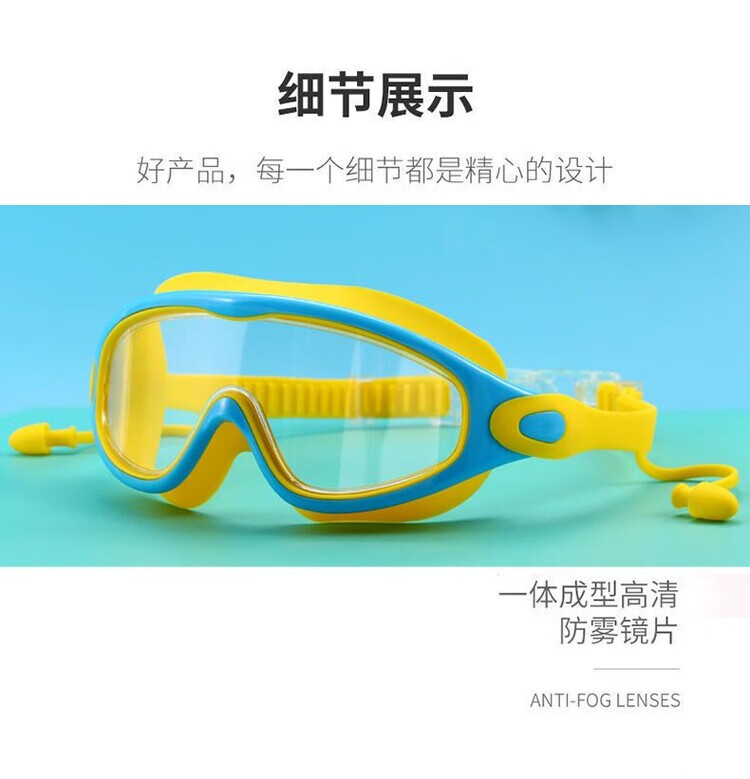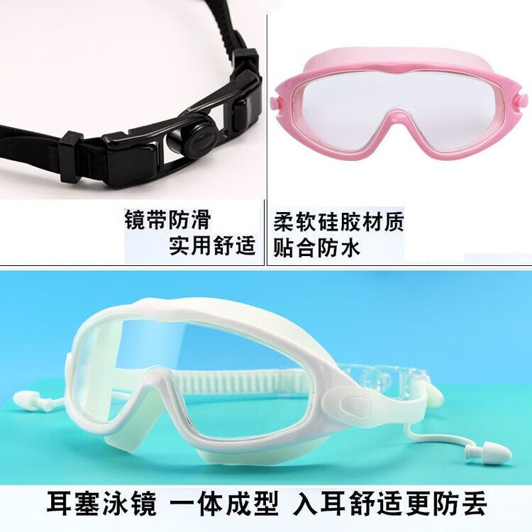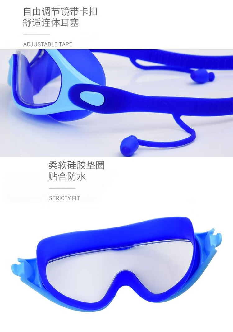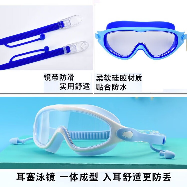 Raft core children's diving goggles swimming goggles HD waterproof anti-fog swimming goggles large frame boys and girls swimming cap set diving suit large frame blue swimming goggles nose clip earplugs U swimming cap arm ring swimming bag