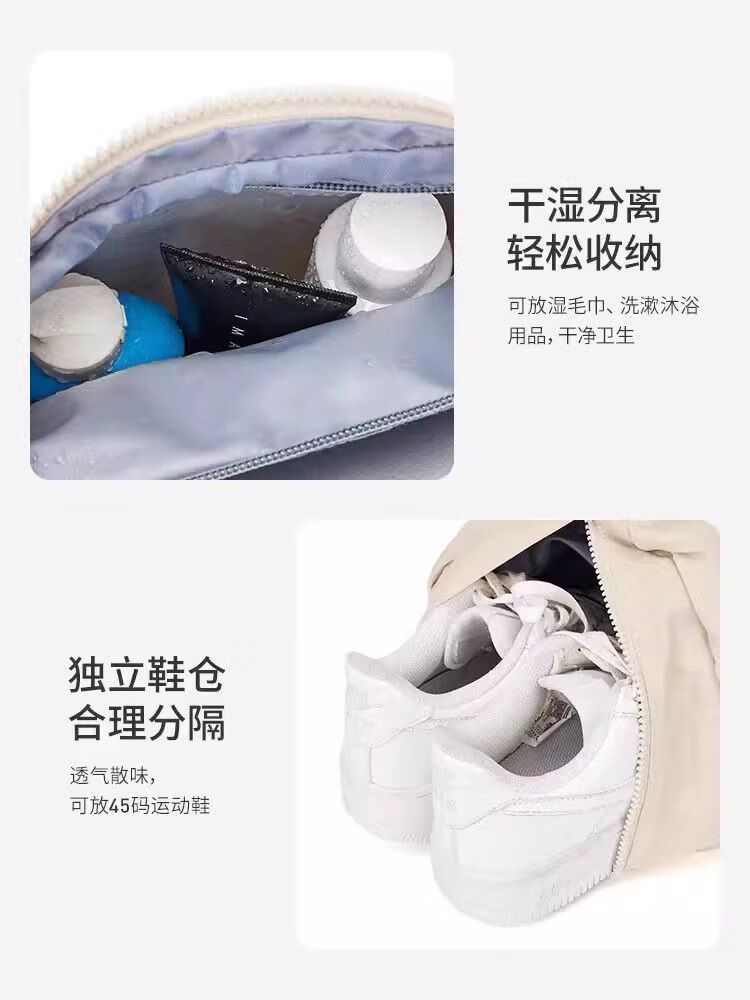 KUQIDAISHU fitness bag for women, wet and dry shoulder crossbody bag, travel storage bag, dancer class bag, yoga bag, Pilates bag, purple bag with wet and dry separation, independent shoe position