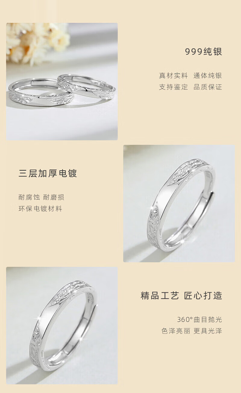 DR999 pure silver couple ring, eternal vows for men and women, niche light luxury model 520 Chinese Valentine's Day ring for girlfriend, female ring