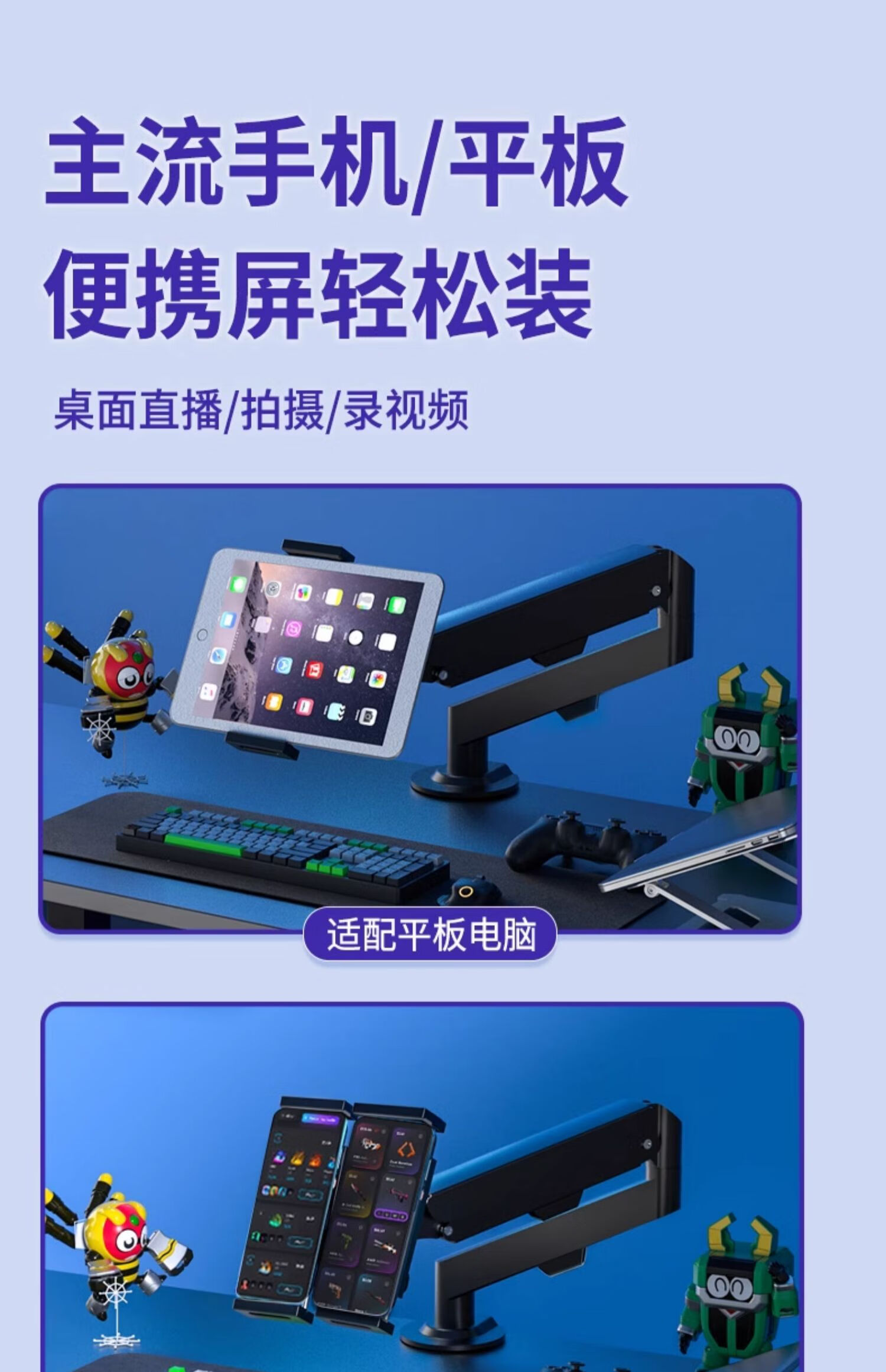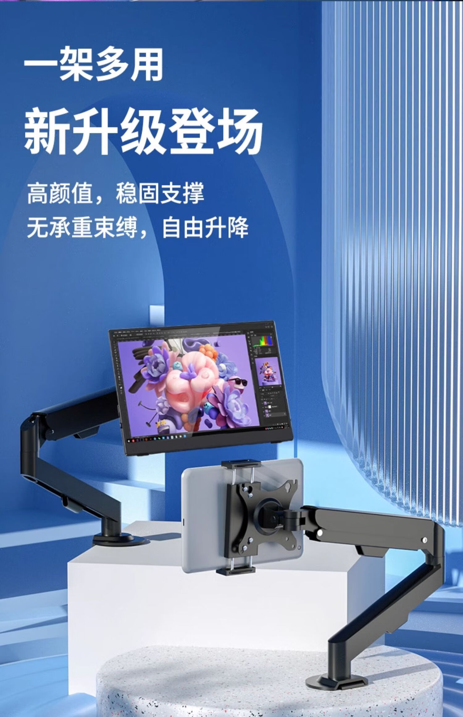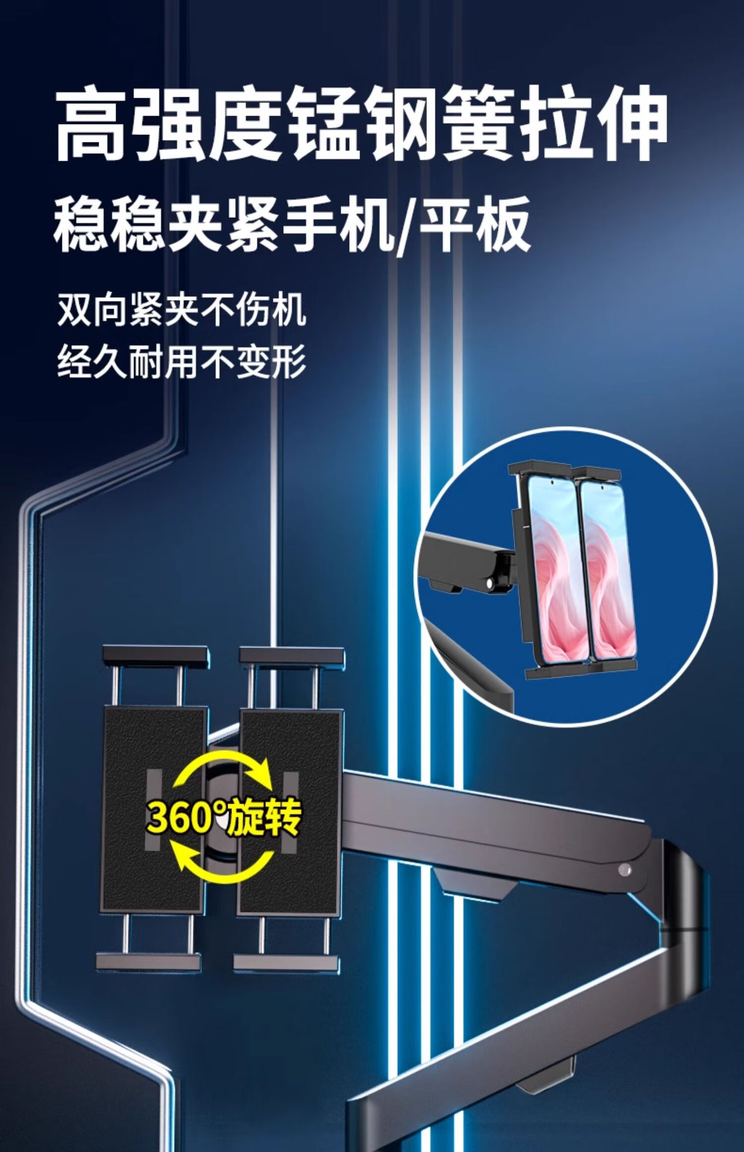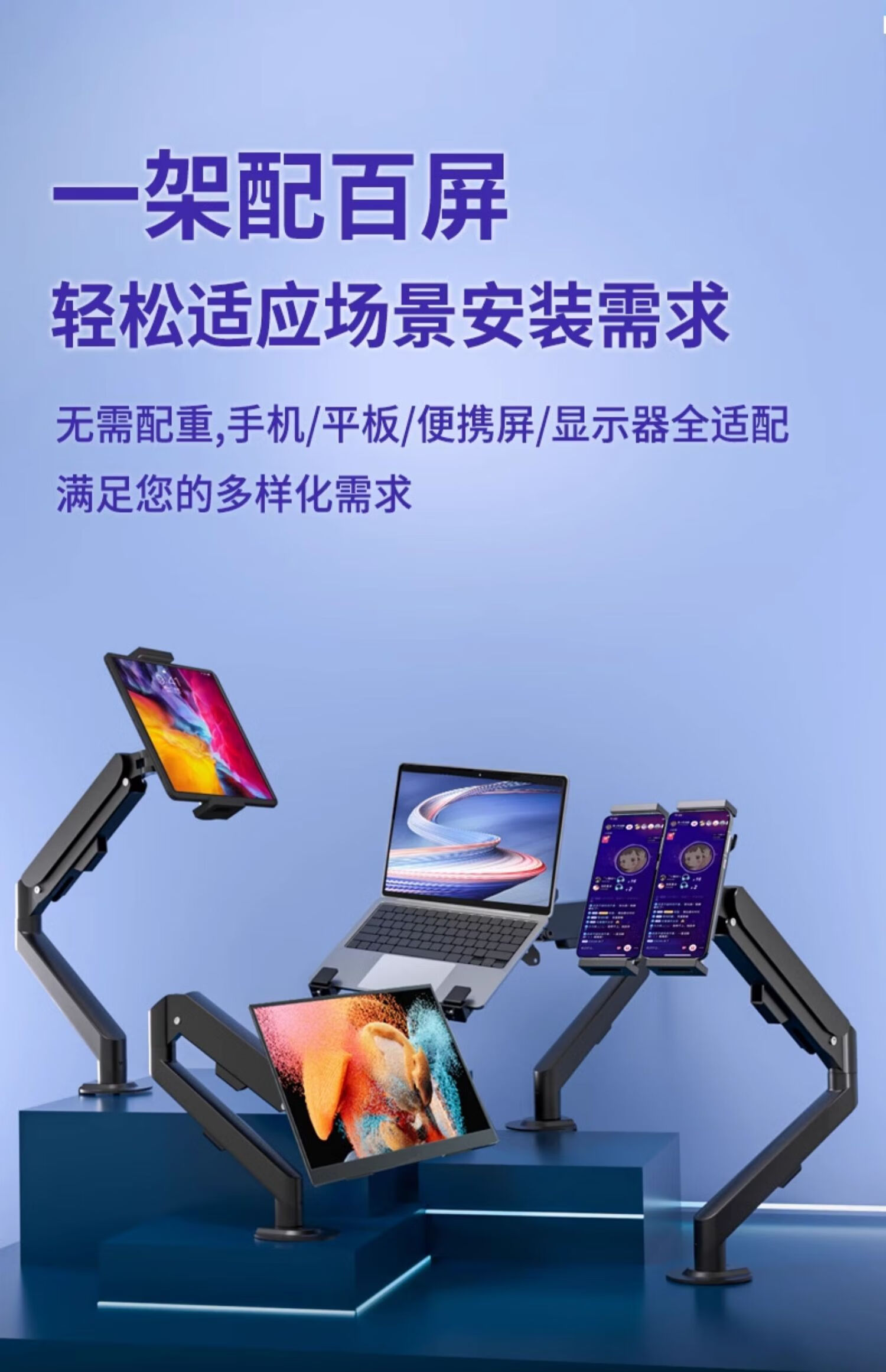Port Emperor portable screen display stand without punching, lifting and rotating, tablet phone, ipad mechanical arm, external expansion, vertical screen, black, portable screen 75*75 hole pitch special, pneumatic hover/free extension 1