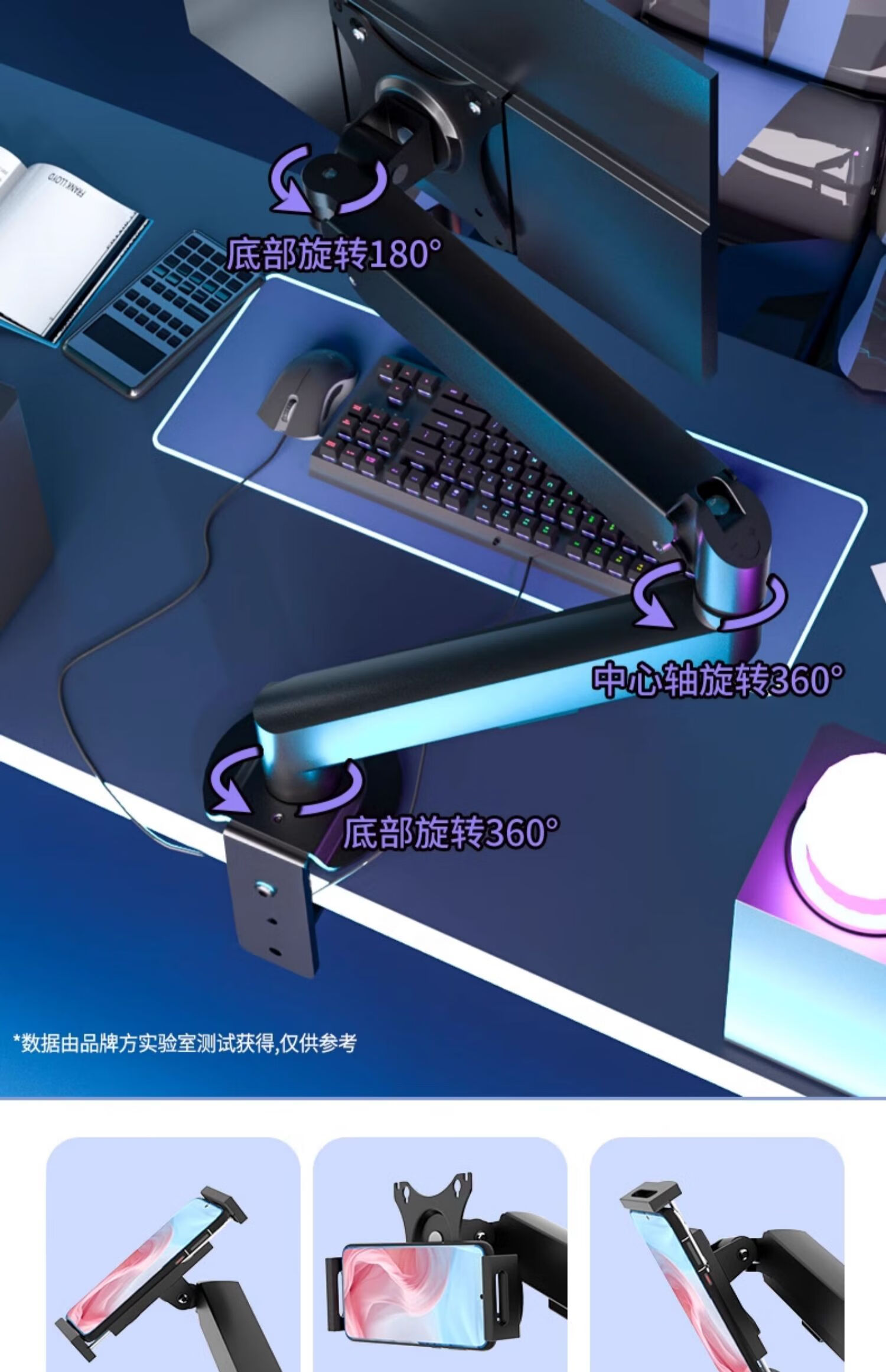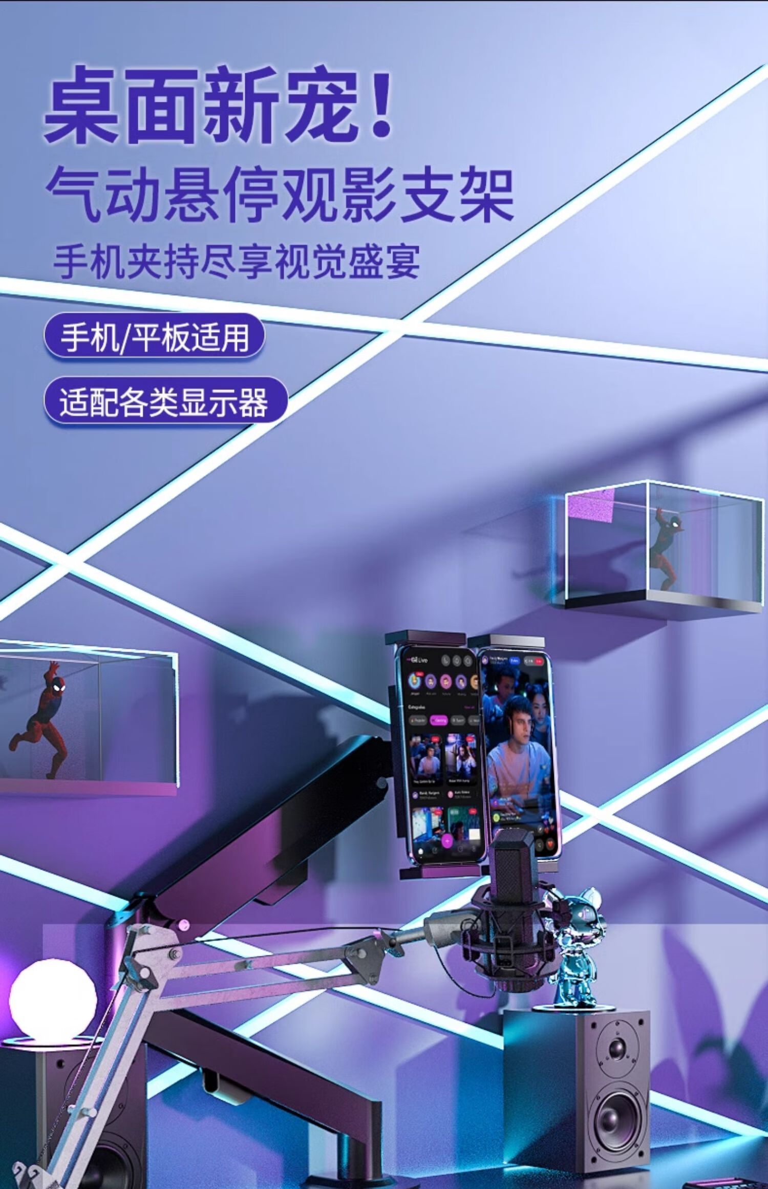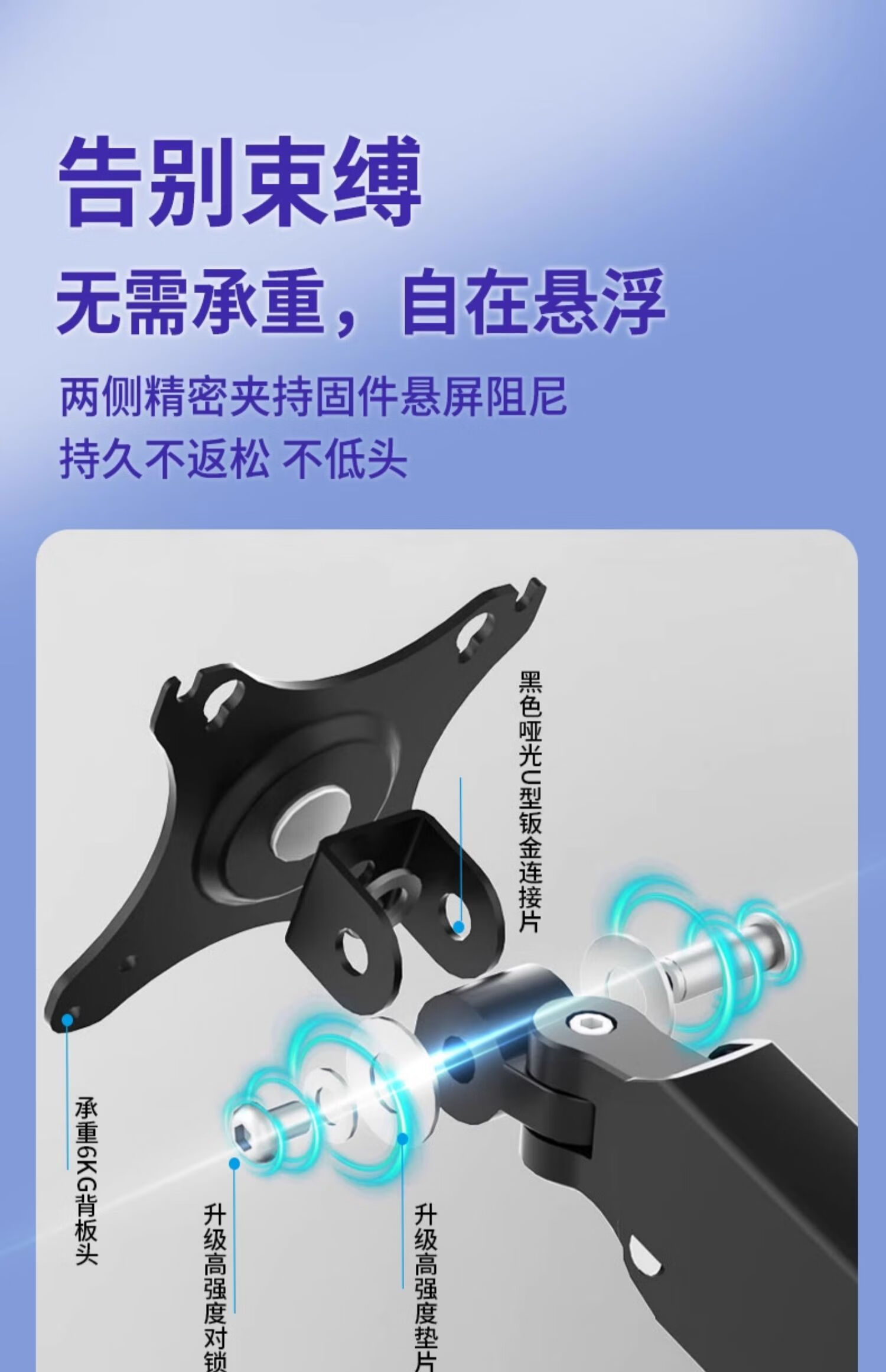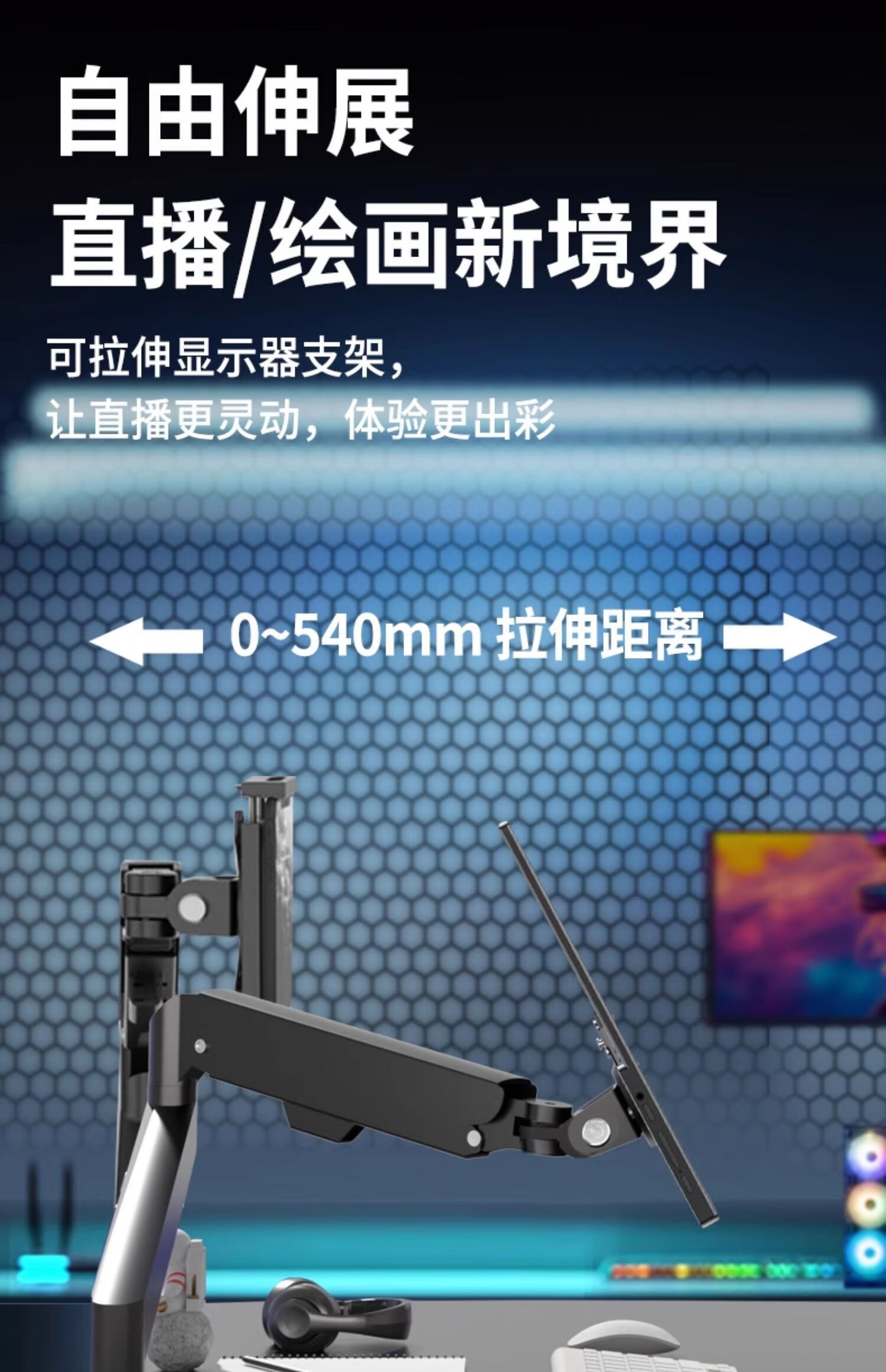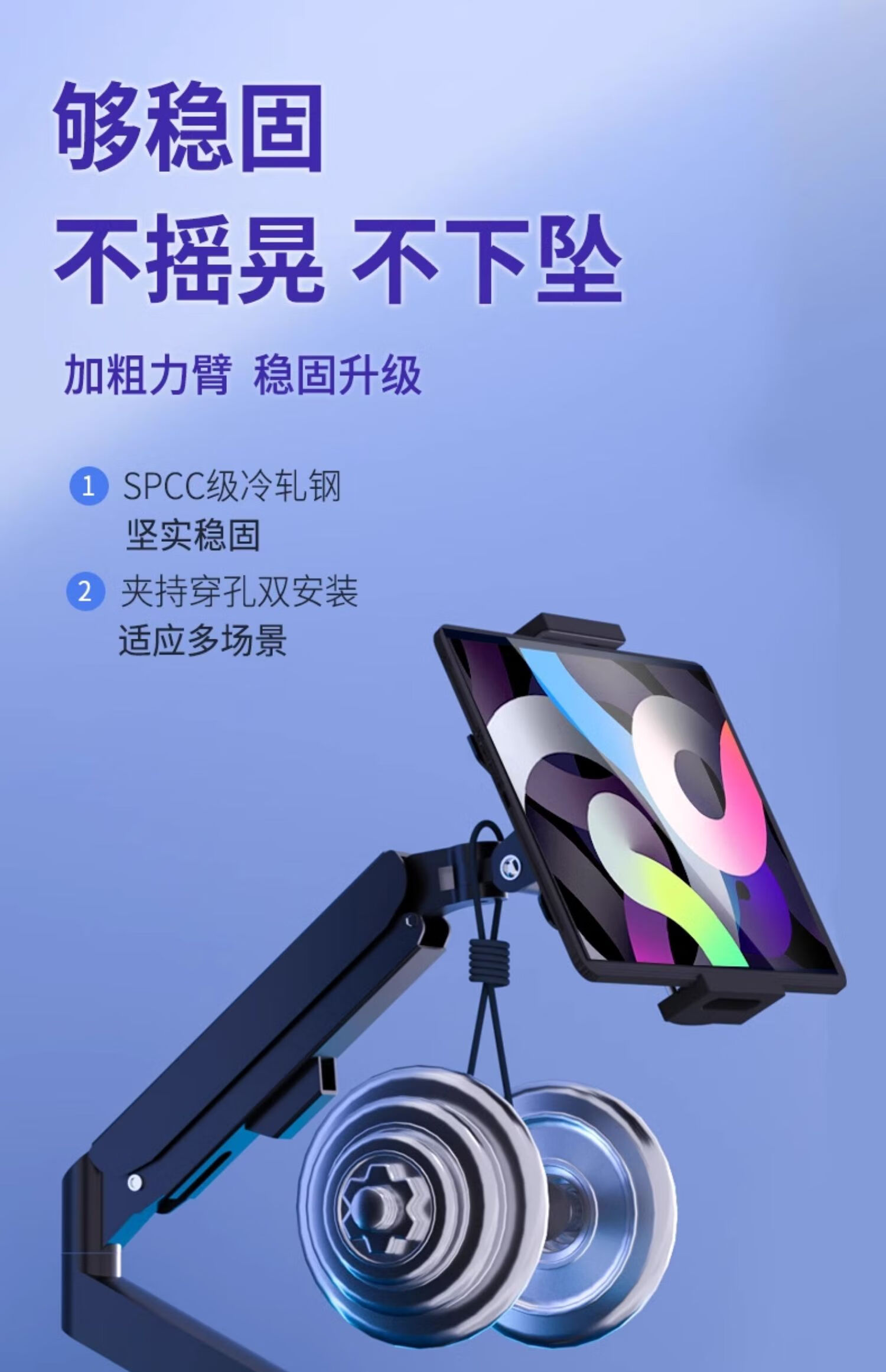 Port Emperor portable screen display stand without punching, lifting and rotating, tablet phone, ipad mechanical arm, external expansion, vertical screen, black, portable screen 75*75 hole pitch special, pneumatic hover/free extension 1