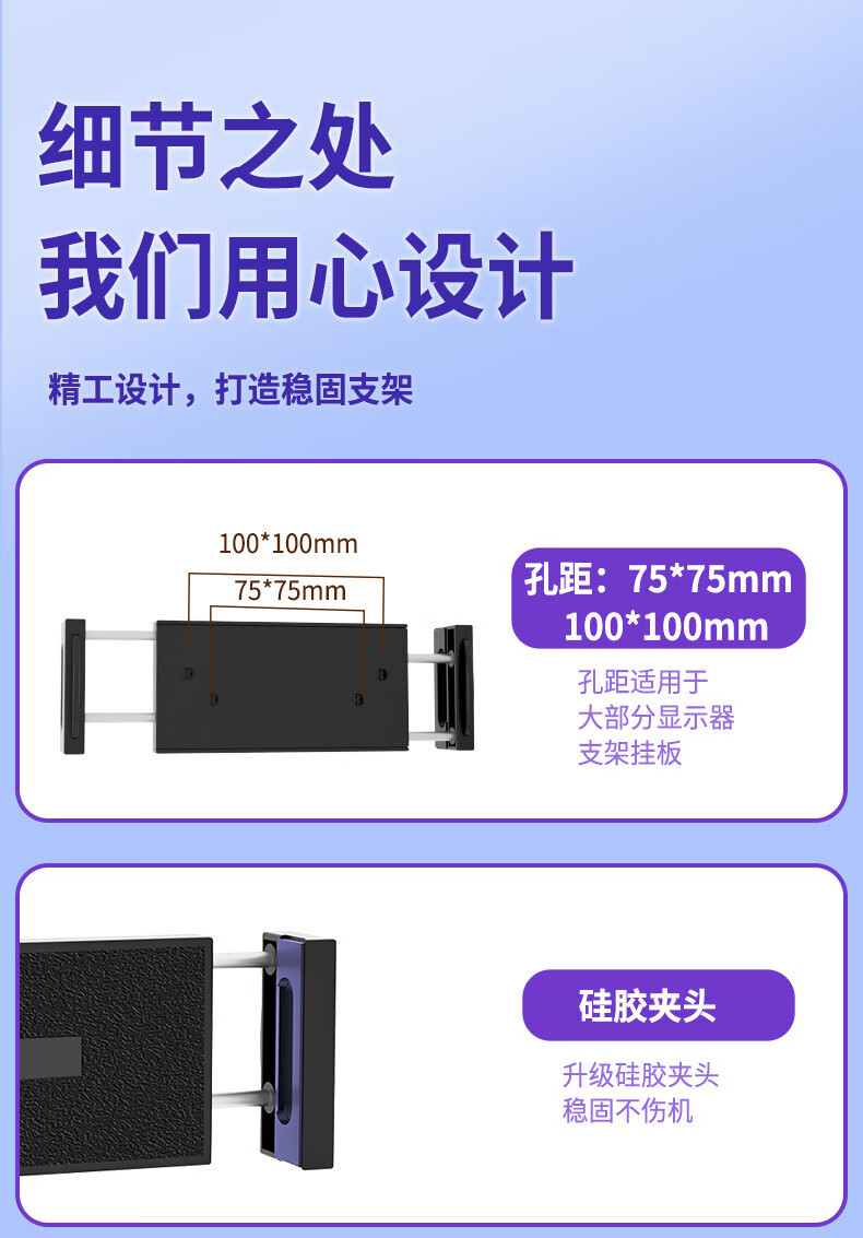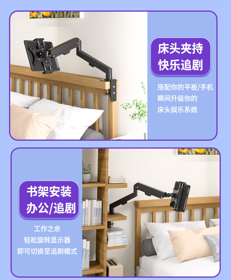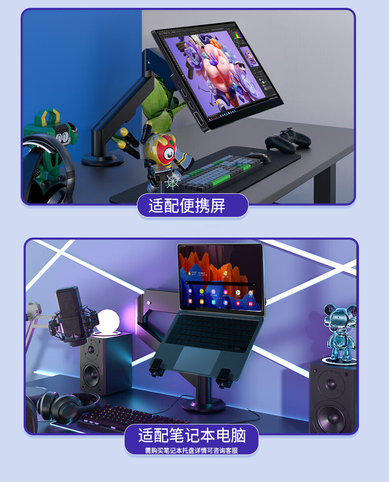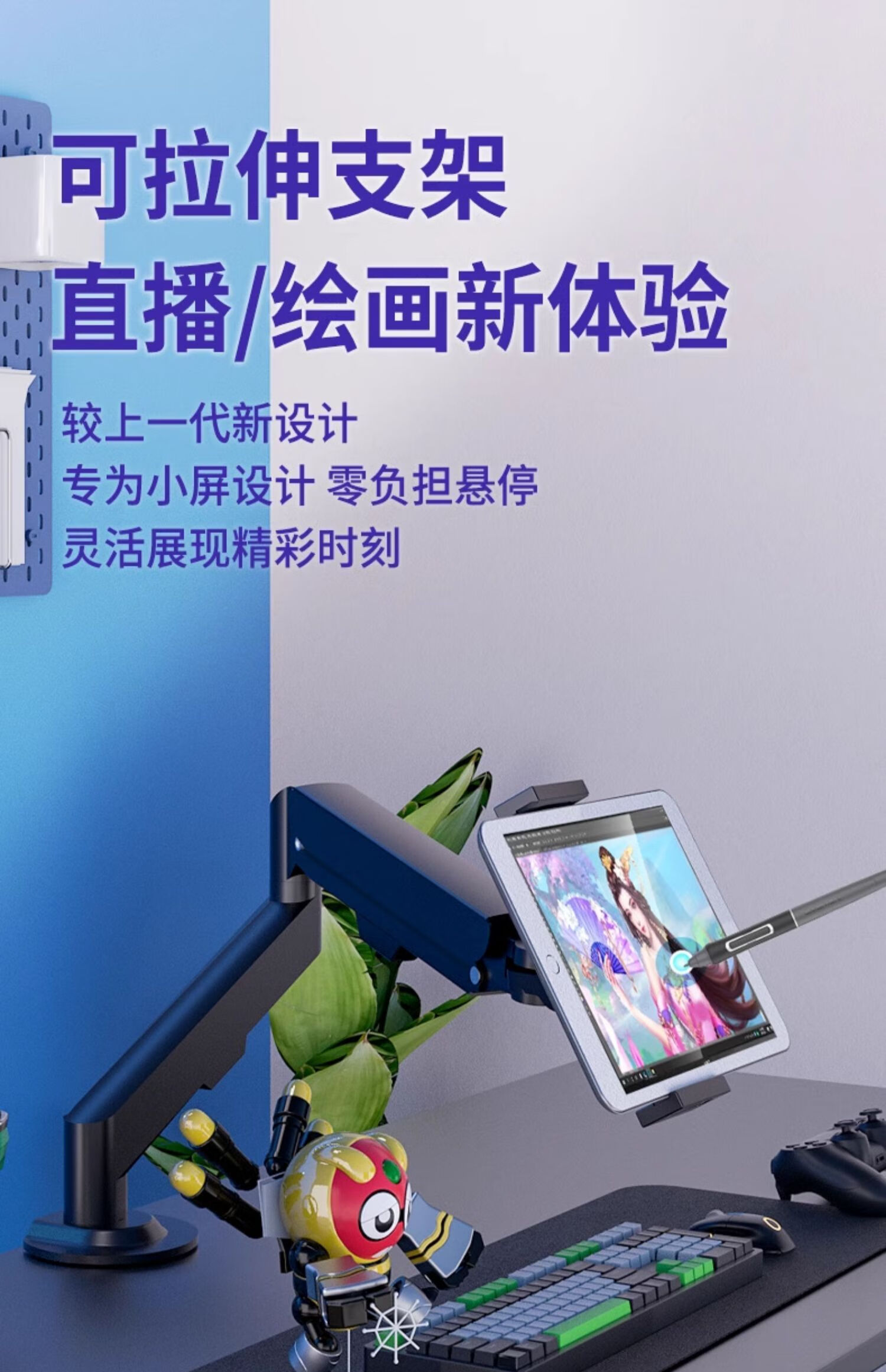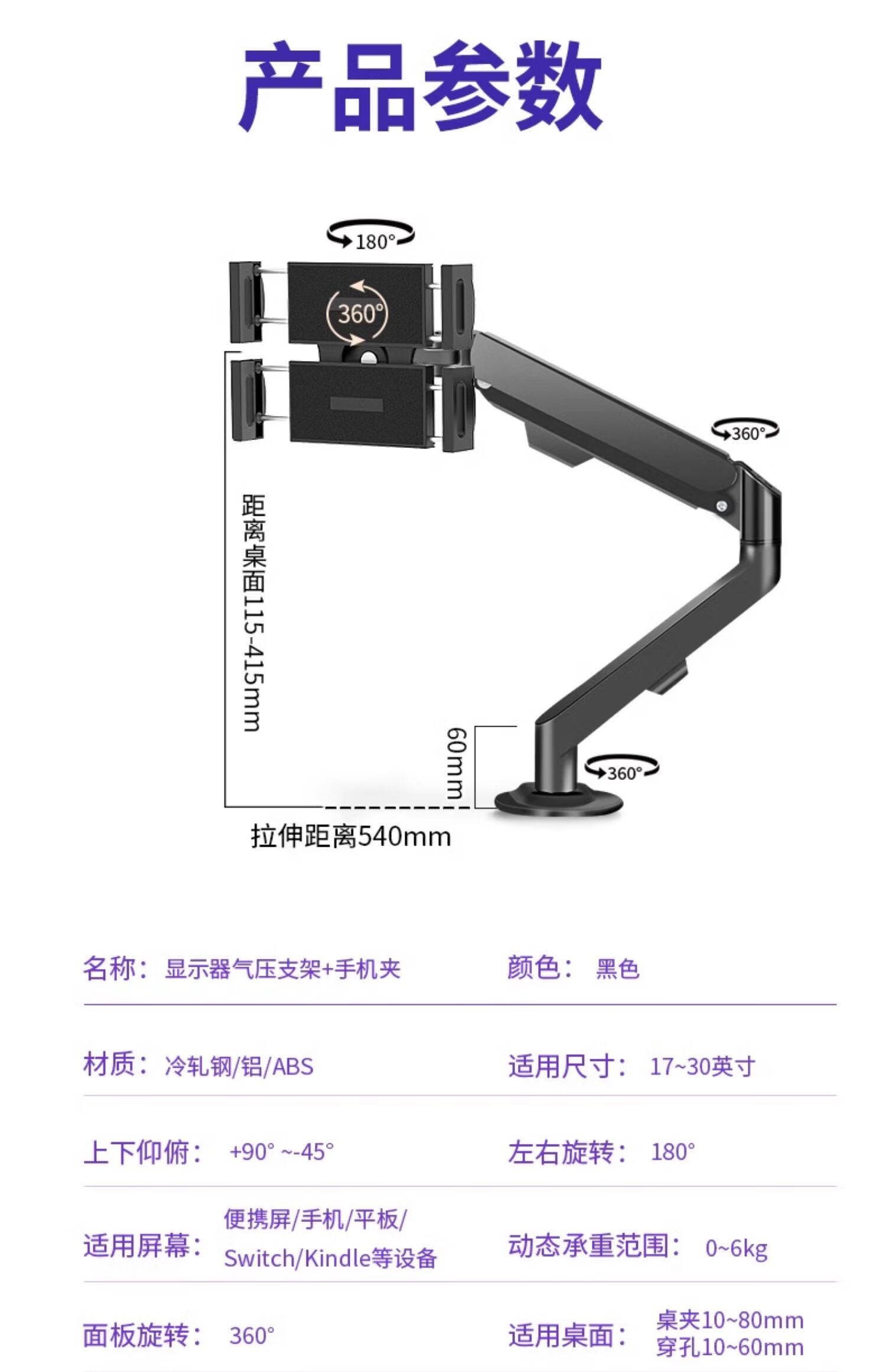 Port Emperor portable screen display stand without punching, lifting and rotating, tablet phone, ipad mechanical arm, external expansion, vertical screen, black, portable screen 75*75 hole pitch special, pneumatic hover/free extension 1